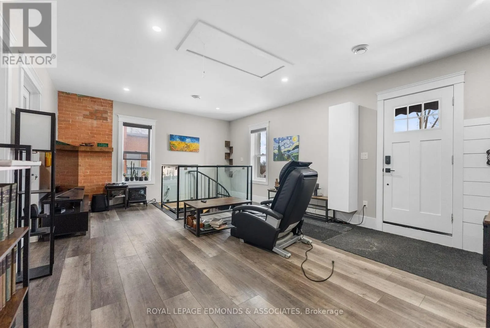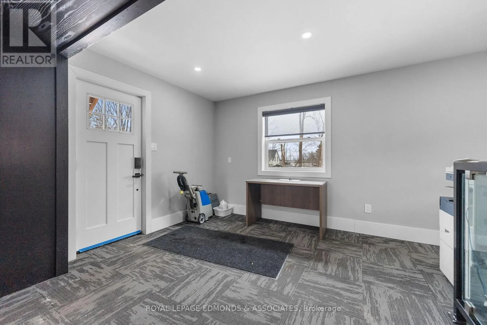 Cross Streets: Maple Ave. ** Directions: Pembroke St East between William St & Maple Ave. Completely renovated mixed-use building in a high-traffic, highly sought-after location. This versatile property offers nearly 1,200 sq. ft. of commercial space on the main level and a 3-bedroom, 1-bathroom residential apartment on the second floor, making it ideal for investors or business owners looking to occupy or generate additional income. The commercial space features a fully accessible main entrance fronting onto Pembroke Street, as well as a convenient rear entrance from the parking lot, which provides ample parking for both clients and staff. Inside, you'll find four spacious offices filled with natural light, creating a bright and productive work environment. An unfinished basement offers excellent additional storage space. Upstairs, the residential unit includes three large bedrooms with abundant natural light, an open-concept kitchen and living area, and a private entrance from the parking lot leading to a spacious deck. A stunning spiral staircase connects the lower and upper levels and is currently closed off but could be reopened, allowing the upper level to be converted into additional office or commercial space if desired. A rare opportunity to own a turnkey mixed-use property with flexible potential in a prime location. Upgrades include: furnace and A/C 2024, all new windows 2022, metal roof, spray foam in attic 2023. 48 Hours Irrevocable on all written offers. (id:27476)