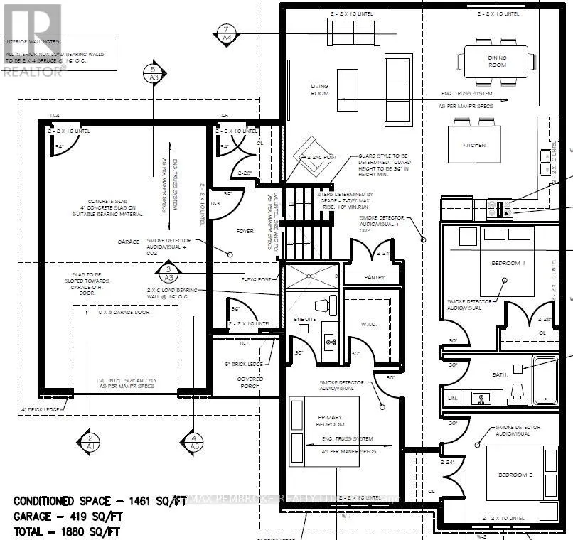 Cross Streets: Boundary rd west/eddy. ** Directions: Boudary St West to Eddy Cr. Welcome to " The Dawson" at 56 Eddy Crescent in Pembroke's desirable west end, a beautifully built brand new bungalow located in a brand new subdivision, offering the perfect blend of modern living and outdoor lifestyle. This thoughtfully designed home offers approximately 1,461 sq. ft. of bright open-concept main floor living space featuring a modern kitchen with a large center island and a spacious dining area with patio door access. The inviting living room is filled with natural light, creating a warm and welcoming atmosphere. The main level includes A Primary Bedroom c/w a large walk in closet and ensuite, two more generous sized bedrooms and a full bathroom, along with the convenience of an attached oversized garage. The full basement has already been framed,on the exterior walls rough wired ,rough plumbing for a future bathroom and is laid out for a large rec room, laundry room , additional bathroom additional bedroom, office ( could be another bedroom), and storage area which can be completed prior to closing at the Buyer's option for an additional cost and layouts can be changed by the Buyer., offering excellent potential to expand living space and add value. Built with quality construction including an engineered truss roof system, 8-foot poured concrete foundation, HRV system, radon rough-in, R-60 attic insulation, , this home offers efficiency and peace of mind. Paved Driveway, sod in front yard, seed in backyard Located close to schools, parks, shopping, and amenities, this property is ideal for families, downsizers, or buyers seeking a new home with future development potential in Pembroke's newest subdivision. Additional costs for extras is available.** This Home is not yet built and can be placed on any available lot rather than the listed one**. Purchase price includes HST with rebates signed back to the Builder. Photo is a rendering and is to be built. Full Tarion Warranty Photo is a rendering and is to be built. (id:27476)