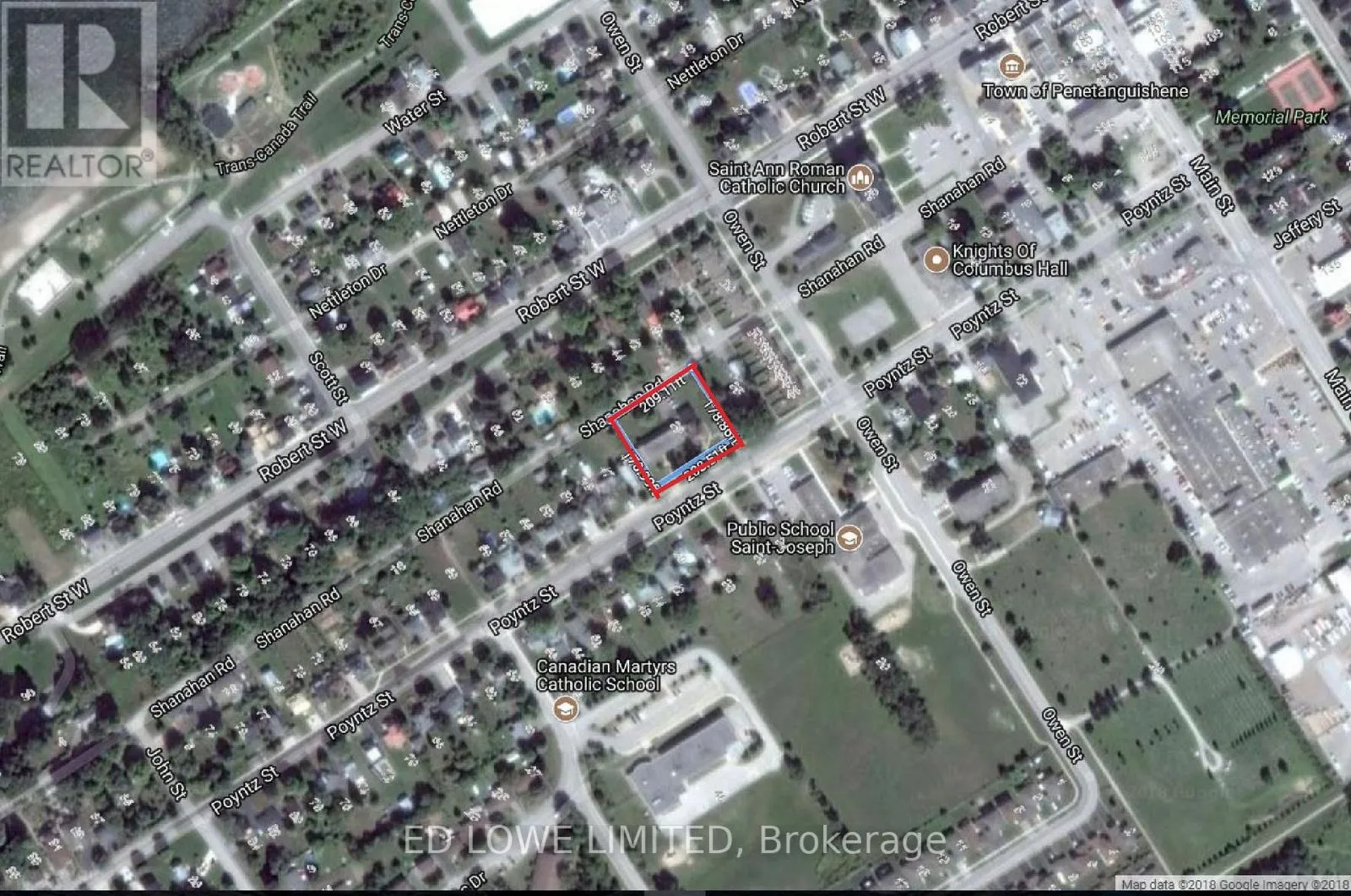 HWY 93 & POYNTZ ST. 3400 s.f. brick duplex house with ground floor living quarters with large kitchen/ living area, 1-2 bedrooms or 1 bed and den plus 2nd/3rd floor living area with kitchen, balcony and 4 rooms on main floor plus 3rd floor usable space. Property will be severed and separated from the existing retirement building next door. It is in the process of rezoning to residential to be used as a single or duplex. The garage and shop building can provide a future 3rd unit on the property to live in one area and have income from potentially 2 rental units once zoned and severed by seller and a buyer making the required permits and renovations to meet code requirements for multi family living. Nicely situated on large lot overlooking Georgian Bay. Close to Village Square Mall, St Ann's Church, the Penetanguishene legion and the Main Street amenities. (id:27476)