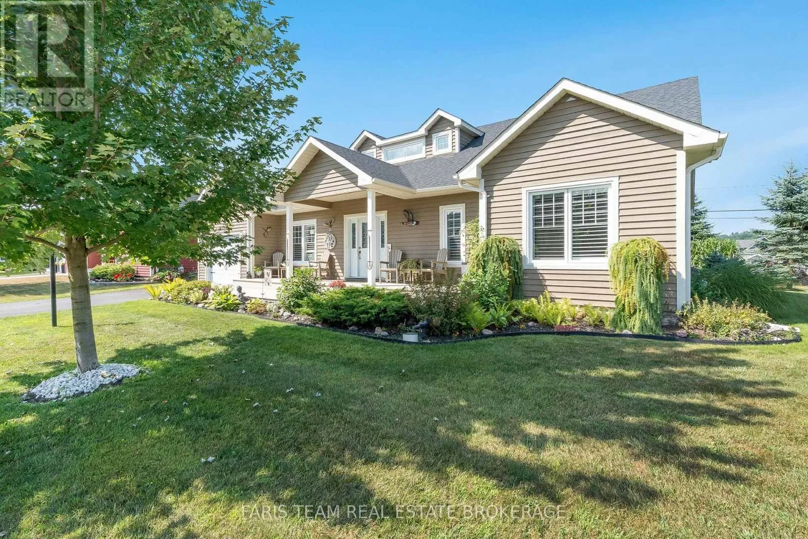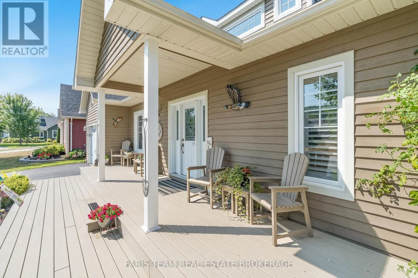 Bay Moorings Blvd/Grew Cres Top 5 Reasons You Will Love This Home: 1) Exceptional ranch bungalow offering serene water views, a bright open-concept layout, and spacious front and back decks, perfect for enjoying the warmer months in the sought-after Village at Bay Moorings 55+ community 2) Beautifully landscaped corner lot with mature gardens, a built-in sprinkler system, and complemented by a double driveway for added convenience 3) Generous primary suite with a walk-in closet and exclusive ensuite access, featuring a dual-sink vanity for both style and functionality 4) Additional highlights include a versatile den, an expansive crawl space, parking for up to three vehicles, and worry-free living with access to a brand-new clubhouse 5) Ideally located near shopping, Discovery Harbour, Georgian Bay, and scenic walking trails, with local restaurants just minutes away. 1,683 above grade sq.ft. Visit our website for more detailed information. (id:27476)