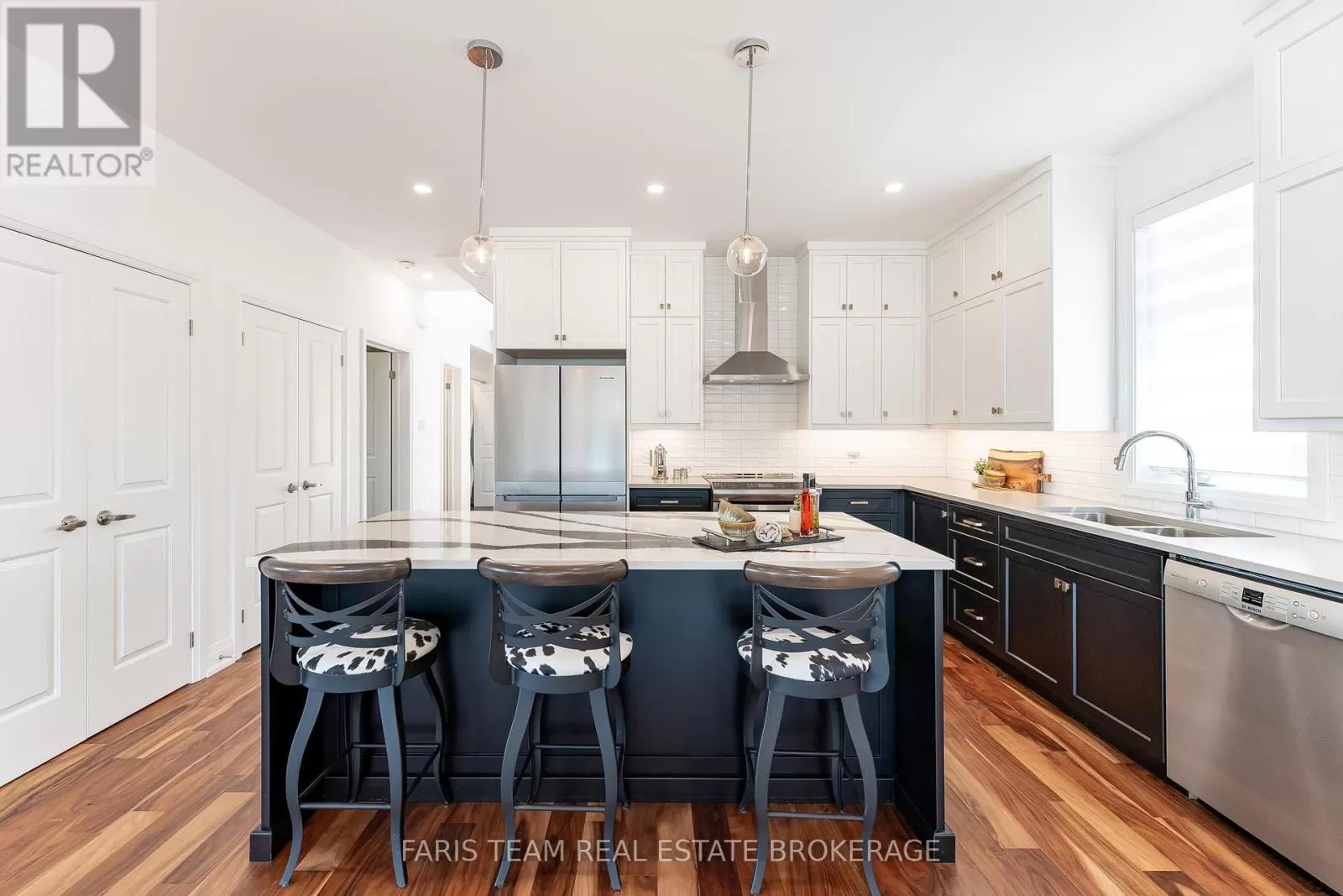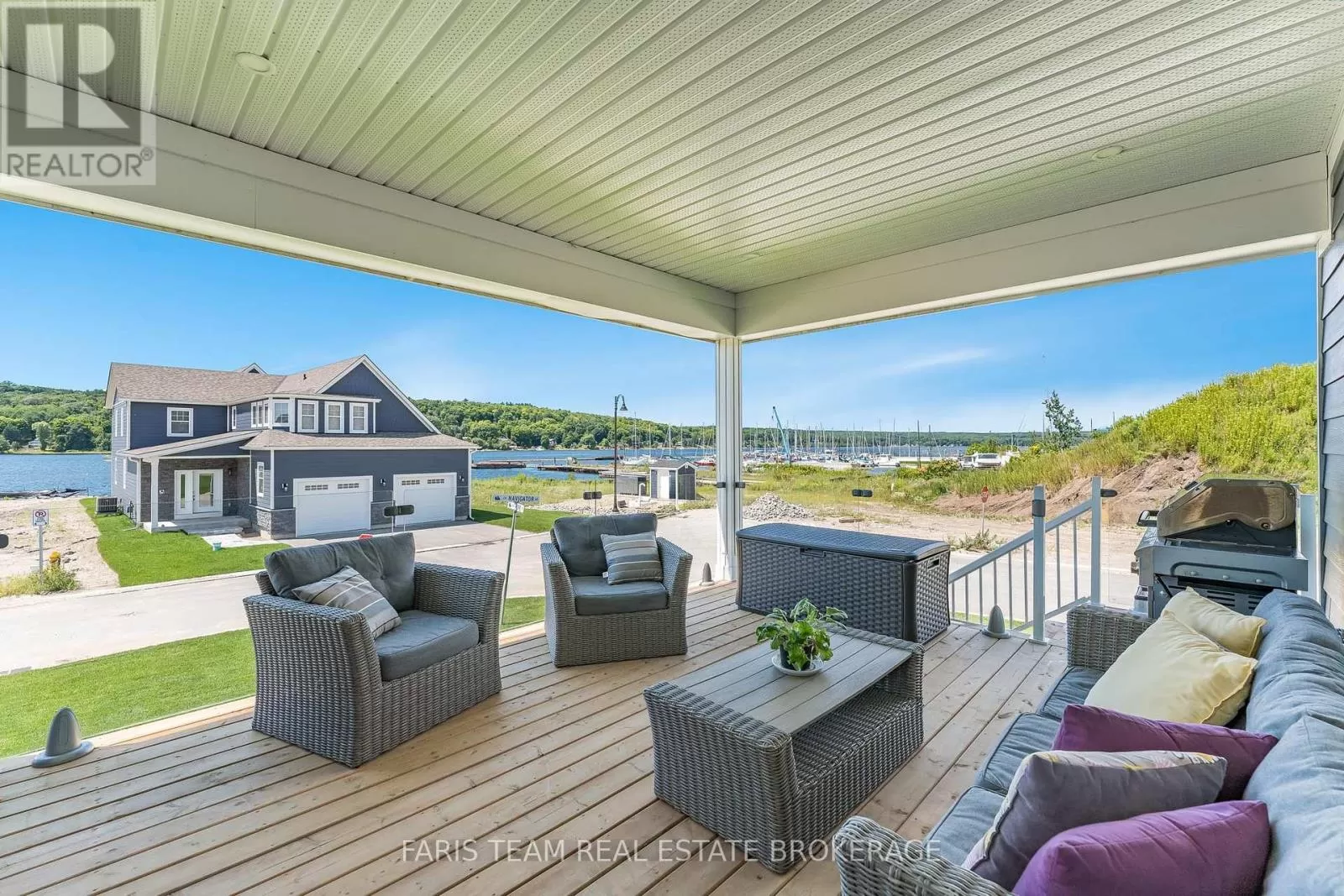 Fox St/Magazine St Top 5 Reasons You Will Love This Home: 1) Discover the epitome of modern luxury in this stunning new 2023 build, offering picturesque sunsets and panoramic views over Penetang Bay from every angle of the home; steps away from the water with your very own personal 26' dock plus fees, this location is truly unbeatable 2) Step into a bright, expansive living space where the kitchen features a chic tiled backsplash and the living room boasts stunning views while it seamlessly flows out to the deck with elegant glass railings, providing an unobstructed view of the tranquil bay 3) Expansive main level primary bedroom, hosting a haven for relaxation with an exquisite ensuite bathroom, designed to deliver the utmost in comfort and style 4) Bonus recreation room over the garage creating the perfect versatile space for unwinding in the evenings, whether enjoying family board games or a cozy movie night, alongside a full basement with egress windows and a roughed-in bathroom, creating an ideal opportunity for your dream basement 5) Ideally situated and centrally located near downtown, providing easy access to all amenities, including marinas, shops, and dining. 2,446 above grade sq.ft. (id:27476)