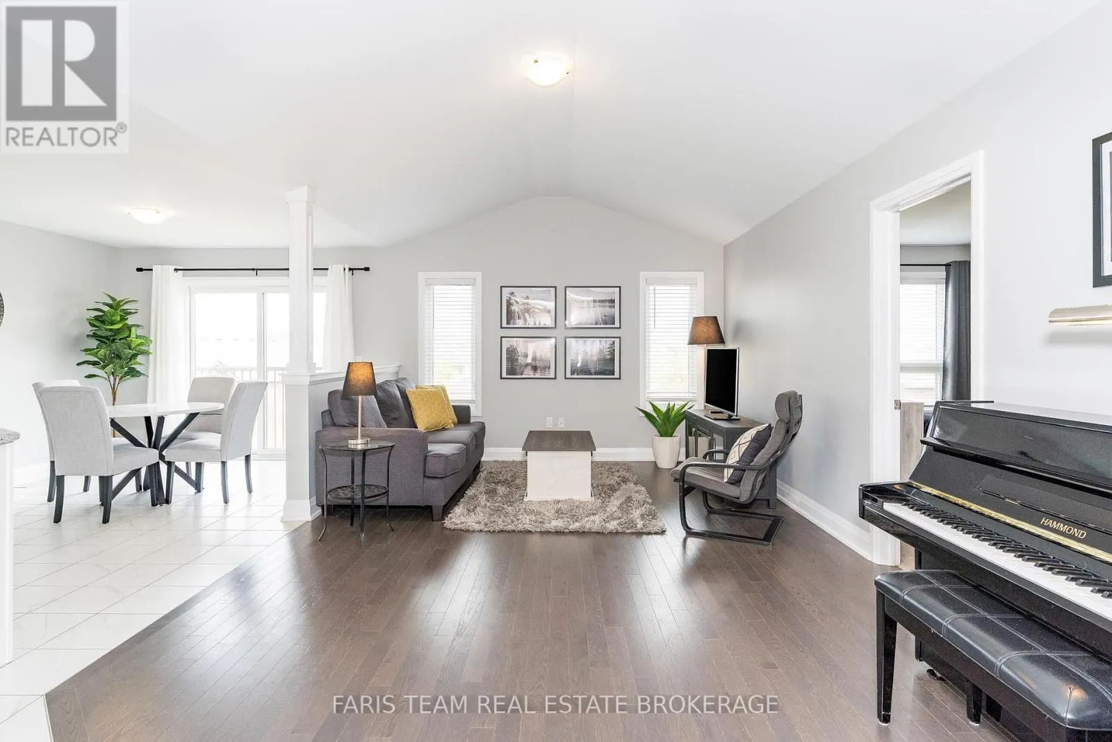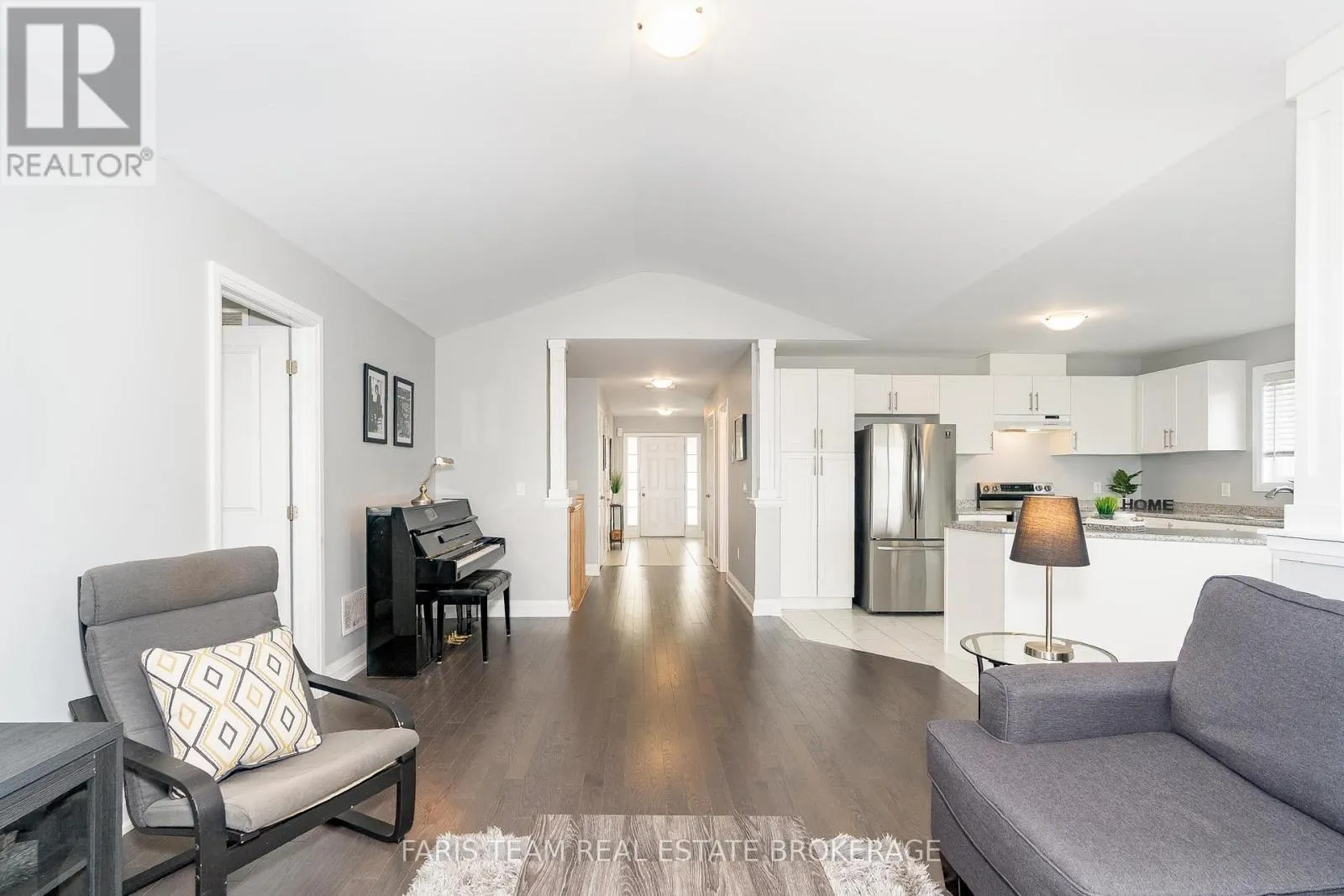 Revol Rd/Beausoleil Dr Top 5 Reasons You Will Love This Home: 1) Built in 2021, this all-brick bungalow offers over 1,500 square feet of refined main level living, featuring hardwood and ceramic flooring, vaulted ceilings, custom window coverings, and a fresh coat of professional paint throughout 2) The thoughtful layout includes three spacious bedrooms and two full bathrooms, with a serene primary suite complete with a walk-in closet and a spa-inspired ensuite showcasing a soaker tub and separate shower 3) At the heart of the home is a sleek, modern kitchen with stainless-steel appliances, a generous island, and abundant counterspace, flowing effortlessly into the dining area with walkout access to the backyard, perfect for future deck plans and outdoor entertaining 4) The full, unfinished basement offers a walkout to the backyard and is roughed-in for a third bathroom, an ideal canvas for additional living space, an in-law suite, or a value-adding custom retreat 5) Ideally located near schools, parks, trails, and the marina, with easy access to downtown; enjoy everyday conveniences like natural gas heating, central air, hot water on demand, a fully fenced yard, paved driveway, and inside entry from the garage. 1,512 above grade sq.ft. plus an unfinished basement. Visit our website for more detailed information. (id:27476)