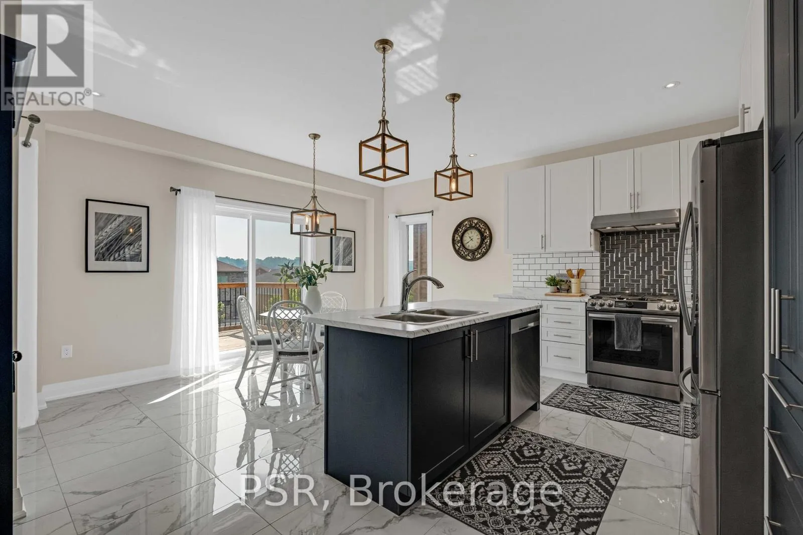 PENETANGUISHENE RD / THOMPSON RD W Welcome to 16 Hewson Street in Penetanguishene. This stunning 4-bedroom, 3-bathroom home offers over 2,400 square feet of beautifully finished above grade living space on a premium lot in a highly sought-after, family-friendly neighbourhood. From the moment you step inside, you will be impressed by the 9-foot ceilings, gleaming hardwood floors, and elegant finishes throughout. The open-concept main floor is filled with natural light and features pot lights that create a warm and welcoming atmosphere. At the heart of the home is the upgraded kitchen, designed for both everyday living and entertaining. It features extended cabinetry, modern countertops, and high-end appliances. From here, step out to a large deck with stairs leading to a fully fenced backyard, perfect for hosting, relaxing, or giving kids and pets room to play. Upstairs, you will find four generously sized bedrooms, including a spacious primary suite with a walk-in closet and a spa-inspired ensuite. All bathrooms are finished with sleek, modern touches and quality materials. The walkout basement with 9-foot ceilings is a blank canvas with endless potential. Whether you envision a home gym, extra living space, or an in-law suite, it is ready for your ideas. Exterior soffit lighting highlights the home's clean lines and attractive exterior. Located minutes from top-rated schools, parks, the marina, shops, and restaurants; this home offers the perfect blend of comfort, convenience, and lifestyle. Do not miss your opportunity to make this beautiful property your next home! (id:27476)