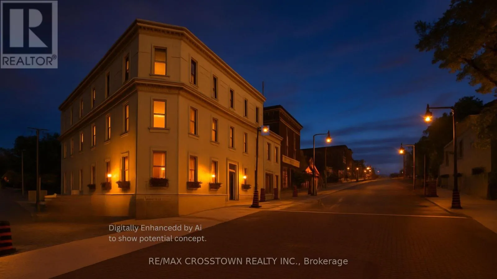 Cross Streets: Main St and Simcoe St. ** Directions: HWY 93 North, into Main Street Penetanguishine. Corner of main St and Simcoe St. The Subject Property Is A Landmark Building Located In The Heart Of Penetanguishene Downtown Core, Steps From Marinas & Town Docks, Restaurants, Shops & The Waterfront Rotary Park & Trails. Formerly Known As The Commodore Bar and Hotel, This Three-story Commercial Structure Occupies A Prominent Hilltop Location With Views Of Georgian Bay. The Building Features Approximately 16,000 SqFt Of Gross Building Area Across Multiple Levels. The Structure Is Of Historical Significance And Offers An Opportunity For The Right Investor To Renovate Or Redevelop. Zoning Allows For Commercial Retail & Service Establishment, Restaurant, Bar, Entertainment Venue, Hotel, Boutique Accommodations, Mixed-use Development (Commercial Ground Floor W/ Multiple Dwelling Units Above), Professional Offices & Business Services. Future Renovations Or Redevelopment Will Need To Align W/ Penetanguishene's Community Design Manual. This Building Is Vacant & Ready For Your Own Vision. (id:27476)