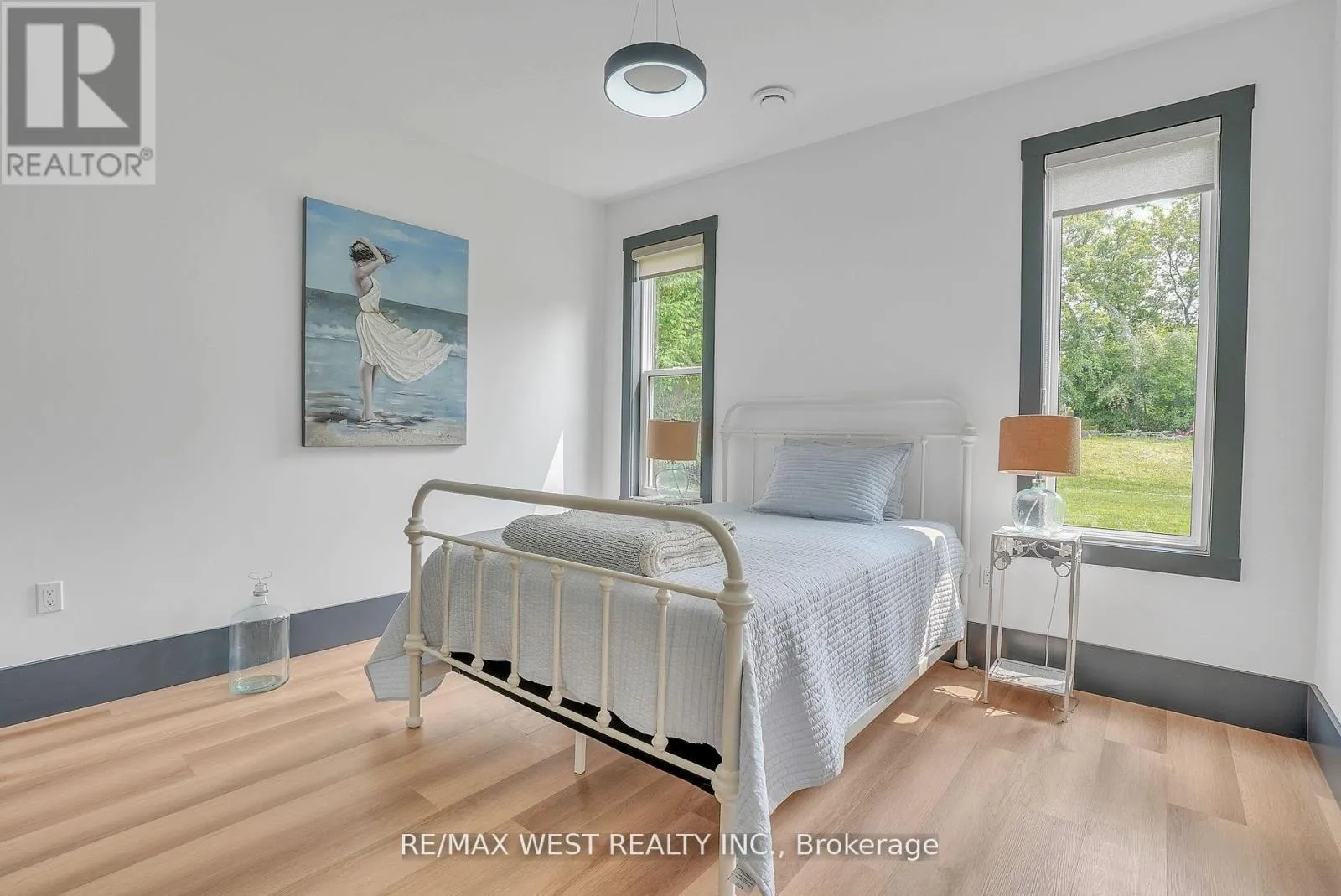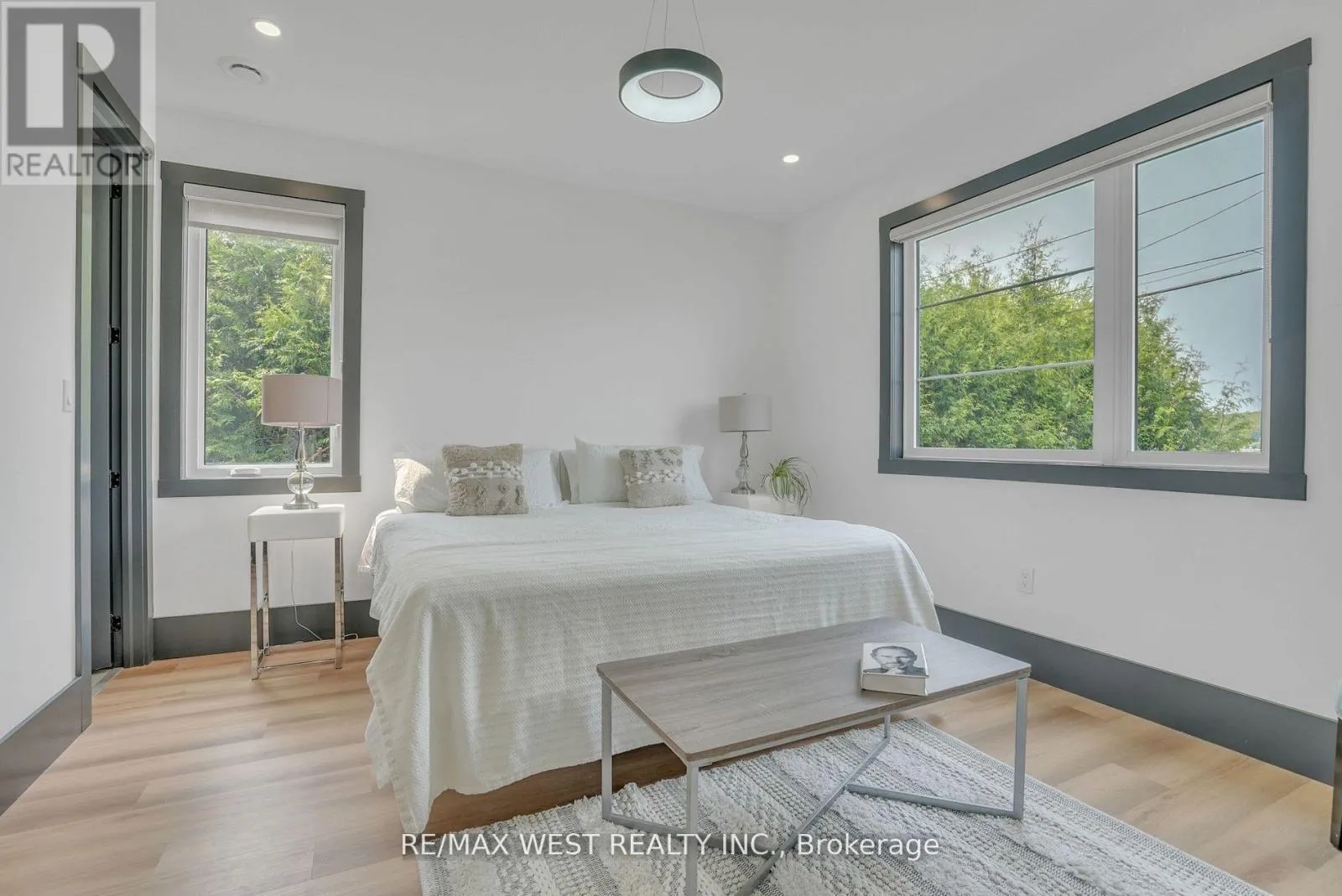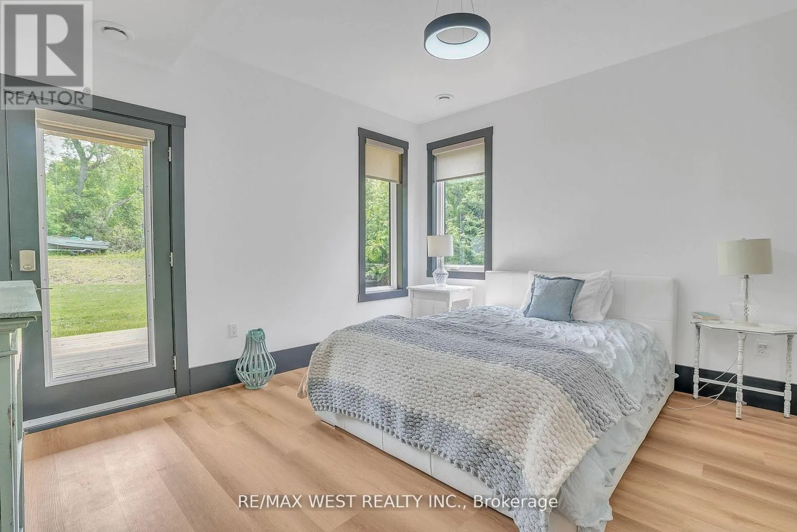 Robert Street East Modern Luxury with Scenic Harbour Views. Just Steps from the Beach. Experience refined coastal living in this exceptional 2,400 sq. ft. modern residence, ideally located just a 3-minute stroll from the beach and showcasing captivating southwest views of Penetang Harbour. Thoughtfully designed with 4 spacious bedrooms (3 on the main floor and 1 on the second floor, now being used as a gym, but could be home office or flex space) and 2.5 elegant bathrooms, this home features an airy open-concept layout highlighted by soaring 12-foot ceilings in the great room, 9-foot ceilings throughout, and premium finishes at every turn. The heart of the home a gourmet kitchen with stainless steel appliances flows seamlessly into the dining and living areas, complete with a cozy fireplace and walkout to a covered balcony perfect for sunset views. Retreat to the serene primary suite featuring a spa-inspired ensuite with a walk-in glass shower. Additional features include radiant in-floor heating on the ground level, modern lighting with designer Kusco fixtures, $10,000 in custom window coverings, 8-foot doors, and custom baseboards throughout. Practicality meets style with inside access to a single-car garage, a well-appointed mudroom/laundry space, and multiple outdoor living areas including three decks and a generous backyard. This is coastal elegance at its finest where every detail has been carefully curated for modern comfort and relaxed sophistication. (id:27476)