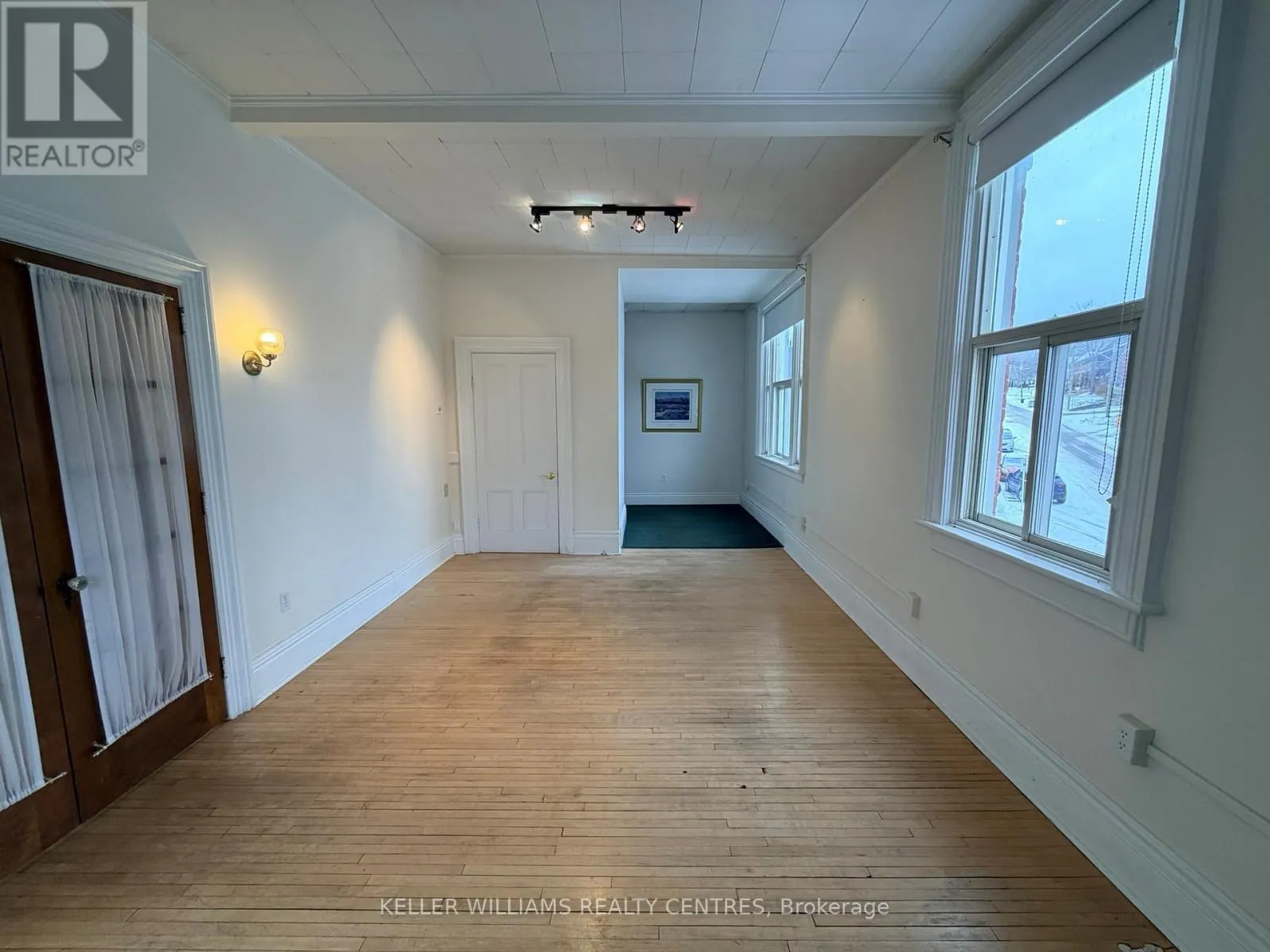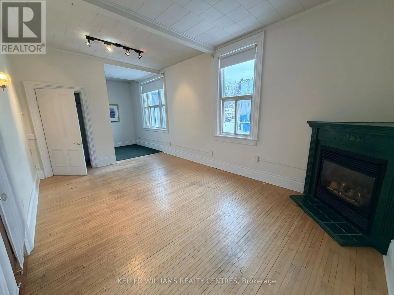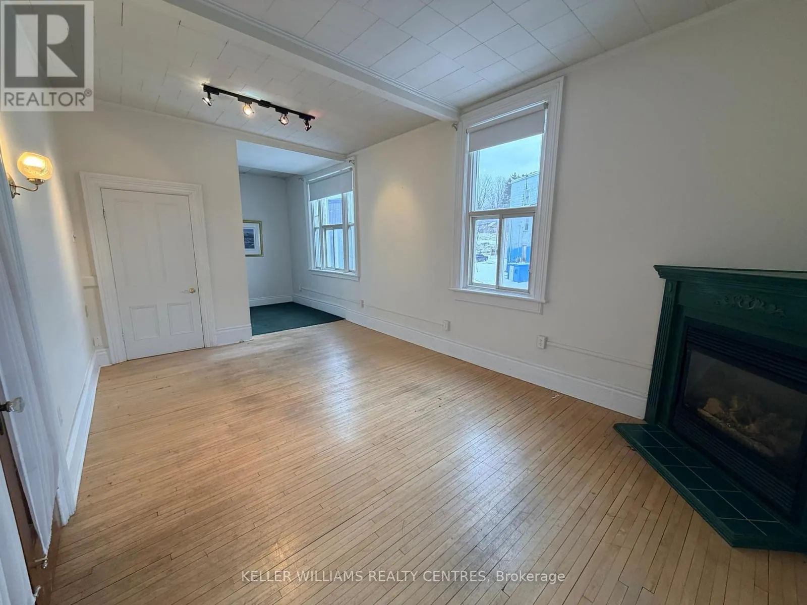 Main St & Simcoe St A bright and spacious upper-level residential apartment that spans the full width of the two commercial units below, offering a unique blend of privacy and downtown convenience. This beautifully appointed 1-bedroom, 1-bathroom suite features soaring ceilings, original hardwood floors, and a welcoming gas fireplace perfect for chilly winter nights. Natural light pours in from windows on all sides, creating a warm and inviting atmosphere throughout. With a dedicated laundry area and generous living space, this character-filled apartment delivers comfort, charm, and functionality in the heart of Penetanguishene's historic core. (id:27476)