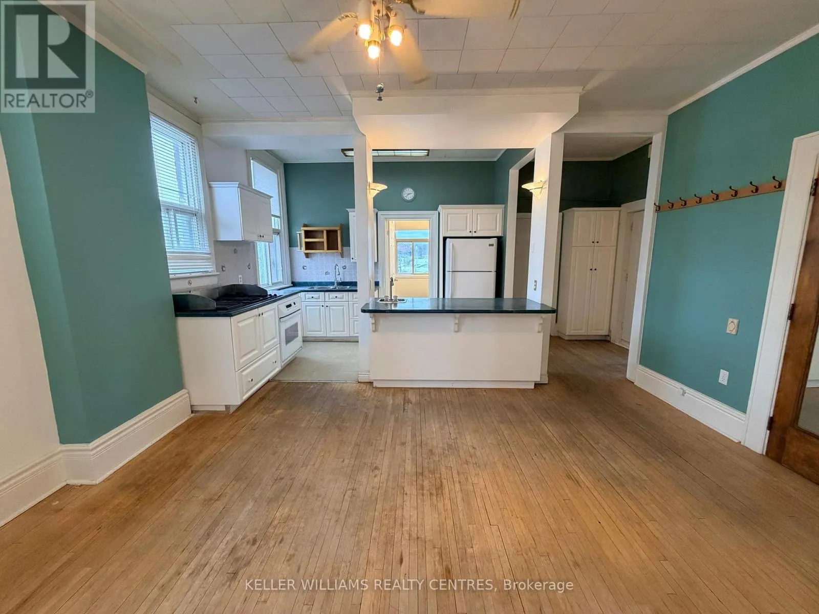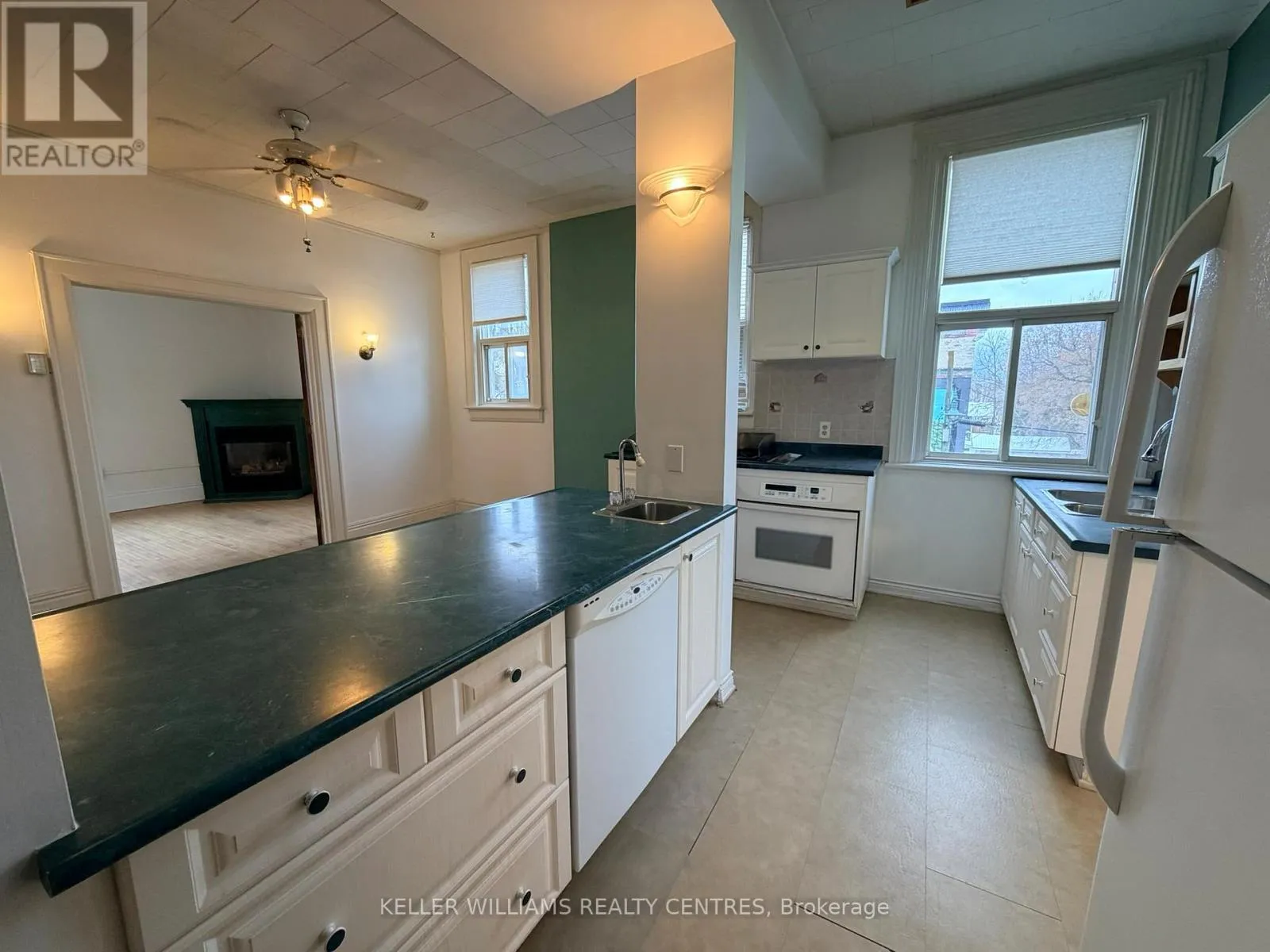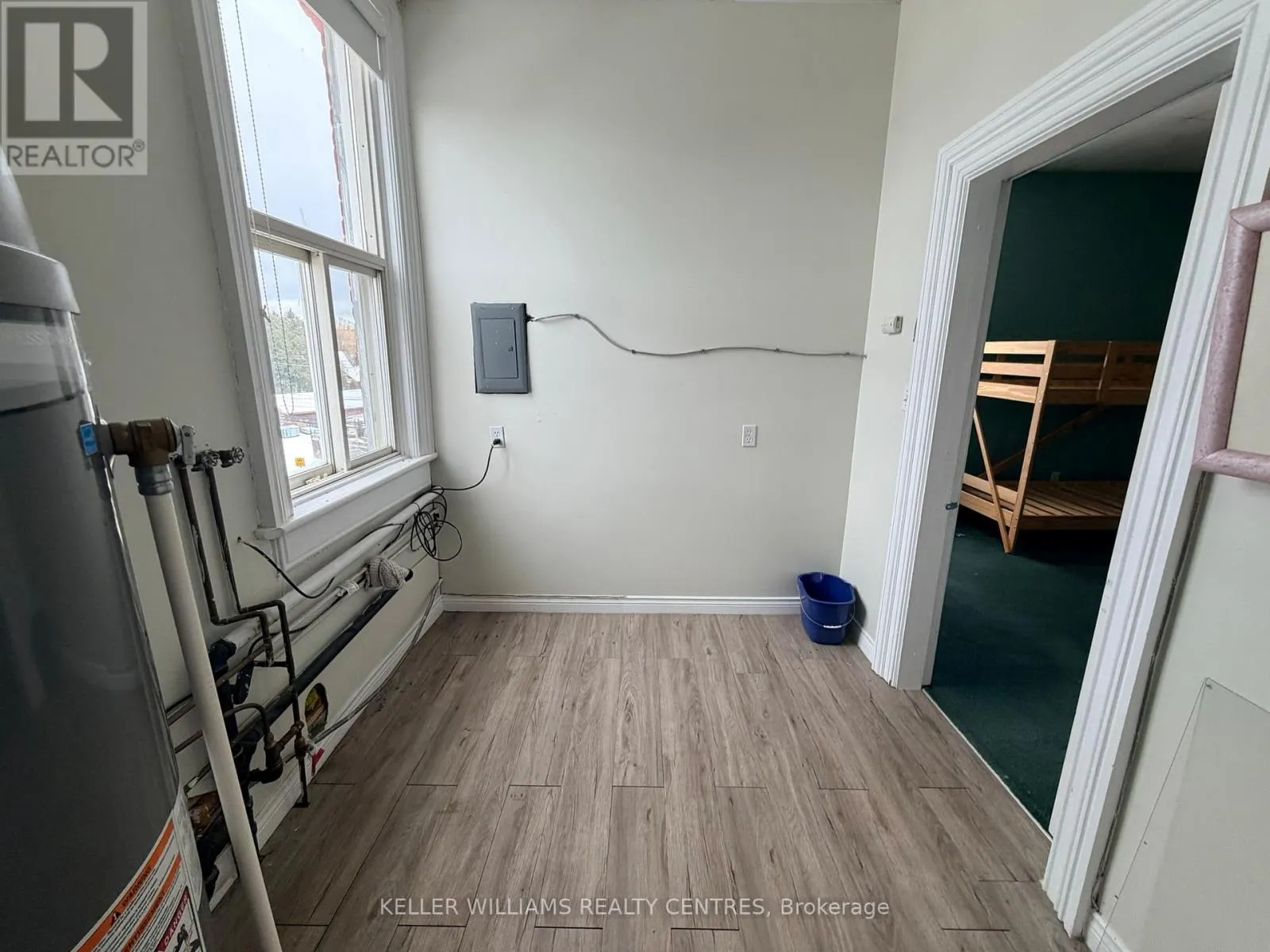 Main St & Simcoe St A bright and spacious upper-level residential apartment that spans the full width of the two commercial units below, offering a unique blend of privacy and downtown convenience. This beautifully appointed 1-bedroom, 1-bathroom suite features soaring ceilings, original hardwood floors, and a welcoming gas fireplace perfect for chilly winter nights. Natural light pours in from windows on all sides, creating a warm and inviting atmosphere throughout. With a dedicated laundry area and generous living space, this character-filled apartment delivers comfort, charm, and functionality in the heart of Penetanguishene's historic core. (id:27476)