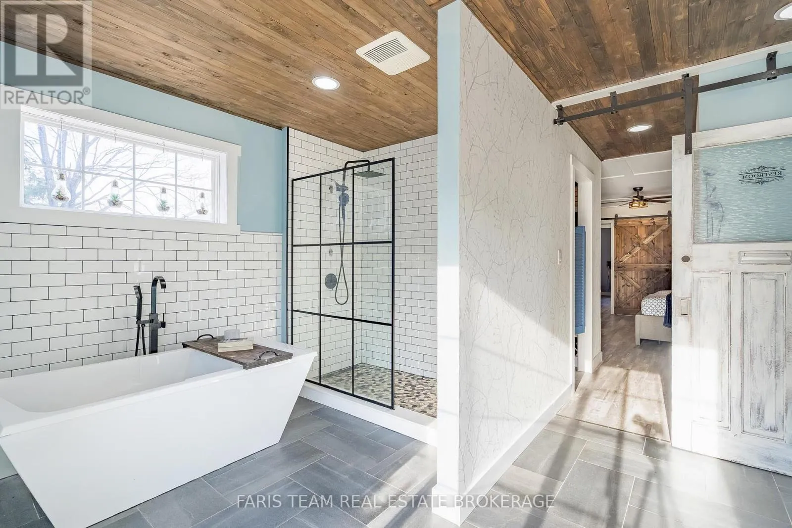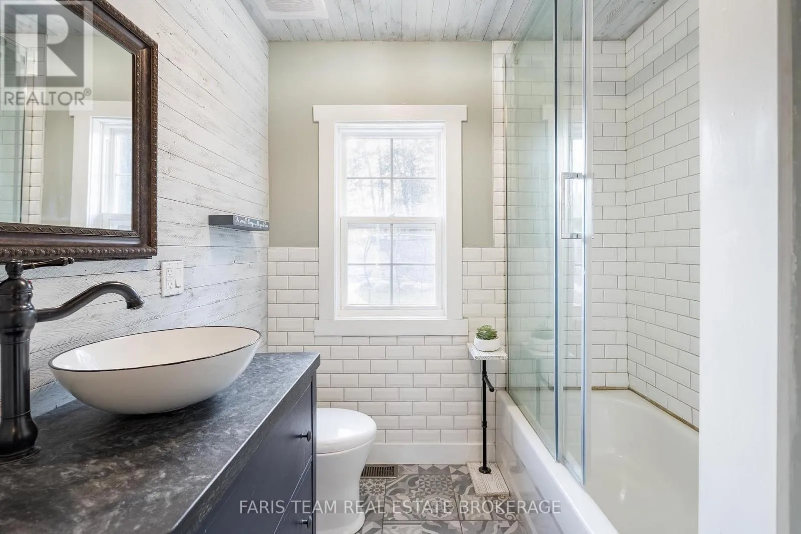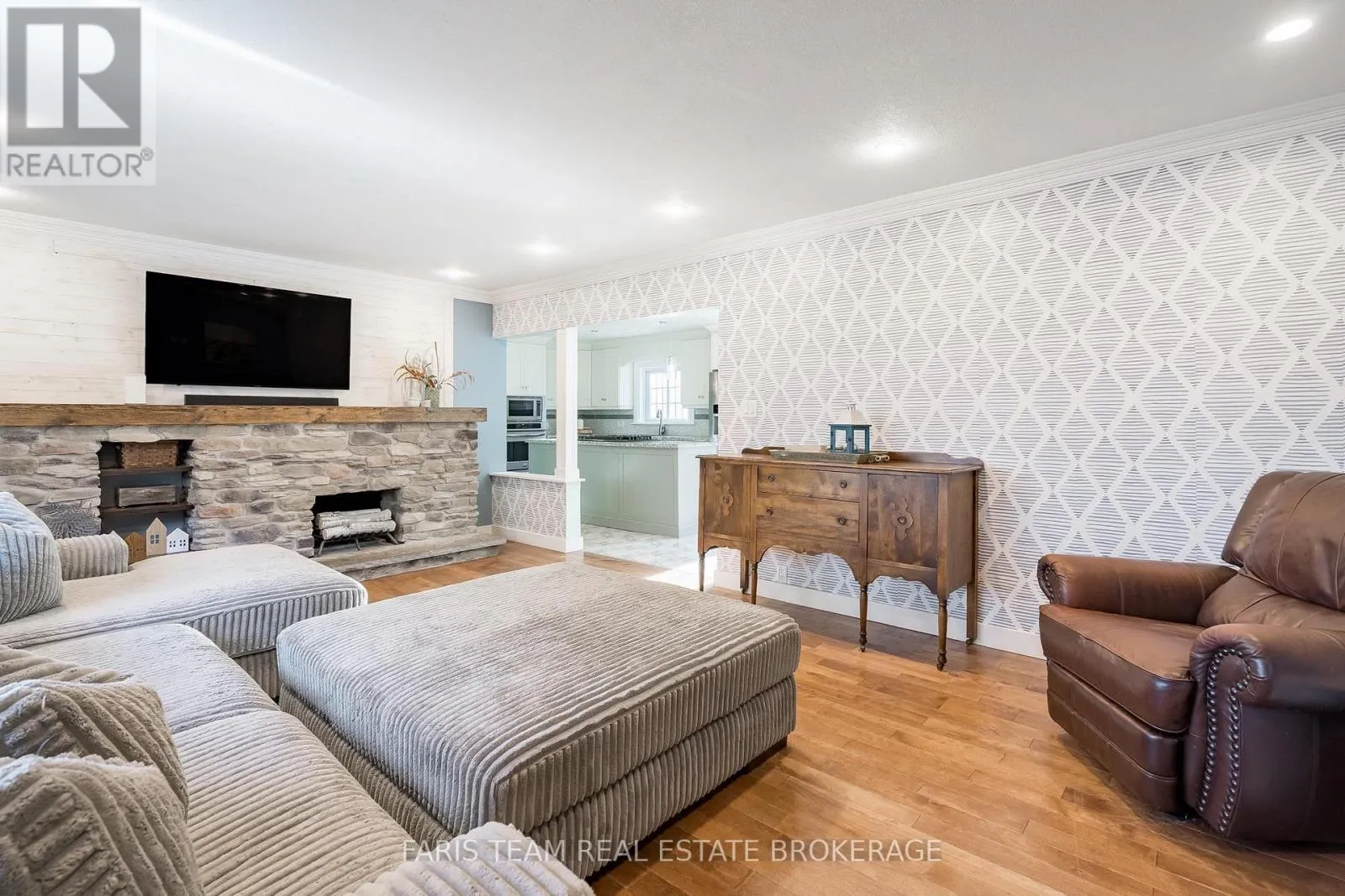 Robert St W/Lafontaine Rd E Top 5 Reasons You Will Love This Home: 1) Step inside to discover recently renovated, spa-like bathrooms, including a primary ensuite featuring a sleek freestanding soaker tub, a modern black-grid glass shower set against classic subway tile, and high-end vanity stations with vessel sinks, providing a true daily escape 2) Bright updated kitchen boasting attractive two-tone cabinetry, a functional island workspace, and durable tiling, opening directly into the adjacent dining area which features an eye-catching accent wall and access to the yard, perfect for hosting and family gatherings 3) Enjoy custom design elements throughout, including a warm plank wood ceiling in the kitchen and dining area, a decorative ceiling in the main bedroom, and a variety of stylish wallpaper accents that give the home a distinctive and high-end personality unlike any other 4) Comfortable family room anchored by a gorgeous, rustic stone fireplace and a chunky wood mantel, while high-quality hardwood floors span the living area, creating a warm, comfortable, and durable setting ideal for relaxation and spending time together 5) Located just 5 minutes from Penetanguishene for unparalleled convenience, the property sits on a spacious lot of almost 1-acre, offering desirable privacy, room for expansion, and access to the area's natural amenities like Georgian Bay and local trails. 2,301 above grade sq.ft. plus a finished basement. (id:27476)