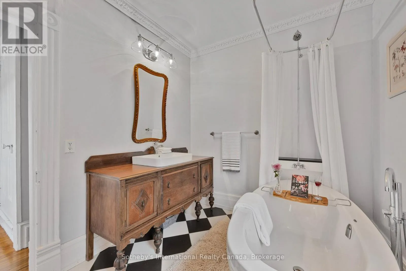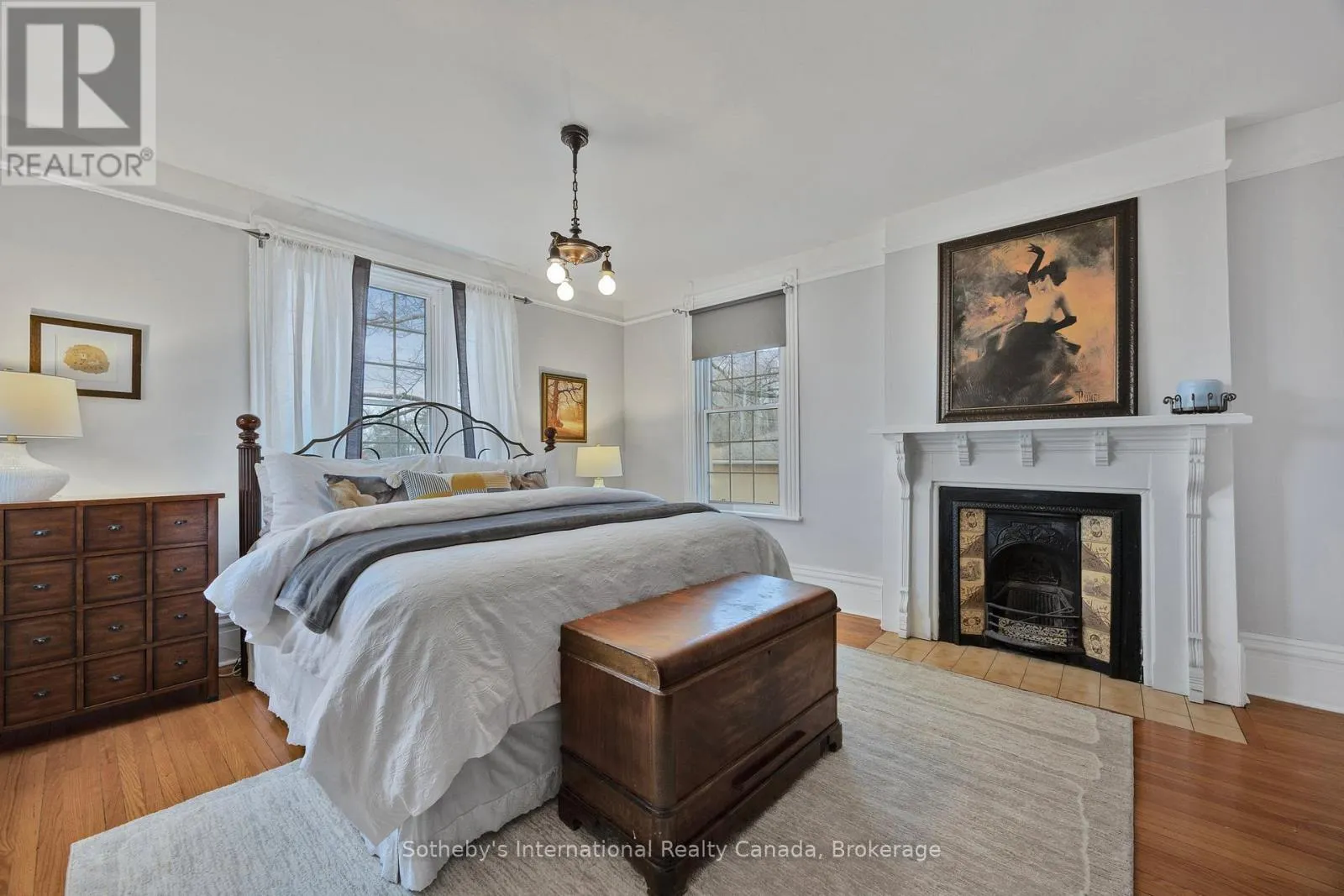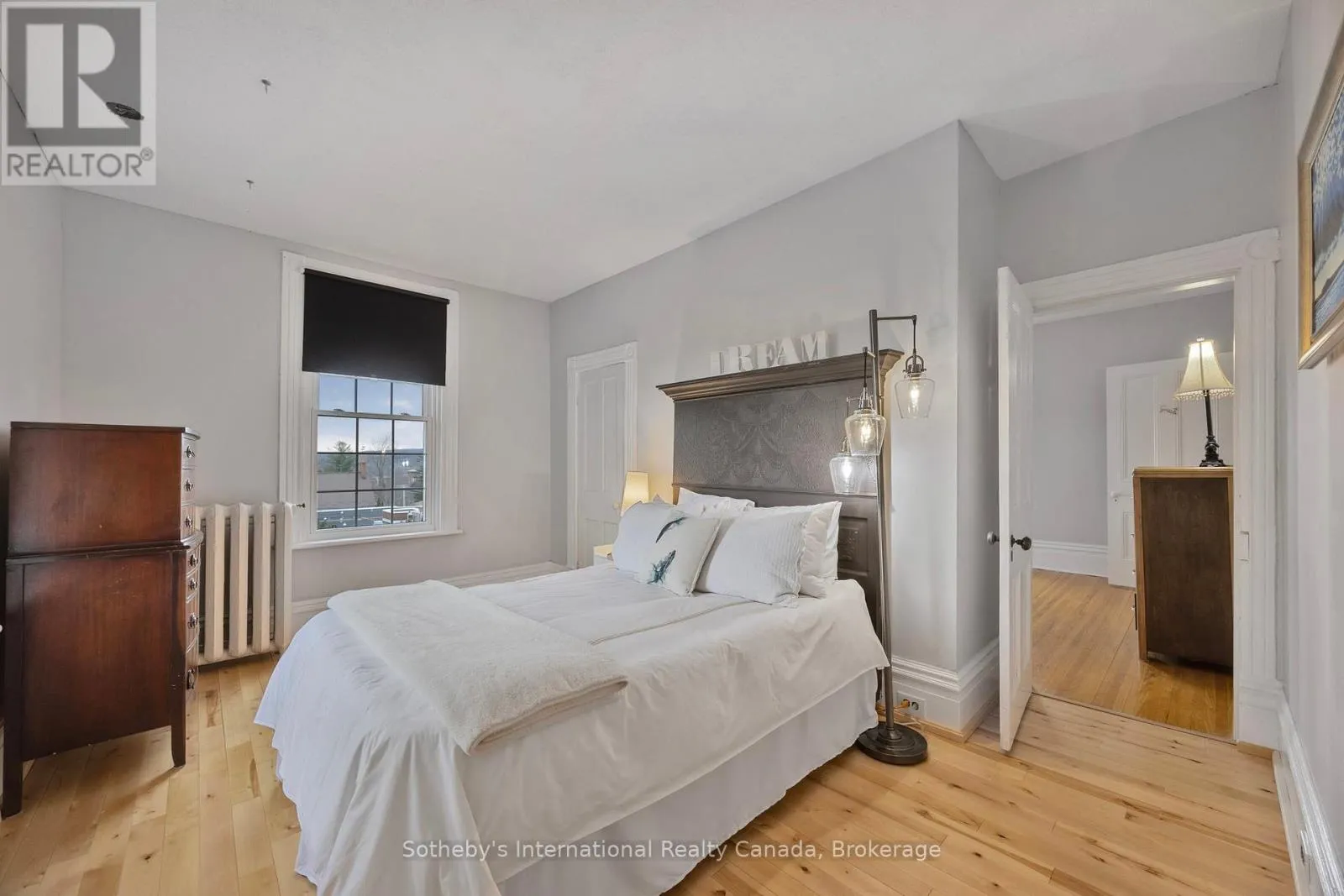 Cross Streets: Main and Robert St E. ** Directions: Penetanguishene Rd turns into Main St. Follow Main St to Robert St E, turn right until you get to the house on the right. Perched on a hilltop in the heart of Penetanguishene, 26 Robert Street East is an exquisitely restored Edwardian century home offering timeless elegance, modern comfort, and exceptional privacy. Set on an impressive 118 ft x 224 ft lot, this rare property blends historic charm with thoughtful, high-quality updates.Inside, the home showcases over a century of craftsmanship with soaring ceilings, reclaimed hardwood floors, and exposed brick accents throughout. The updated kitchen features dramatic ceiling height, a walkout to a sun-filled deck, and seamless access to a walk-in pantry and laundry room-designed for both refined living and effortless entertaining. A formal dining room with a decorative fireplace and large windows creates an inviting atmosphere, while the cozy family room opens to a bright sunroom with elevated views across town. The upper level offers three generously sized bedrooms and two beautifully updated 3-piece bathrooms. A finished attic provides over 700 sq ft of flexible living space, ideal for a home office, studio, or private retreat. Outdoors, the expansive grounds offer room to garden, entertain, or simply unwind, complemented by two detached garages perfect for storage, workshop space, or creative pursuits. Distinctive restoration details, including a custom fence crafted from the home's original storm windows, reflect the care and vision behind every element. Significant updates include a new roof, all new windows, and fully modernized electrical and plumbing systems, ensuring modern peace of mind within a historic setting. Located just minutes from Georgian Bay, waterfront parks, trails, and downtown Penetanguishene, this exceptional residence offers a rare opportunity to own a beautifully restored piece of Ontario's architectural heritage. (id:27476)