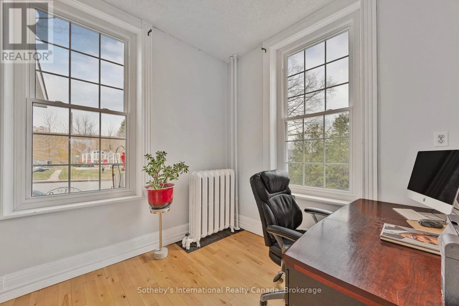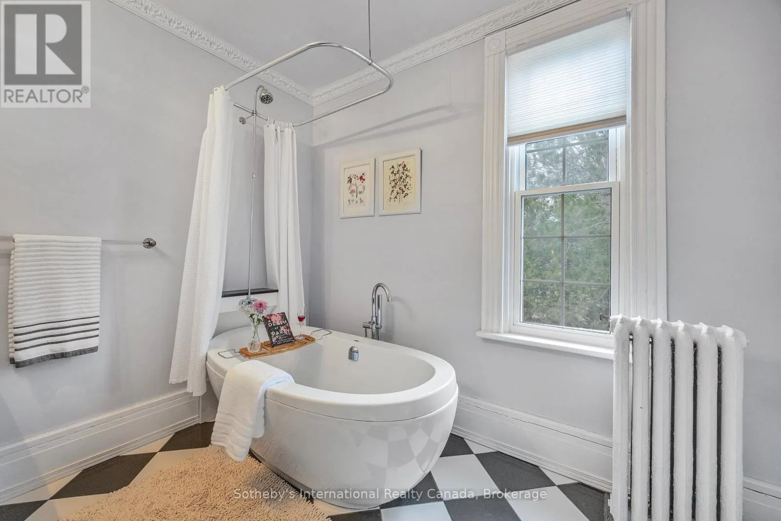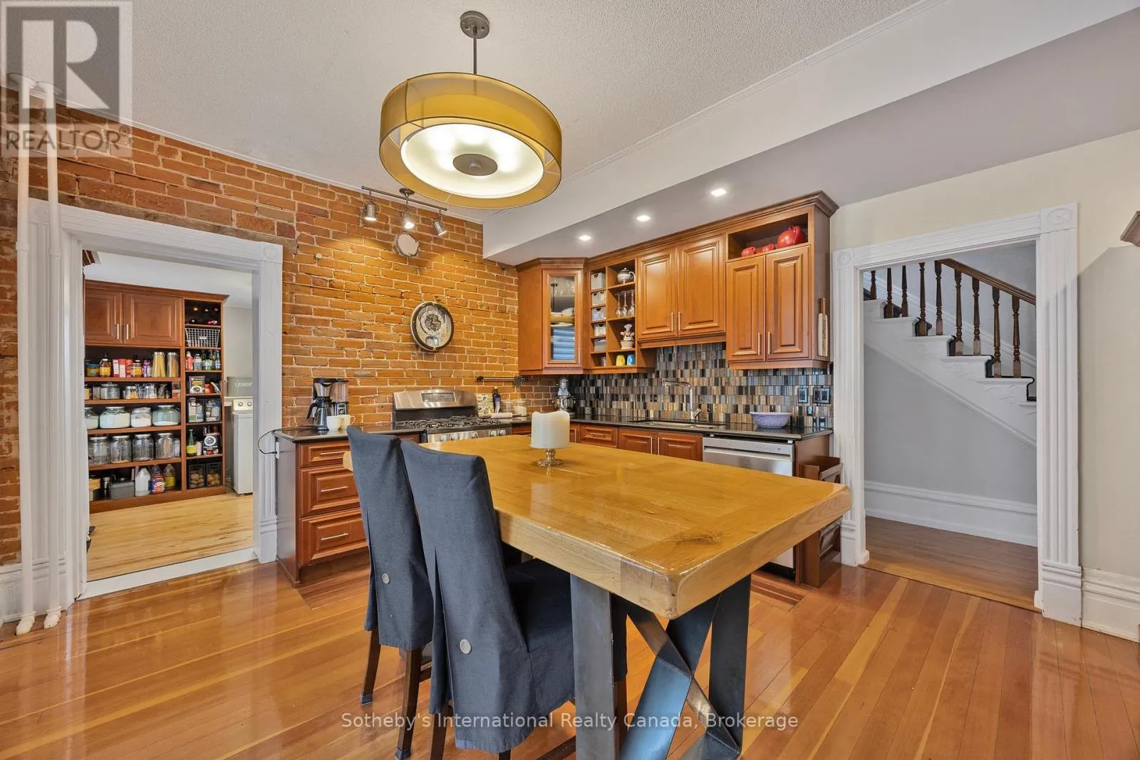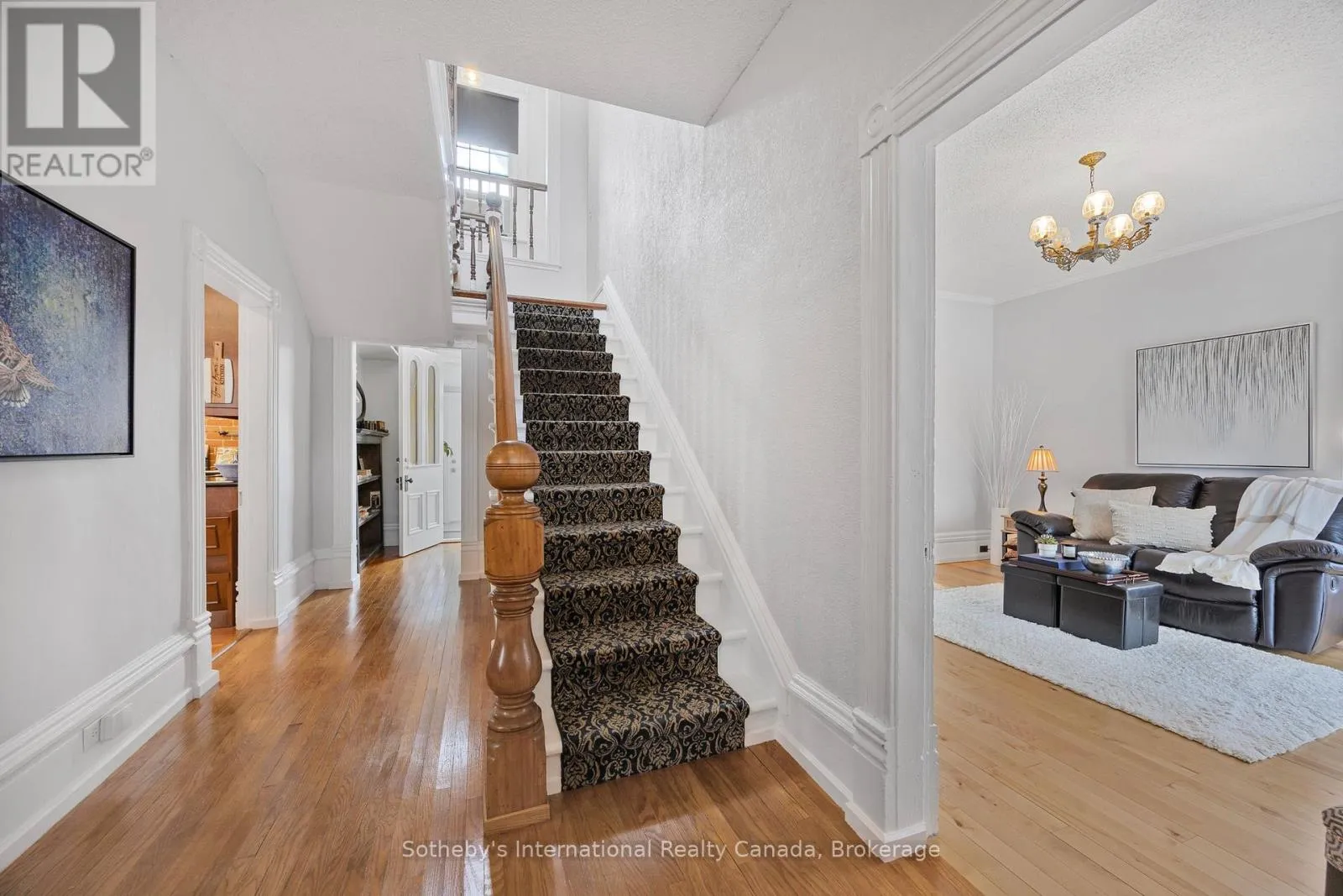 Cross Streets: Main and Robert St E. ** Directions: Penetanguishene Rd turns into Main St. Follow Main St to Robert St E, turn right until you get to the house on the right. Perched on a hilltop in the heart of Penetanguishene, 26 Robert Street East is an exquisitely restored Edwardian century home offering timeless elegance, modern comfort, and exceptional privacy. Set on an impressive 118 ft x 224 ft lot, this rare property blends historic charm with thoughtful, high-quality updates.Inside, the home showcases over a century of craftsmanship with soaring ceilings, reclaimed hardwood floors, and exposed brick accents throughout. The updated kitchen features dramatic ceiling height, a walkout to a sun-filled deck, and seamless access to a walk-in pantry and laundry room-designed for both refined living and effortless entertaining. A formal dining room with a decorative fireplace and large windows creates an inviting atmosphere, while the cozy family room opens to a bright sunroom with elevated views across town. The upper level offers three generously sized bedrooms and two beautifully updated 3-piece bathrooms. A finished attic provides over 700 sq ft of flexible living space, ideal for a home office, studio, or private retreat. Outdoors, the expansive grounds offer room to garden, entertain, or simply unwind, complemented by two detached garages perfect for storage, workshop space, or creative pursuits. Distinctive restoration details, including a custom fence crafted from the home's original storm windows, reflect the care and vision behind every element. Significant updates include a new roof, all new windows, and fully modernized electrical and plumbing systems, ensuring modern peace of mind within a historic setting. Located just minutes from Georgian Bay, waterfront parks, trails, and downtown Penetanguishene, this exceptional residence offers a rare opportunity to own a beautifully restored piece of Ontario's architectural heritage. (id:27476)