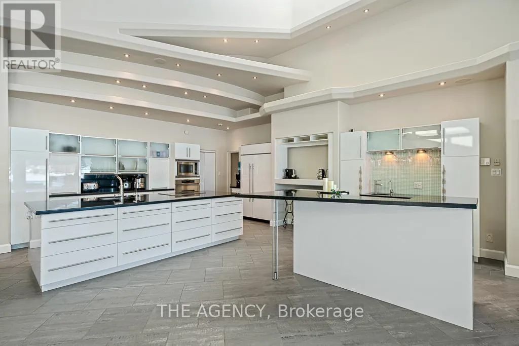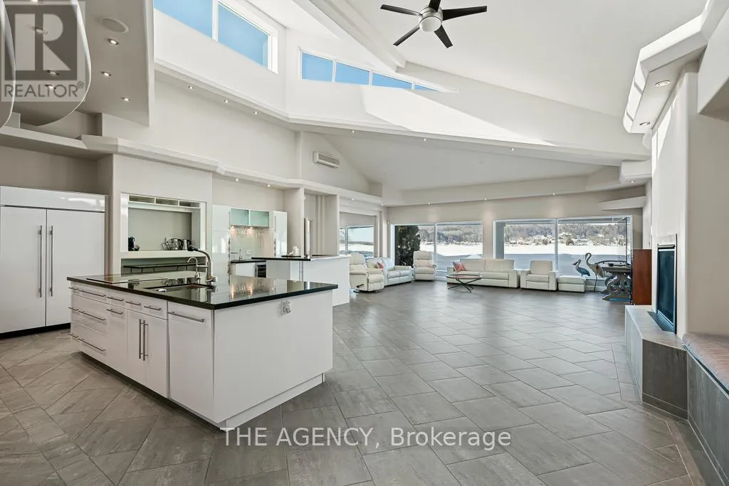 Beck Blvd & Main St Wake up to wide, unobstructed views of Georgian Bay, step onto your own white sand beach, and enjoy true four-season waterfront living. Set on an exceptional 85 x 346 ft lot with 85 ft of shoreline, this 3,000-3,500 sq ft custom bungalow offers year-round comfort in one of Penetanguishene's most desirable waterfront locations. The home features 3 bedrooms, 3 bathrooms, a built-in 2-car garage, parking for 6 vehicles, a private dock, and protected deep-water access.Designed to bring the outdoors in, the home offers a bright open-concept layout with floor-to-ceiling windows, vaulted ceilings, and skylights that capture the water views throughout. The living area is centred around a gas fireplace, while the kitchen with centre island and breakfast bar opens directly to outdoor entertaining spaces.The primary bedroom enjoys direct waterfront views, while two additional bedrooms and three full bathrooms provide space for family and guests. Outside, professionally landscaped grounds, an 8-person hot tub, and easy access to boating, swimming, and fishing complete the experience. Minutes to downtown Penetanguishene, Awenda Provincial Park, the Tiny Rail Trail, and the 30,000 Islands . (id:27476)
