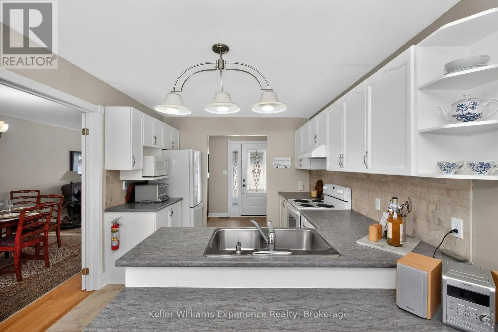 Cross Streets: Thompson rd/Copeland st. ** Directions: Thompson rd to Copeland st. Welcome to this beautifully maintained bungalow in a highly desirable Penetanguishene neighbourhood. This inviting home features three spacious bedrooms on the main level, including a bright primary retreat complete with a walk-in closet and private 3-piece ensuite. Elegant hardwood flooring flows seamlessly through the living room, dining area and bedrooms, creating a warm and cohesive feel throughout the main floor. Year round comfort is provided by efficient gas heating and central air conditioning. The fully finished lower level offers excellent additional living space, featuring a large recreation room with a cozy gas fireplace, a generously sized laundry room, a fourth bedroom plus a den, and a full 4-piece bathroom, ideal for family living or accommodating guests. Step outside through the sliding glass doors to a covered deck overlooking a fully fenced backyard. Thoughtfully landscaped and meticulously maintained, this private outdoor space is perfect for relaxing, entertaining, or enjoying peaceful surroundings. Completing this exceptional package is a two car garage with ample storage, along with outstanding curb appeal highlighted by beautifully tended gardens that reflect true pride of ownership. Ideally located within a short walk to downtown shops, local parks, schools, and Georgian Village, this home offers the perfect blend of convenience, comfort, and charm. (id:27476)