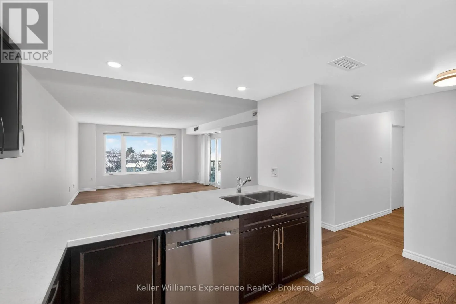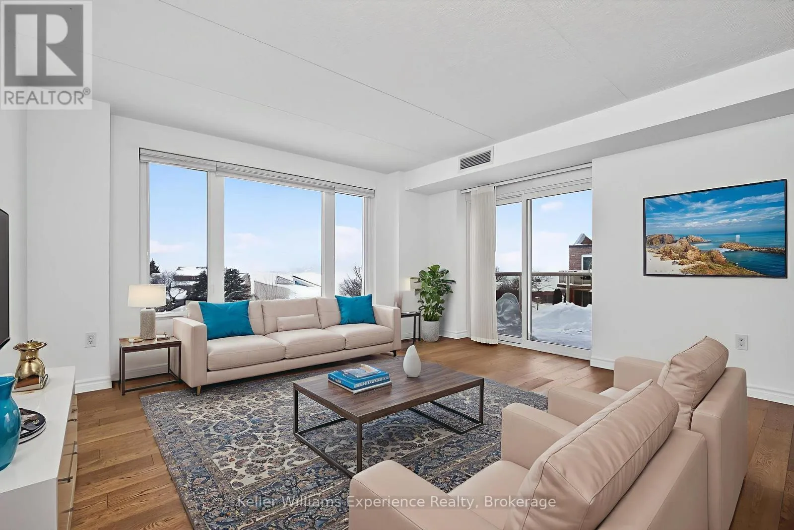 Cross Streets: Main St and Beck Blvd. ** Directions: Highway 93 north, to Main Street in Penetanguishene, veer right onto Beck Boulevard, to 11 Beck on right. Perched on the top floor with bay views, this beautifully maintained 2-bedroom, 2-bathroom condo offers a truly special vantage point with direct access to the shoreline just steps from the building. The interior was thoughtfully updated, including new flooring, an updated kitchen, and renovated bathroom, creating a bright and comfortable living space. All windows were replaced in 2026, and furnace in 2018 adding both efficiency and peace of mind. The spacious primary bedroom features a double closet and private ensuite. Set in a quiet, non-smoking building of just 32 units, this condo enjoys an unbeatable location, making it easy to enjoy waterfront strolls and local amenities. A rare offering that combines low-maintenance living, modern updates, and a truly exceptional view. (id:27476)