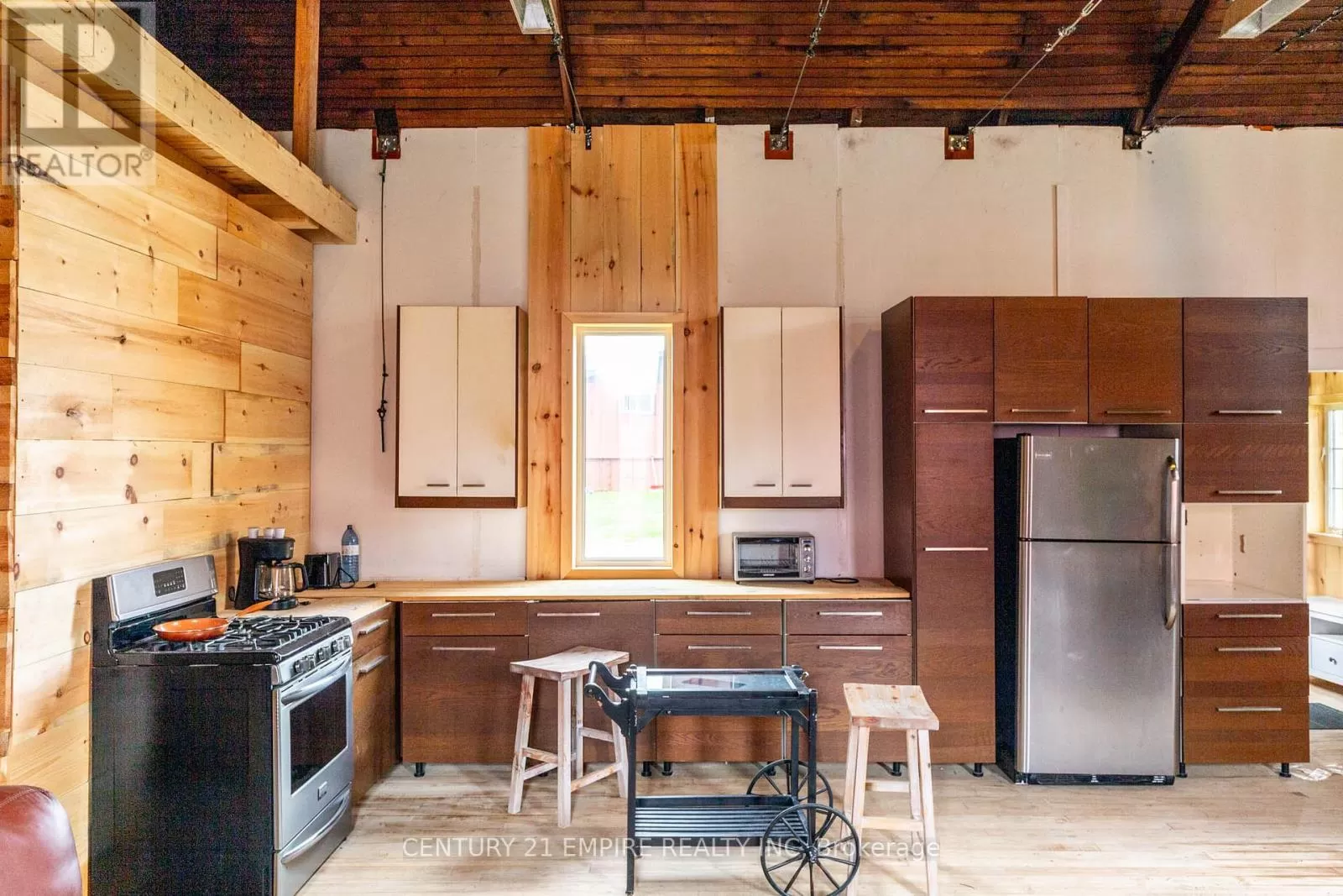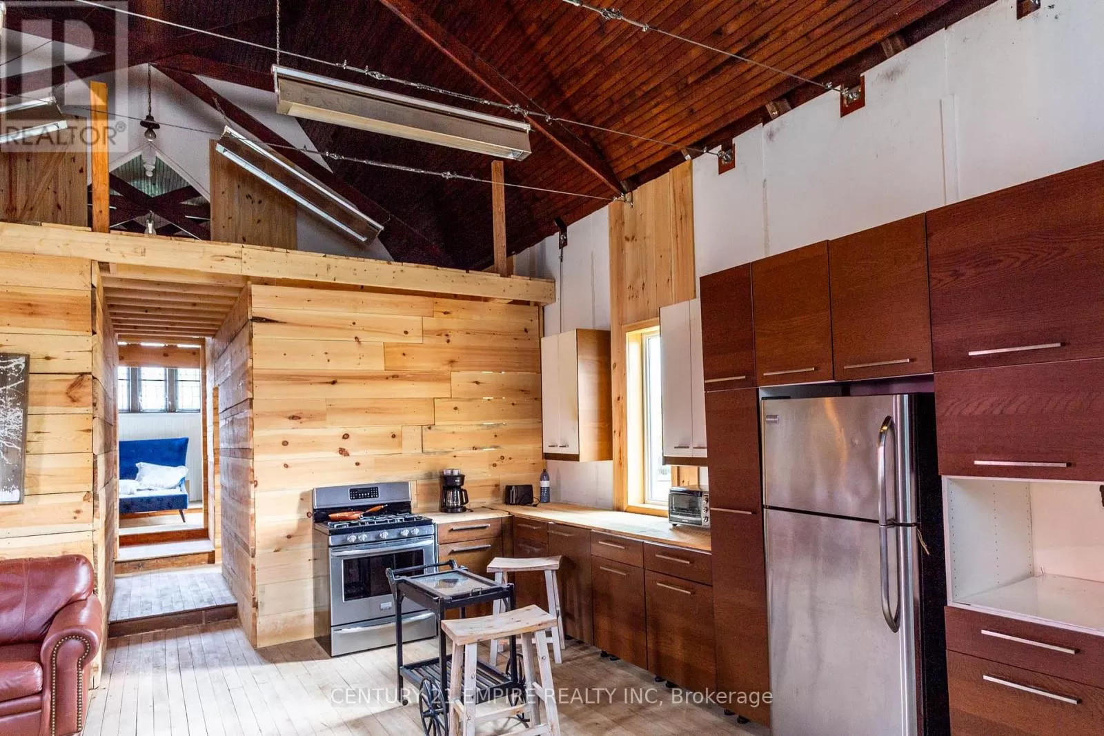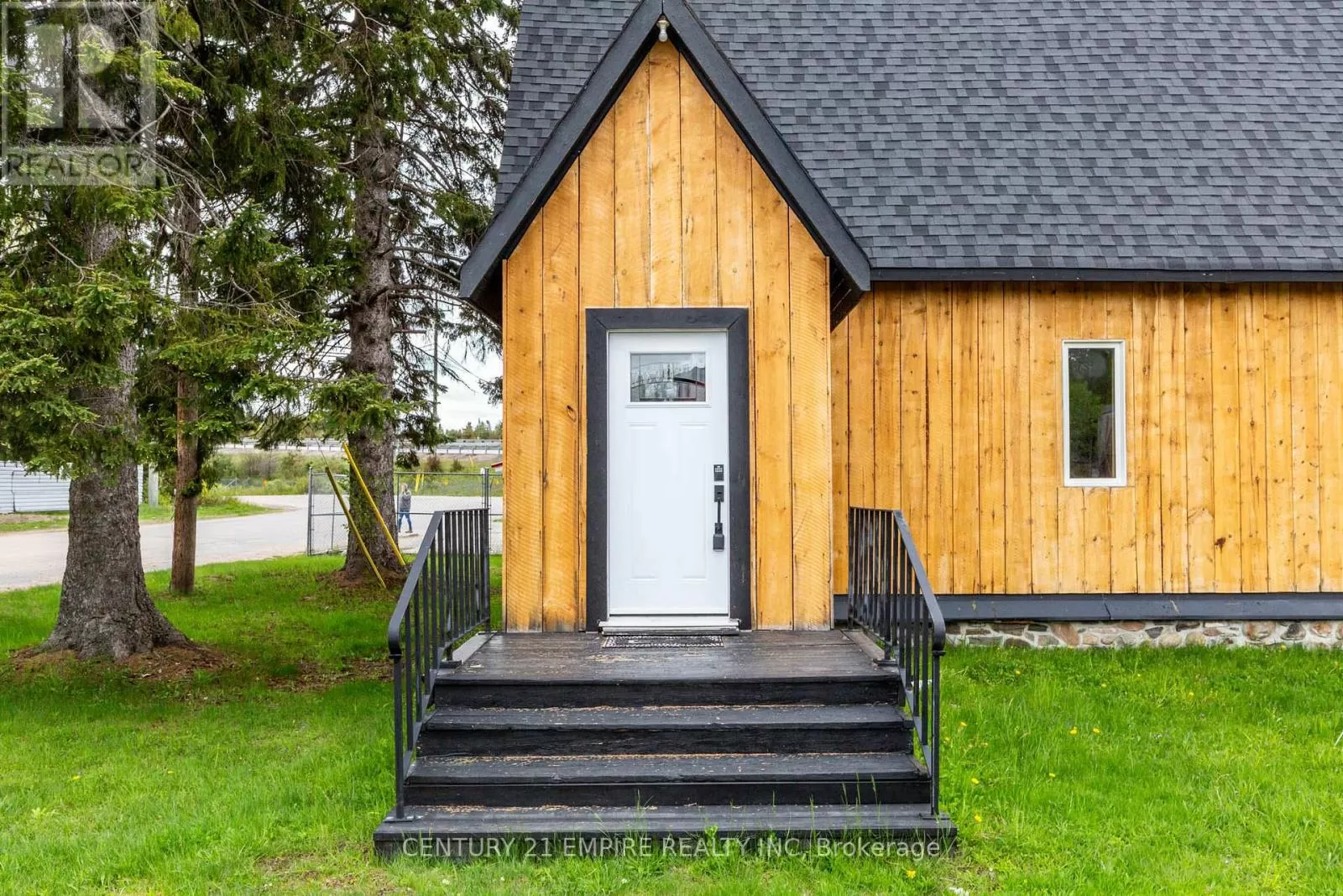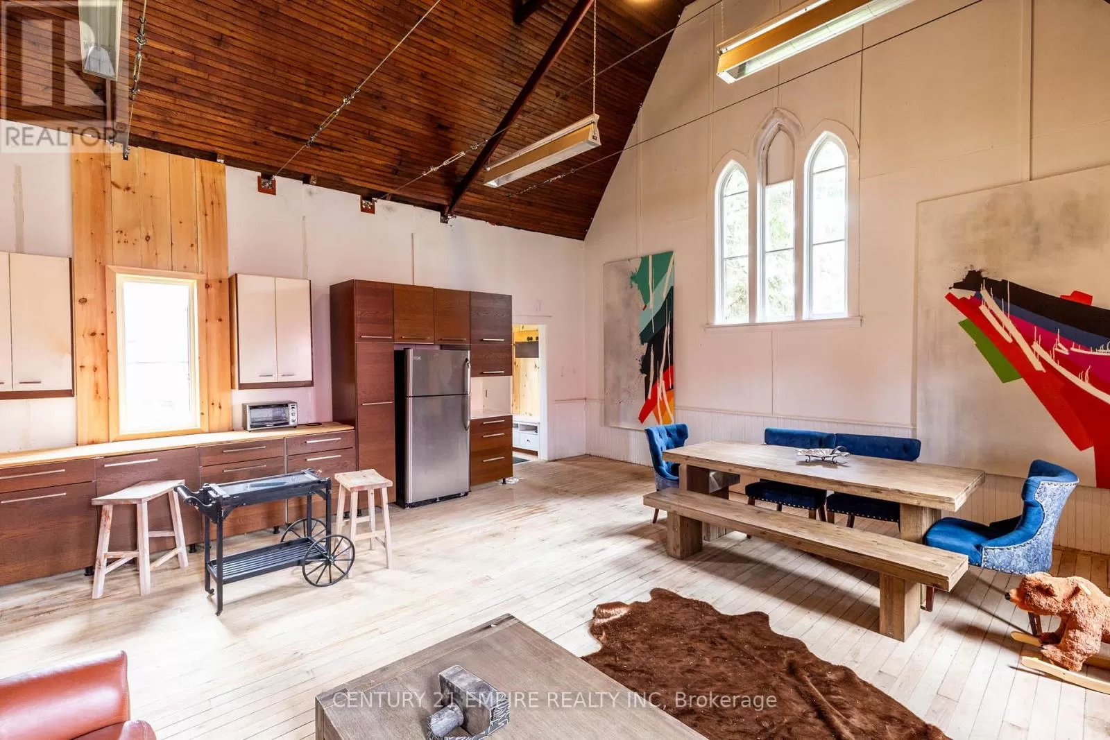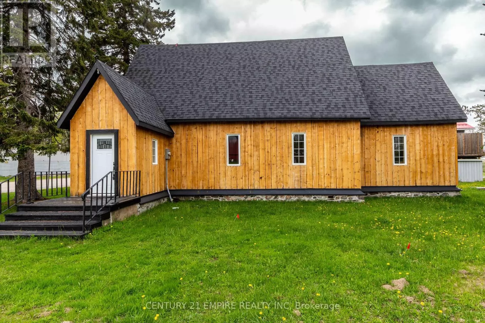Highway 11 to exit 235 then west to Main Street to Jessie Street Step into a world of opportunity with this remarkable property a former church ready to be transformed into a truly exceptional residence or creative retreat. Brimming with character and architectural beauty, this one-of-a-kind space features towering vaulted ceilings, vintage stained glass windows, and an open layout that invites your creativity. Much of the heavy lifting has already been done with several renovations completed, including the addition of charming wood siding. The expansive interior layout allows for a potential 3-bedroom, 1-bathroom design, with room to incorporate a spacious kitchen and inviting living areas. A former storage space is ideally sized for a primary bathroom, and an upper loft area offers additional square footage that could be finished for more bedrooms, an office, or a cozy lounge. This property is an excellent fit for investors and visionaries looking to blend historical character with modern comfort. With no rezoning needed to install a kitchen or bathroom (permits required through the township and septic authority), you can bring your plans to life with fewer regulatory barriers. If converting to full-time residential use is part of your vision, a zoning change from Institutional would be required. Bonus: A natural gas line is already available at the lot line and can be connected, offering flexibility for heating and appliances. Located just minutes from Highway 11, this location offers both convenience and peaceful surroundings. Whether you're creating a unique home, a studio space, or an income-generating property, the potential here is unmatched. Own a rare piece of history and shape its future. Book your showing today. (id:27476)