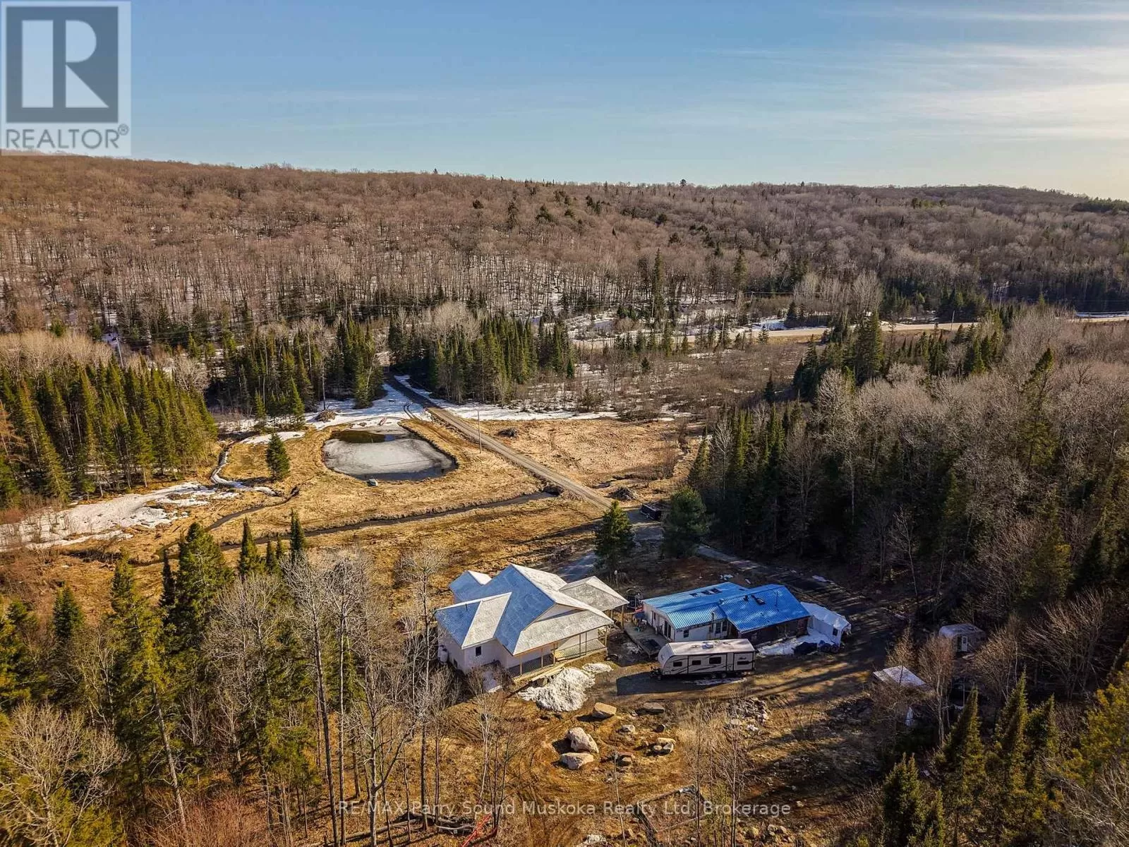 Cross Streets: Emsdale Rd and 518 W. ** Directions: Hwy 11 to Fern Glen Rd to Hwy 518 W. Potential for Seller to hold a partial Mortgage.Living the cottage country dream is at your fingertips. Just press that button to book a showing!No HST.A beautiful 21 acres of privacy in Emsdale,just a short distance to Huntsville/Muskoka.ATV trails throughout.Located on a bus route for schools & on a year-round municipal maintained road.Not only is there a fabulous view of your own property,but also looking out to an abundance of tree tops along the skyline.The sunset filled skies w/the west exposure & the fall colours will be something like you've never seen/experienced before.Over 3000 ft. of a new build home to be completed by the new owner, you, w/your preferred finishes.Floor plans are available for the three bedroom, two bathroom, roughed in home w/full basement & plans for a screened in porch.Vaulted ceilings & large windows,bringing in plenty of light w/ a picturesque view. Looking out to a families playground of property & large pond deep enough to go for a swim!Propane forced air,drilled well & heat pump.Wired for speakers n cat5 for video surveillance.While you finish building your new home there is already a smaller existing home in as is condition.Create trails & wonderful memories for you, your family & friends on this large piece of property.Or access nearby trails for snowmobiling & off roading.Area lakes to access, including, Lake Vernon,Fairy Lake, Peninsula Lake & Mary Lake.Additionally,Huntsville offers small boutique shops,big box store shopping, trails,lake access,beach,marina,golf club,downhill skiing/ski club,schools,maple farm,parks museum,festivals,torch lit skating,riding ranch,sledding,wildlife reserve,tubing hills,skating rink,Arrowhead Provincial Park,restaurants,galleries,spas,summer camps,hockey arena,public swimming pool,theatre,,Hospital.This property & location will not disappoint.Make the move & surround yourself w/ the peaceful atmosphere & wonders of Mother Nature.The beginning & end of your days will have a magical feeling. (id:27476)