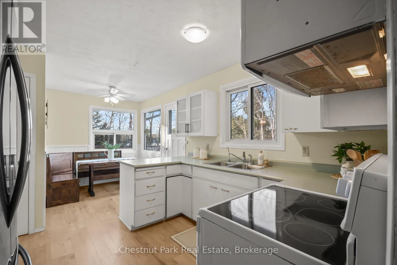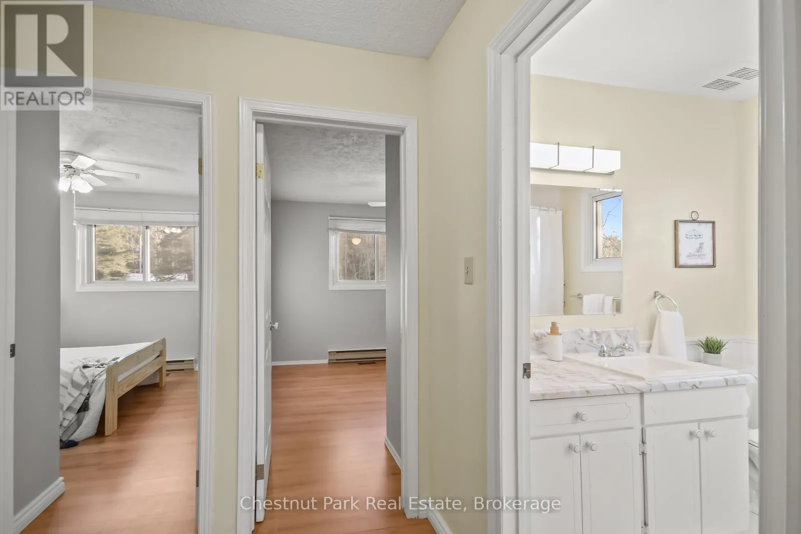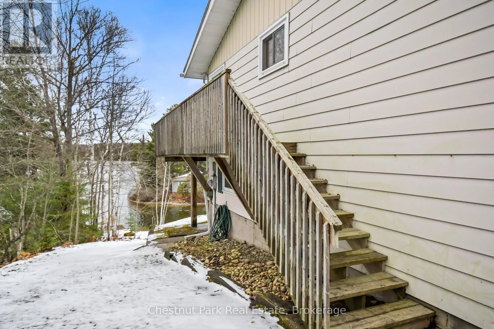 Cross Streets: Bay Lake Road. ** Directions: Hwy 592 to Bay Lake Road, left at Churchill Gardens Road to sign on property. This YEAR ROUND home/cottage is located on beautiful CLEAR LAKE in Perry Township. Clear Lake is well known and favoured for its' CRYSTAL CLEAR DEEP WATER with HARD PACKED SAND BOTTOM, and its' location ... 15 MINUTES TO HUNTSVILLE with Hwy 11 access near by. The property is located on a MUNICIPAL YEAR ROUND ROAD, the lake is a popular location for sledders with the #95 trail two minutes down the road and staked lake trail. The Doggy park has also become very popular and is a 2 minute walk away. High speed internet is available here with fibre internet coming very soon. There is approximately 2400 sq. ft. of finished living space in this raised bungalow with 6 bedrooms, 3 bathrooms with Muskoka room and full walk-out basement. The dry boathouse at shore line is ideal storage for all your water toys with paddle boat and canoe included. Shoreline water entry to hard packed clean and sandy bottom, oh la la! Great lake view between Bobby Island & Askin Island, ideal for young children to swim and at play. 1.5 insulated detached garage to store your toys with large shed for more storage. Tucked in from the Road with more than ample parking spaces for guests. The property is being sold as an Estate Sale. The structure has good bones and needs updating, bring your plans to update this gem, the lake and location is ideal! This one won't last long, it is rare to find a year round waterfront property on this popular lake. (id:27476)