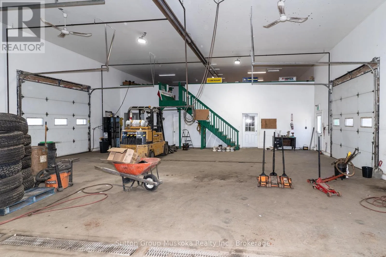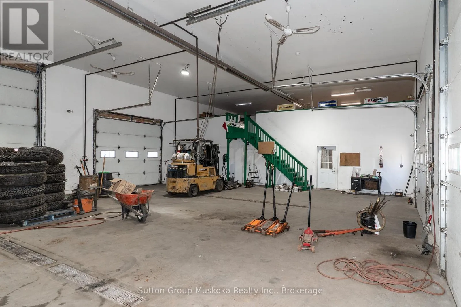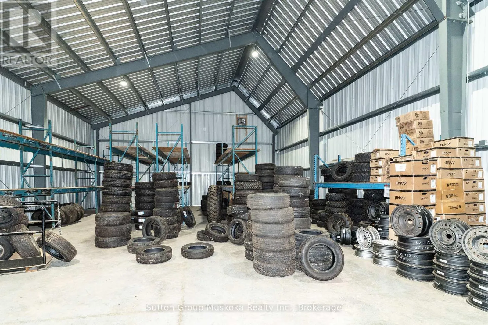 Cross Streets: 518 and Emsdale Road. ** Directions: Hwy 11 to Emsdale Road. What a great opportunity to bring your business idea here . This amazing package includes a 3.5 acre lot with very quick highway access, great visibility and offers enough parking for dozens of large trucks , boats etc. The buildings are less than 10 years old and look like new ! Service building was previously used for a Tire business which allowed large trucks / transports to pull in for service. This service building features a large open reception area , kitchen with employee washrooms, handicapped washroom and a mezzanine storage area. This building also features a rear door that gives easy access to the secondary metal clad , steel storage building. This property also features a dry hydrant with 2 20,000 reservoir tanks for fire protection. The property also has rear access behind to a cleared area for even more storage space and is not visible from the road. So many different things could be done here with Commercial General zoning. If you know Commercial lot prices + new construction costs of 4800 square feet, you will appreciate the opportunity to turn the key and start up your business in this solid build. This is a land and building ( s ) sale only. (id:27476)