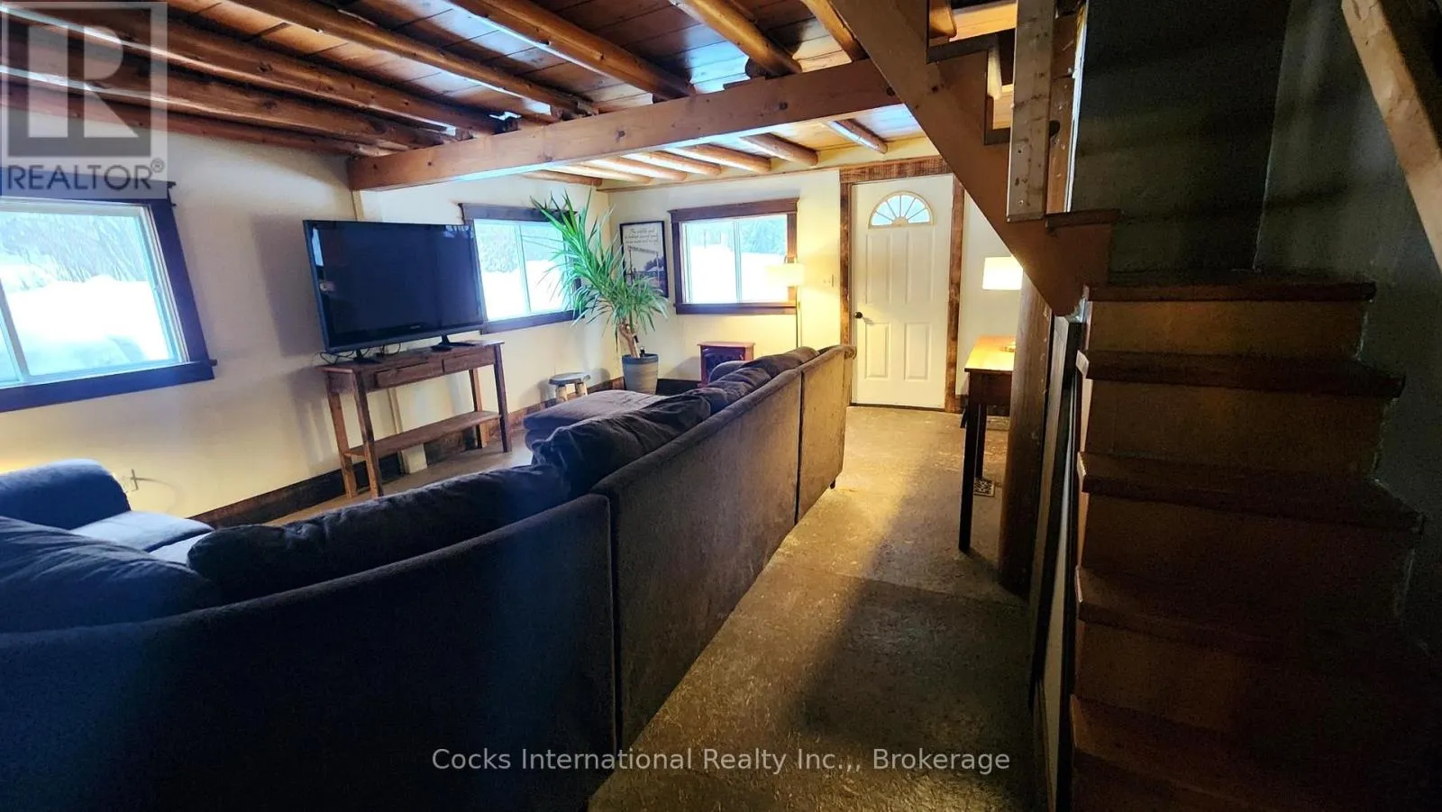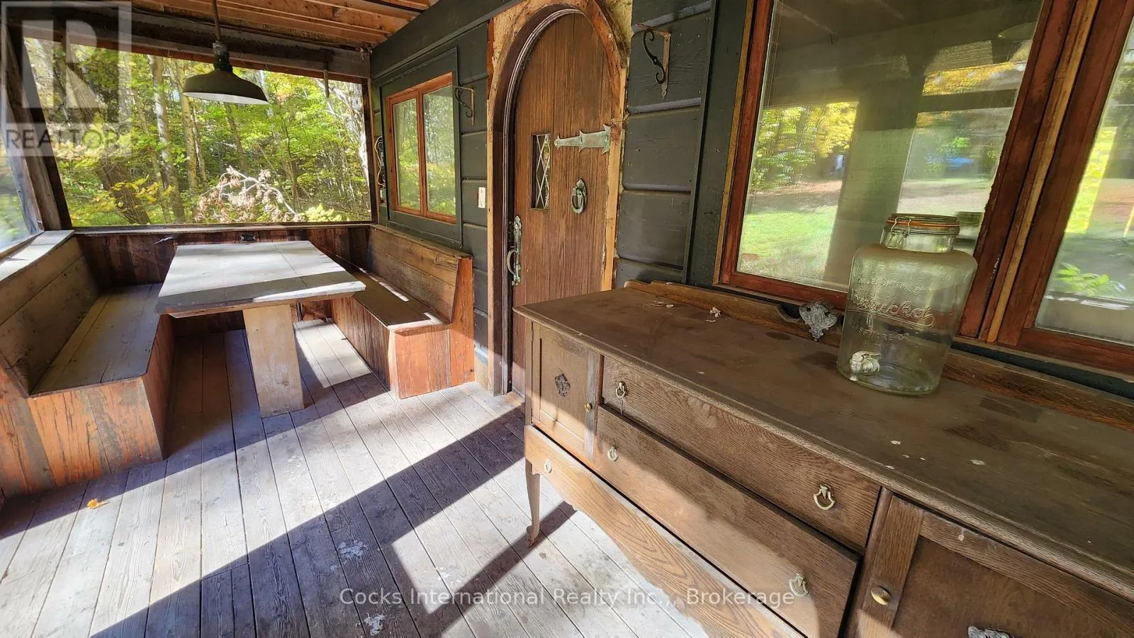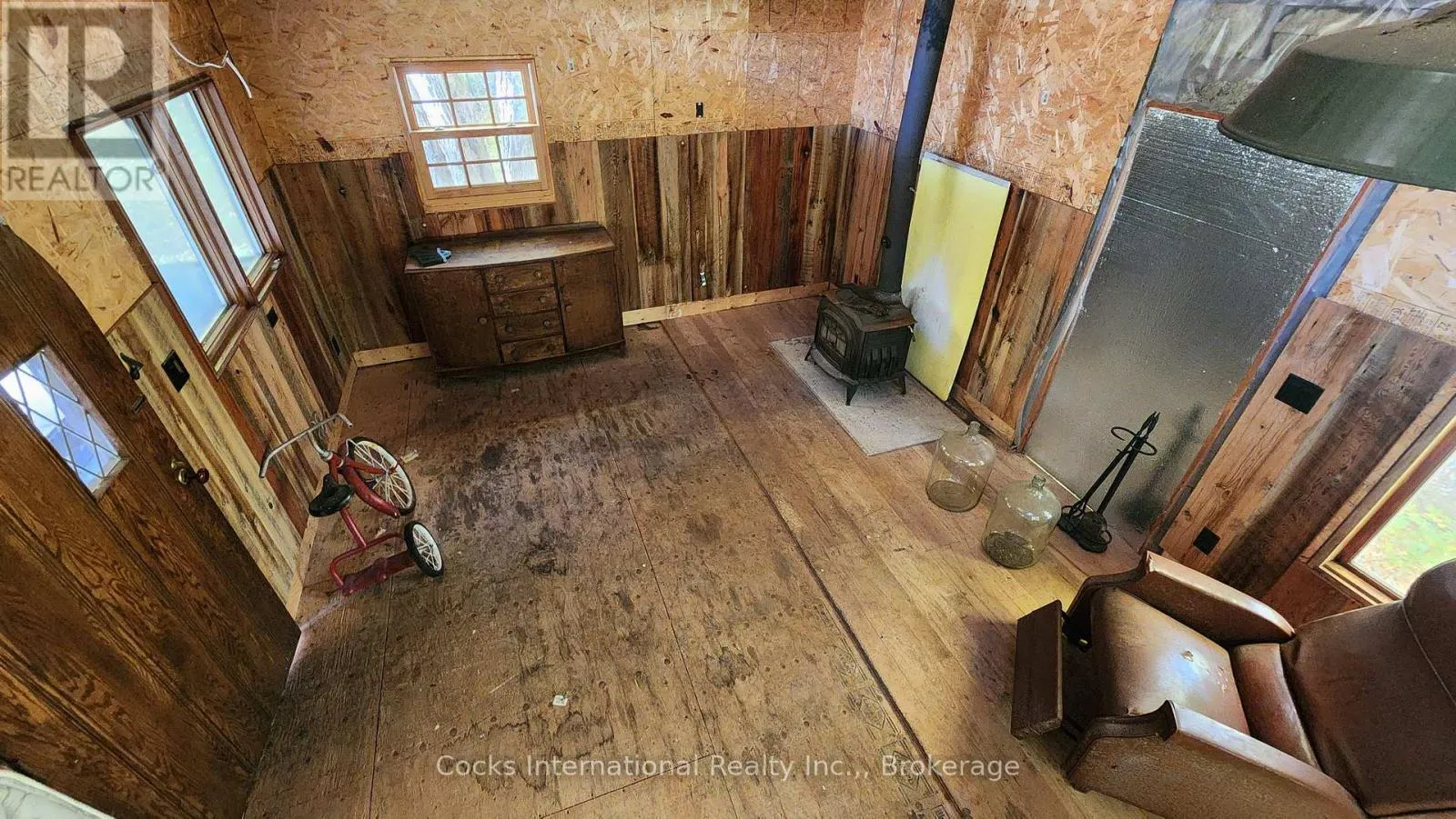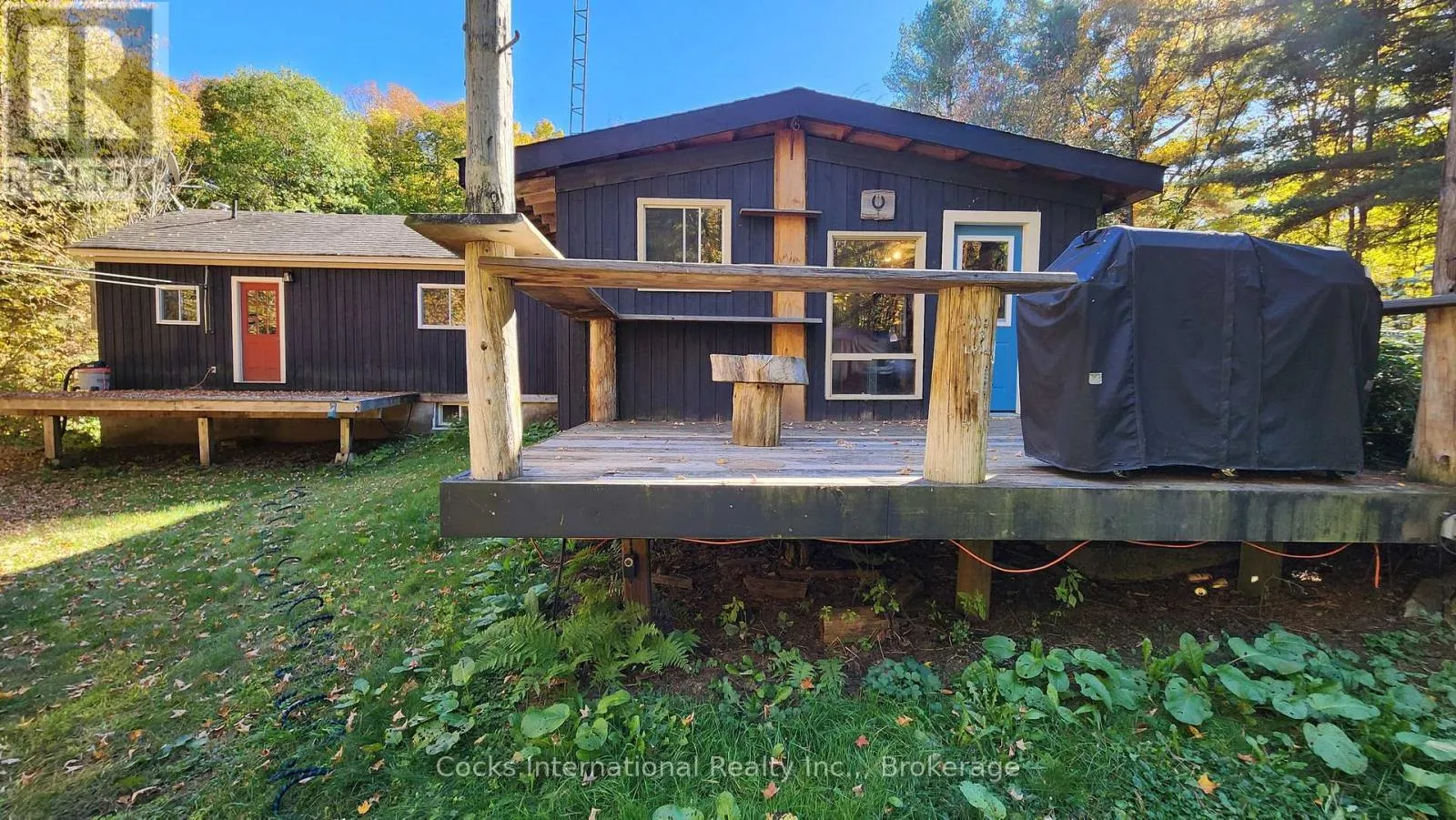 Cross Streets: Savage Settlement Rd & Locke Rd. ** Directions: HWY 11 TO 592 EXIT TO SAVAGE SETTLEMENT TO LOCKE'S RD. 205 Locke's Road, Novar, offers a rare opportunity to own a peaceful country property in the desirable Savage Settlement area of Perry Township. Set on 7.59 acres with frontage on both Locke's Road and Lakeview Drive, the land provides a blend of open space, wooded privacy, and mature apple trees that enhance the natural setting. The home features 2 bedrooms plus a loft, 1 bathroom, and a practical layout with a partial full-height basement and crawl space. The walkout basement includes laundry facilities and workshop space, offering added functionality and storage. A standout feature of the property is the detached bunkie, approximately 640 sq ft including loft, complete with a wood stove (not WETT certified), making it ideal for guests, creative space, or seasonal use. Additional storage buildings and a rustic privy add to the property's rural character. Full of charm and potential, this property is well-suited for those looking to personalize a year-round residence or enjoy a private country retreat. Conveniently located just minutes from Mirage Lake and Fish Lake, and a short drive to Novar and Huntsville amenities, this is a solid opportunity to secure acreage in a sought-after rural setting. Book your showing today! (id:27476)