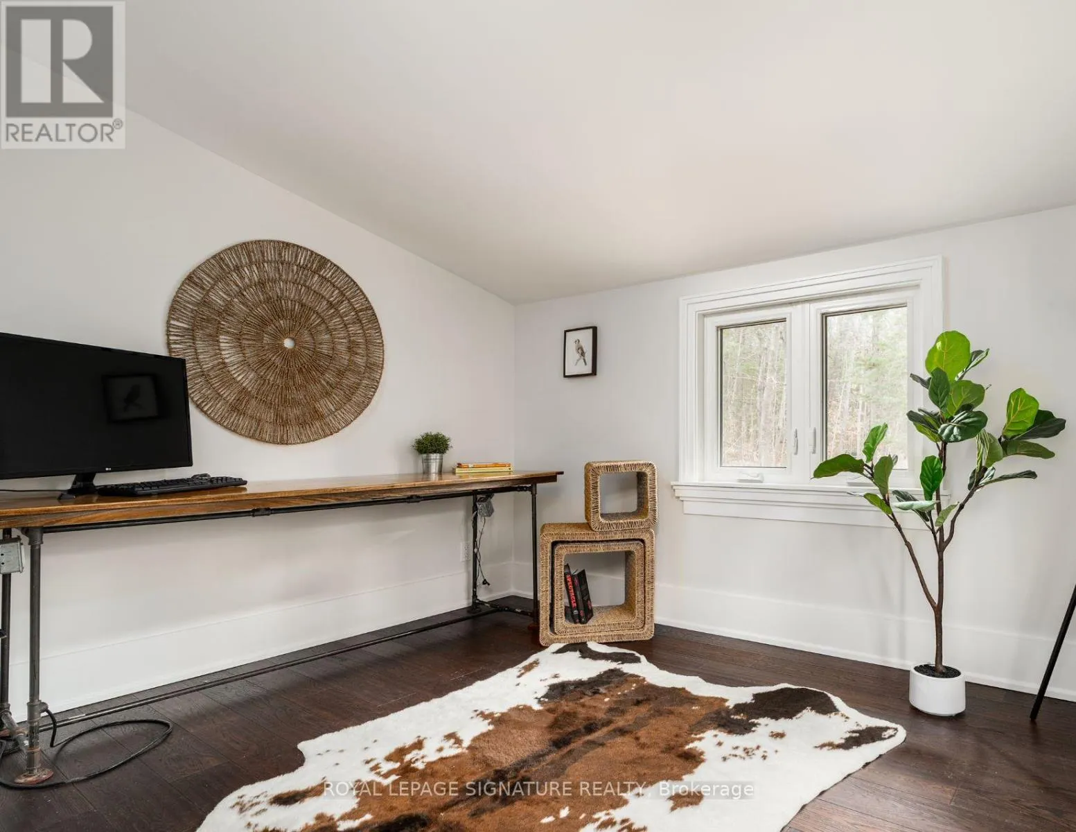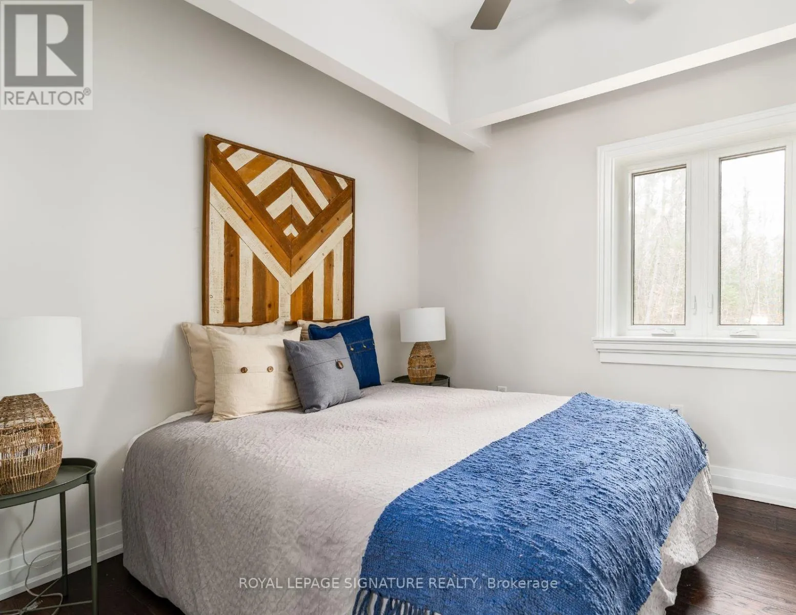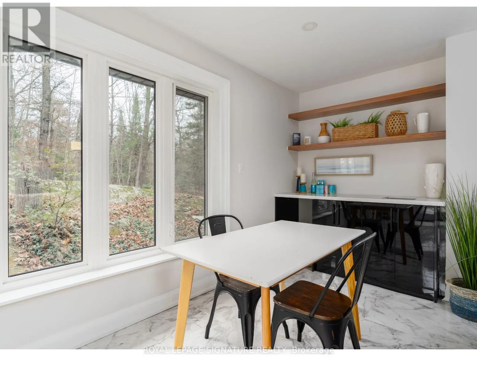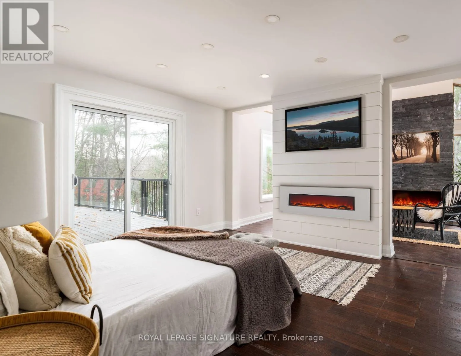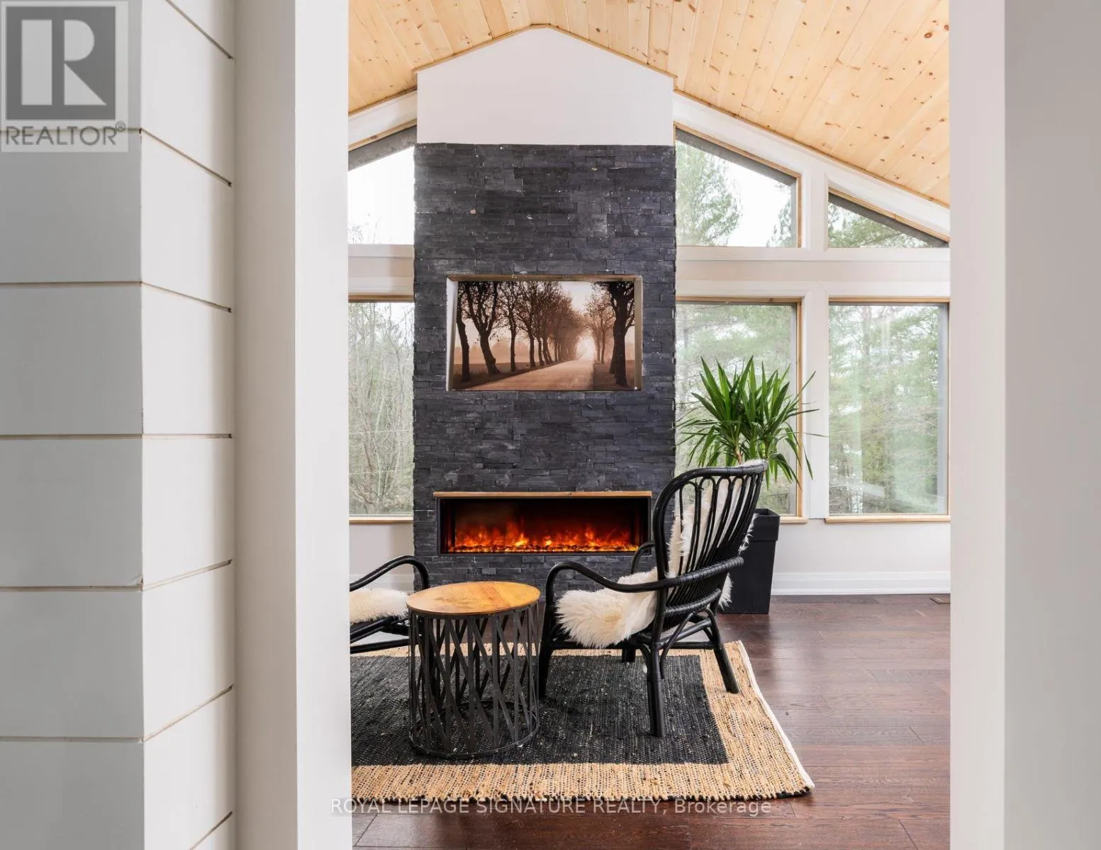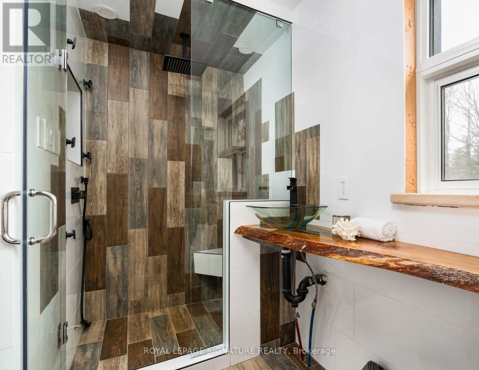 Long Lake Rd & Boundary Rd Escape to this newly renovated, open-concept 4 season home, nestled on a majestic 0.95-acre treed lot overlooking Langford Lake. This turn-key 4-season home perfectly blends modern luxury with rustic cottage charm. The heart of the home features a wrap around deck overlooking the lake and gorgeous landscape, a gourmet kitchen with built-in appliances, a breakfast bar, and a layout designed for entertaining. The main floor flows seamlessly into spacious living areas with high ceilings and large windows that frame peaceful forest views. The home offers a flexible layout with 4+1 bedrooms and 2 bathrooms, including a primary suite with an ensuite bath and direct walk-out access to the deck. Multi-tiered wrap-around decks expand your living space outdoors, offering the perfect setting for summer BBQs or morning coffee while overlooking the private grounds. Just steps away, enjoy your own municipally permitted private dock and sandy waterfront access on beautiful Langford Lake-perfect for swimming, boating, and fishing without the high waterfront taxes. The property also features a large detached 2-car garage/workshop, wood shed, and garden house for ample storage and loads of possibilities for a multi-generational compound in the heart of the North. Currently operating as a successful Airbnb with strong income potential, this is an ideal investment or family getaway. (id:27476)