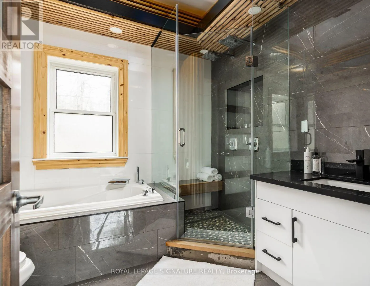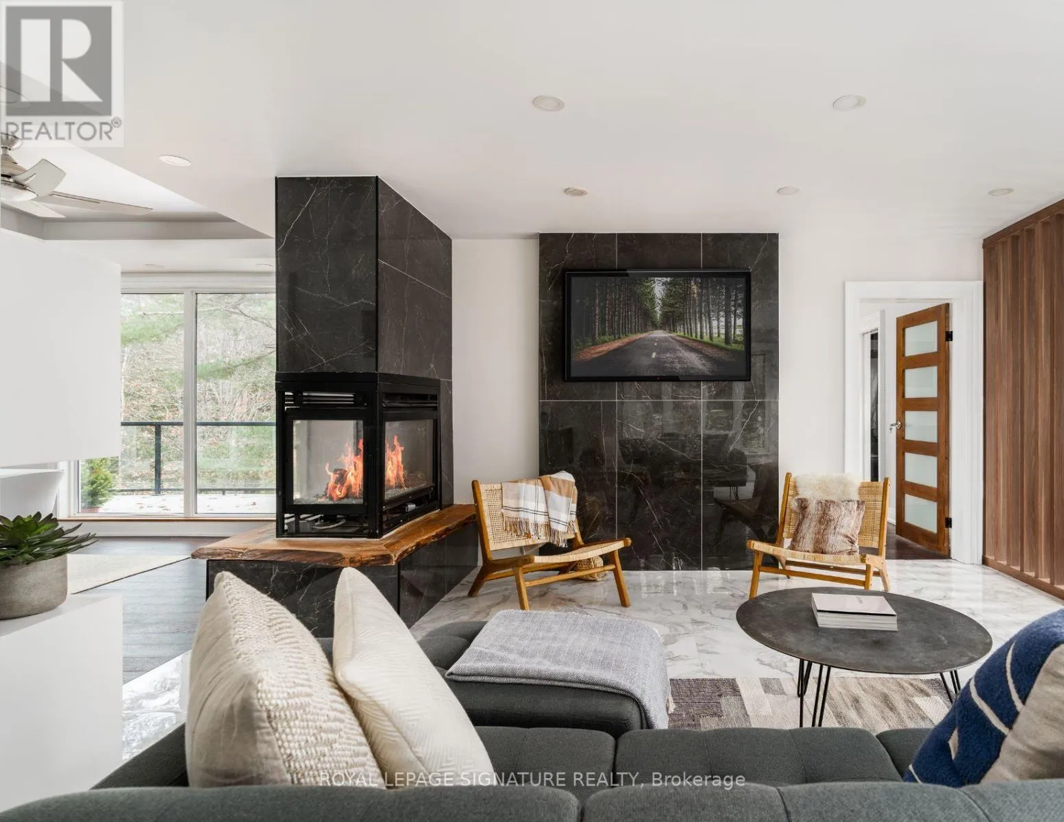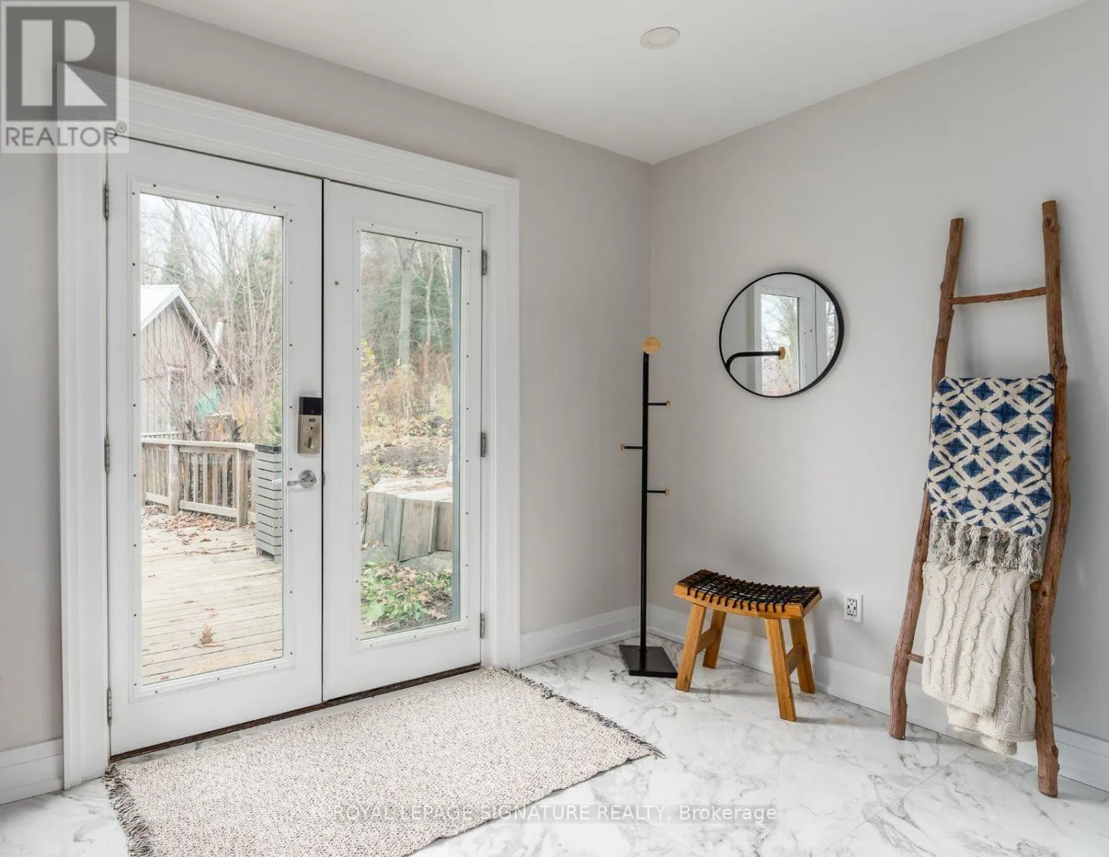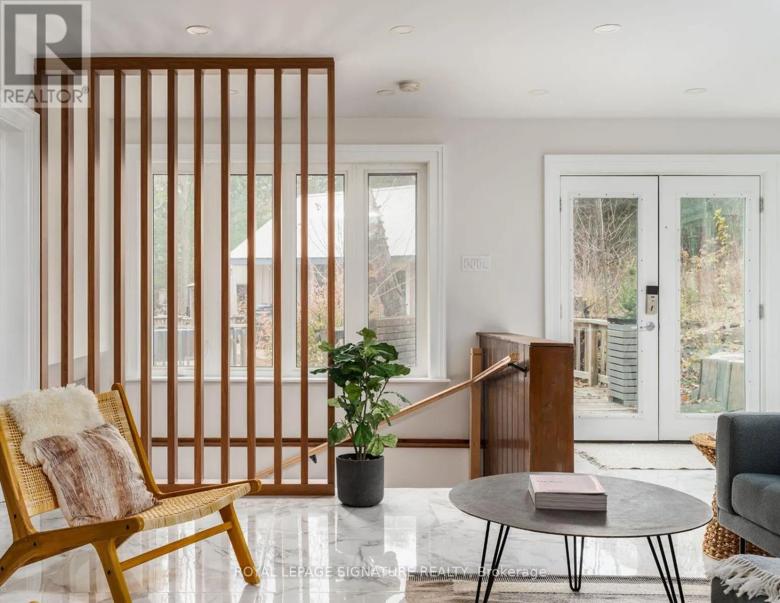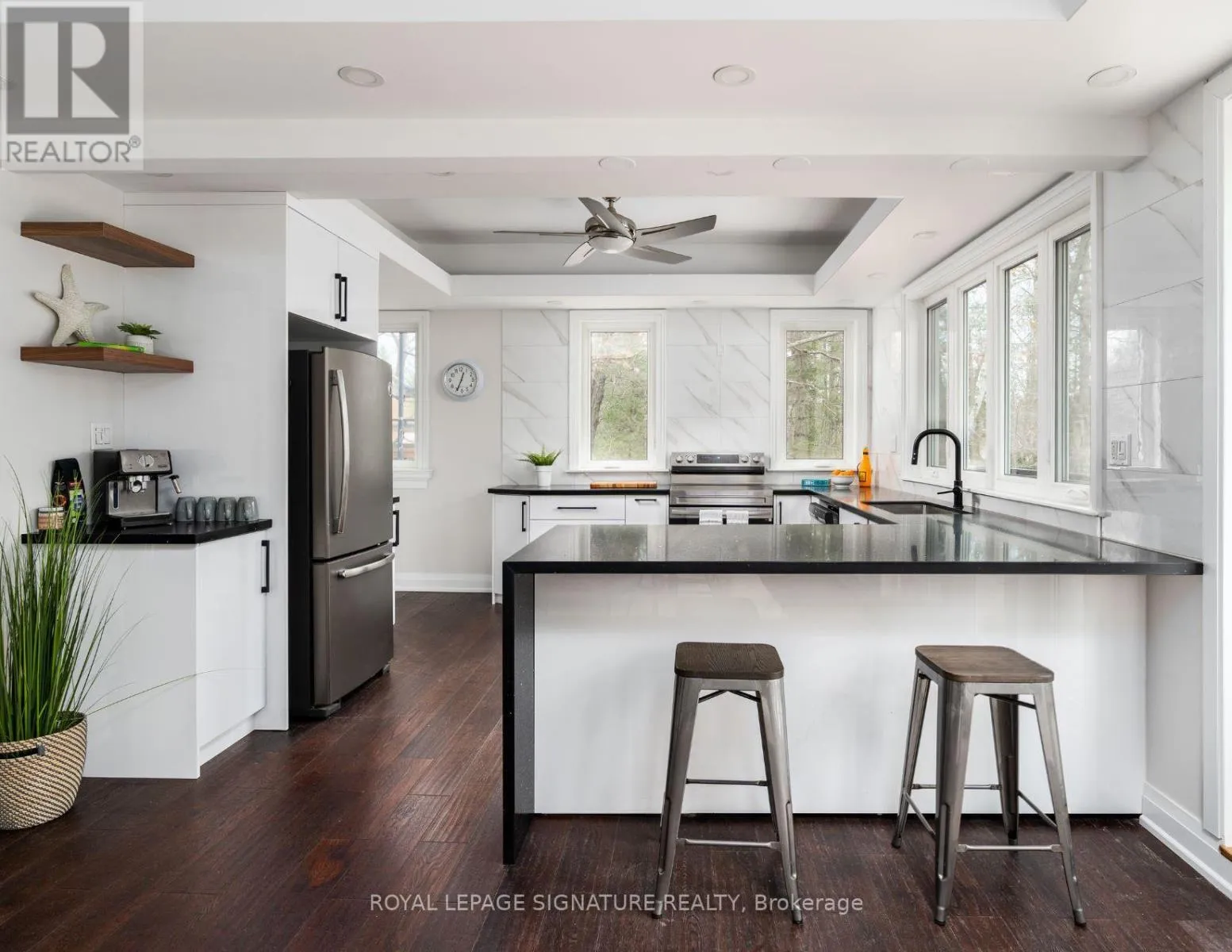 Long Lake Rd & Boundary Rd Escape to this newly renovated, open-concept 4 season home, nestled on a majestic 0.95-acre treed lot overlooking Langford Lake. This turn-key 4-season home perfectly blends modern luxury with rustic cottage charm. The heart of the home features a wrap around deck overlooking the lake and gorgeous landscape, a gourmet kitchen with built-in appliances, a breakfast bar, and a layout designed for entertaining. The main floor flows seamlessly into spacious living areas with high ceilings and large windows that frame peaceful forest views. The home offers a flexible layout with 4+1 bedrooms and 2 bathrooms, including a primary suite with an ensuite bath and direct walk-out access to the deck. Multi-tiered wrap-around decks expand your living space outdoors, offering the perfect setting for summer BBQs or morning coffee while overlooking the private grounds. Just steps away, enjoy your own municipally permitted private dock and sandy waterfront access on beautiful Langford Lake-perfect for swimming, boating, and fishing without the high waterfront taxes. The property also features a large detached 2-car garage/workshop, wood shed, and garden house for ample storage and loads of possibilities for a multi-generational compound in the heart of the North. Currently operating as a successful Airbnb with strong income potential, this is an ideal investment or family getaway. (id:27476)