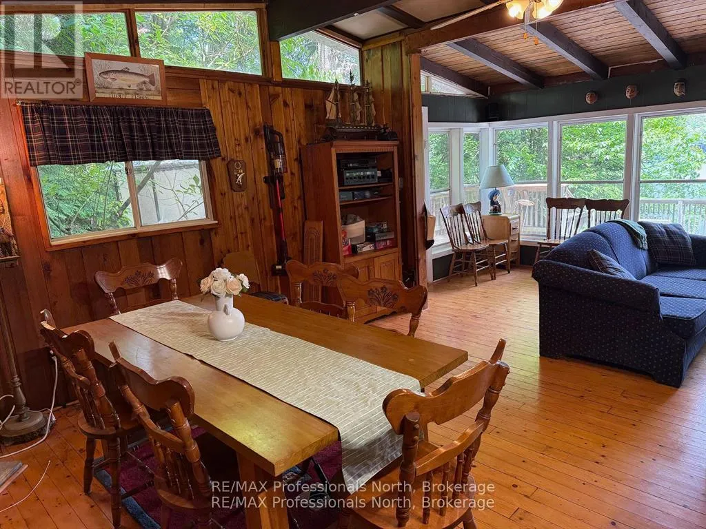 Cross Streets: Bay lake rd. ** Directions: Bay lake Rd. to Maple Dr. Escape to the way cottage life was meant to be. This charming 3-season, 3-bedroom cottage is tucked away on a beautifully private double lot. You cant see your neighbors in either direction. One lot features the well-maintained cottage and spacious lakefront deck, while the second is a wooded, vacant parcel offering potential for future development or enhanced privacy. Located on desirable Bay Lake, the property boasts a stunning shoreline with a shallow, sandy entry ideal for swimming, which quickly deepens for boat access. The expansive deck connects to the dock and includes a lakeside bunkie, the ultimate hangout for kids and guests. Situated on a 4-season municipal road and just a short drive to town, this is your opportunity to own a true Muskoka cottage in a sought-after location. Come take a look. You wont be disappointed. (id:27476)