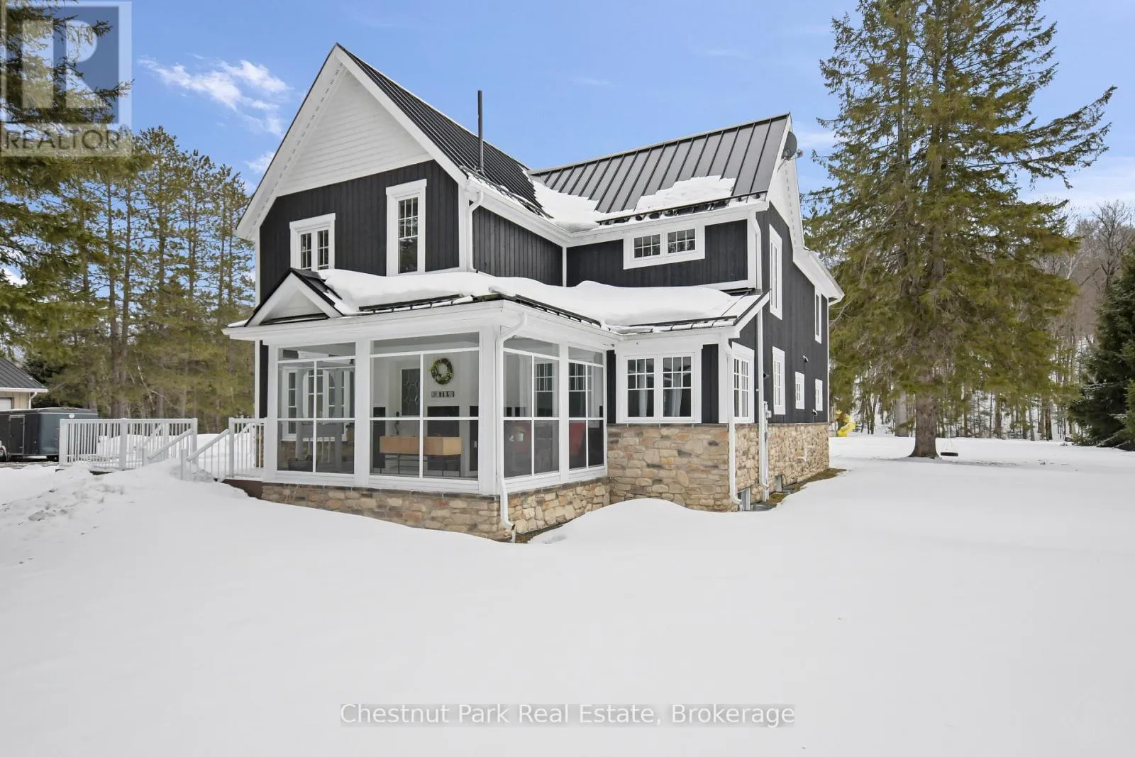Cross Streets: Kearney Road. ** Directions: Hwy 518 East to Kearney Road to 3 way stop, property on the south east side of intersection OR Hwy 592 to Bay Lake Road to Rochester Lake Road to Kearney Road to 3 way stop - property on south east side of intersection. FIRST TIME EVER ON THE MARKET! This beautifully designed 2-storey modern farmhouse features 3 spacious bedrooms and 2.5 baths, seamlessly blending timeless rustic charm with sophisticated contemporary style-perfectly tailored for today's modern lifestyle. Extensively renovated from floor to ceiling/roof in 2016 with new septic installed 3 years ago. Highlights include high end steel roofing, composite decking, gas hook-up for BBQ, three season enclosed porch, large mud room entry to the home, Games room with pool table, custom modern/county kitchen with island and quartz counter tops and much more... This is an ideal family home or a secondary residence in a prime location; 2 minutes to the Biggest little Town of Kearney to the General Store, LCBO, gas/propane, restaurants and shops and outdoor activities. The boat launch and the Lions Park is 2 minutes by car or ATV with beach, basketball net, gazebo and covered skating rink for winter fun. Kearney is a near north corridor to Algonquin Park hosting many outdoor events year round i.e. Dog Sled Races, Santa Claus Ski Show, Summer Regatta and the best fireworks in the Region!. The snowmobile OFSC "D" trail is at the end of the driveway and there is a toboggan hill at the rear side of this property! Kearney is also known for the its' ATV club and trails. The detached 70' x 30' garage with heated workshop will accommodate all the toys you can ever imagine owning with room to park your RV inside as well! Embrace all seasons with unforgettable outdoor activities all at your doorstep! New Cogeco fibre optic internet coming soon, cables are in at the road. Good cell service here and internet options. 25 minutes to Huntsville to all amenities. Please follow directions in listing, GPS mapping is not accurate. Property was recently severed, MPAC has not yet assessed, property taxes to be estimated for now. (id:27476)