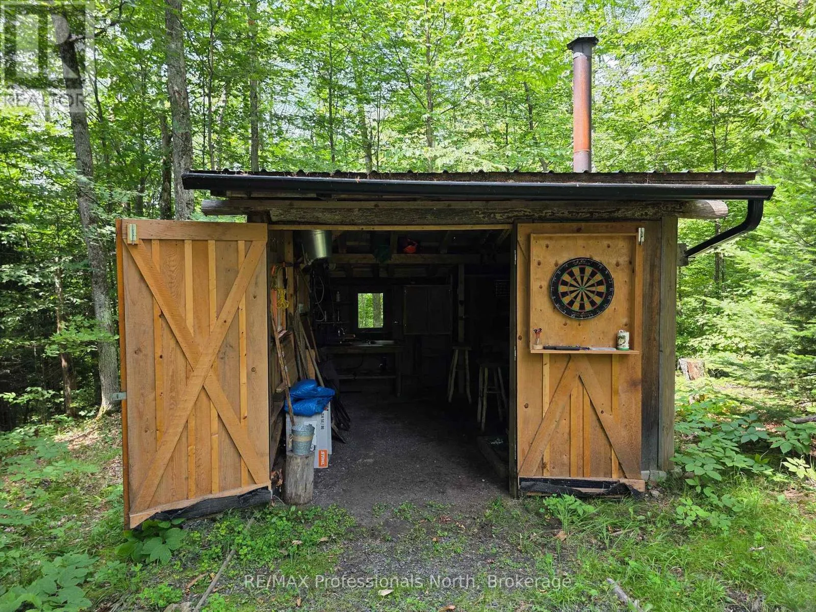 Cross Streets: Bay Lake Rd and North Bay Lake Rd. ** Directions: Hwy 592 to Bay Lake Rd, left on North Bay Lake Rd to property, gate on the left. A truly special property! This 72 acre parcel has a stream running from a small pond and borders onto another, larger pond at the rear. There are two cabins for living in - each meticulously built by professional carpenters. (Drawings and permits available). There is a large garage / workshop and another large garden shed and the frame of a portable garage shelter on a wooden base. Facilities and available with 2 outhouses, one of which is built to a very high standard and worth seeing! A building site has been cleared and plans are included for a house to be built on the lot, complete with a building permit. Enter the lot via a gated entrance and follow the driveway, which goes to the first, main cabin and then continues on to the second cabin. From there, a trail winds past the small pond and on towards the back of the property where there is a large pond and rock formation. The property has been carefully and lovingly improved and enjoyed for over a decade. (id:27476)
