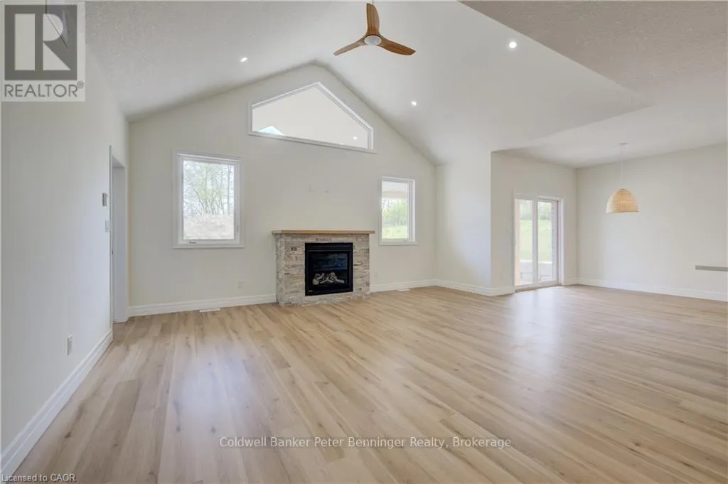 Cross Streets: Perth Hwy131. ** Directions: Main St Perth Rd 131 to Pugh St. In the time is takes you to get to Milverton you can't get across Kitchener! Its that quick a drive and its TIME TO MOVE IN! Where can you buy a large bungalow for well under 1 million these days?? In Charming Milverton that's where... Only 25 minute quick traffic free drive to KW and Guelph! This 1833.56 sq ft on the main floor beautifully crafted 2-bed, 2-bath bungalow offers the perfect blend of luxury and comfort. As you step inside, youll be greeted by the spacious, open-concept layout featuring soaring vaulted ceilings that create an airy, inviting atmosphere and large Foyer. The gourmet kitchen is designed for those who love to entertain, complete with sleek stone surfaces on the large, oversized kitchen island, ideal for preparing meals and gathering with loved ones. The living area is perfect for cosy nights with a fireplace that adds charm to the space and surrounded by large windows making that wall space a show stopper. The primary bedroom provides a peaceful retreat with ample space for relaxation and the luxury ensuite and walk-in closet offer an elevated living experience. From your spacious dining area step out thru your sliding doors onto the expansive covered composite deck which spans nearly the entire back of the house. Covered for year-round enjoyment, it overlooks your fully sodded yard and greenspace, creating a serene outdoor oasis. The thoughtfully designed basement offers endless possibilities, featuring an open-concept space that can easily be transformed into 2-3 additional bedrooms, with a massive Rec room, is already roughed in for a 3rd bath, or add a home office or in-law suite. With its separate walk up entrance to the garage, this space offers privacy and versatility for your family's needs not to mention fantastic development opportunity for multi family living. This exceptional home is crafted with top-tier materials and upgrades are standard, ensuring quality and longevity. (id:27476)