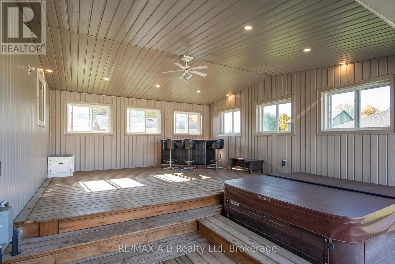 Cross Streets: Andrew St. & Burns St. ** Directions: From Hwy. 7 go south on Road 107, left on Andrew St. & Right on Burns. Welcome to this beautiful, 3-bedroom bungalow situated on Burns Street in the charming village of Shakespeare. This home seamlessly combines comfort and functionality, offering an irresistible package for families and individuals alike. The main floor boasts a spacious, open-concept layout with abundant natural light streaming into every room. Each of the three generously sized bedrooms provides ample space, making them ideal for family, guests, or even a home office. Step directly from the kitchen to your private entertainment area, enclosed on three sides to protect you from the elements. This inviting space is complete with a bar and a hot tub, making it perfect for hosting lively summer gatherings or enjoying a peaceful winter soak. Designed for year-round enjoyment, this outdoor area elevates your entertaining possibilities. The fully-finished basement extends your living space and features a second gas fireplace, creating a cozy recreation or media lounge. There is also a separate area ideally suited for a home gym. Additional conveniences include a laundry area, a three-piece bathroom, and a walk-up to the 'man cave'. This home features every enthusiast's ultimate workshop. The garage / shop area is a dream space for any hobbyist, equipped with heated floors for year-round comfort, a full size garage door at the front and roll-up door providing access to the rear yard. Whether you enjoy tinkering, building, or simply unwinding, this versatile area is designed for you. A dedicated "men's room" with a sink and urinal adds an extra layer of convenience. This property is more than just a house - it is a lifestyle opportunity. Nestled in a peaceful, friendly community with convenient access to Stratford, Kitchener-Waterloo, and the surrounding areas. Discover a home that meets all your needs and invites you to experience the best of comfortable village living. (id:27476)