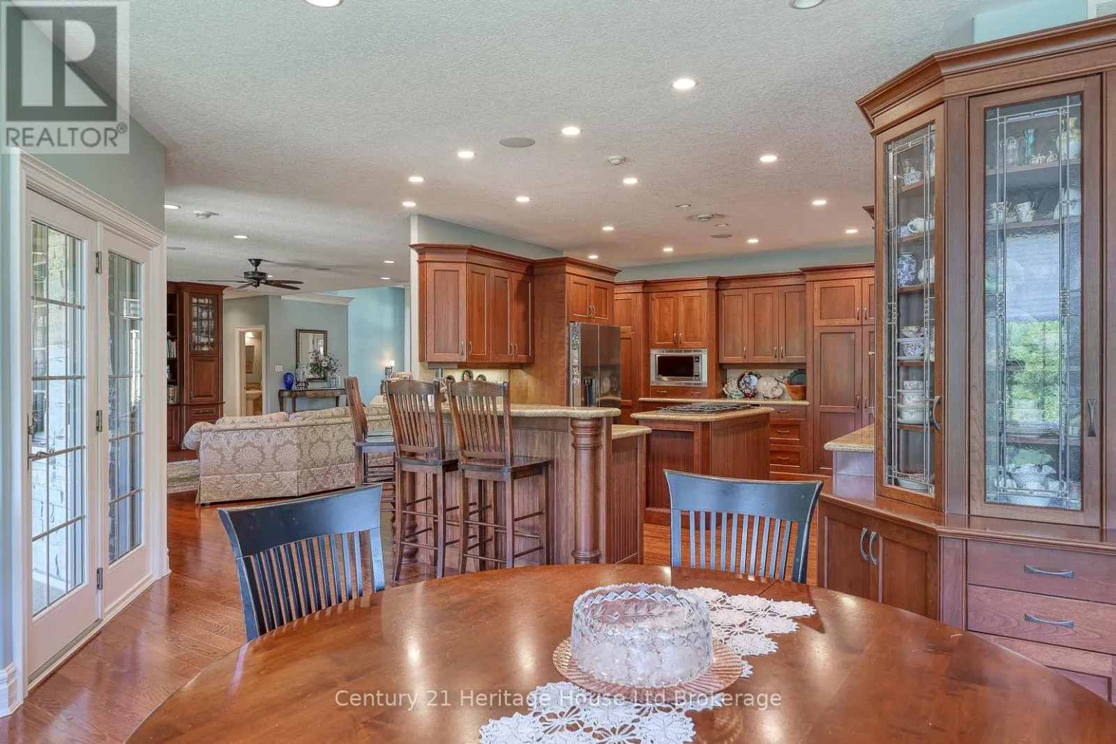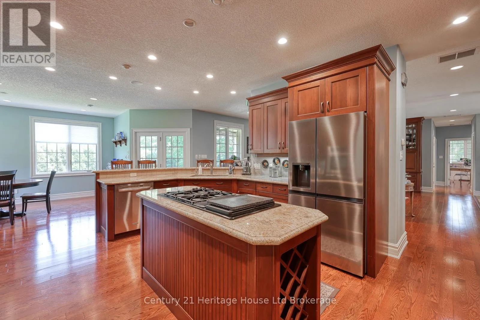 Cross Streets: County Rd Line 20. ** Directions: From Woodstock North Hwy 6th through Embro. Turn into County Rd 113, Property on the right. Welcome to Your Dream Home This exquisite detached stone home is nestled in a peaceful setting on 2.6 acres, this remarkable five-bedroom, four-bathroom residence seamlessly blends modern luxury with timeless style. With over 5000 square feet of impeccably designed living space, every detail has been thoughtfully curated to offer elegance, functionality, and warmthperfect for both relaxing & entertaining. Inside, soaring ceilings, gleaming hardwood floors, and a wide, light-filled foyer welcome you into a space that feels inviting. A formal dining room framed by oversized windows sets the stage and is perfect for holiday gatherings. The chefs kitchen takes center stagefeaturing SS appliances, custom cabinetry, luxurious granite countertops, and a generous center island. Open to the kitchen is a spacious living room anchored by a custom fireplace and filled with natural light, making it the perfect space to relax or host. A built-in wet bar enhances the space. Step outside to your private backyard retreat, complete with a large three-season patioperfect for morning coffee or peaceful evenings. The main floor also features a spacious guest suite with direct access to a full bath, plus an additional bedroom or office. The primary suite offers a tranquil escape, featuring large windows, walk-out access to a deck, and a spa-inspired ensuite with double sinks, a walk-in shower, private water closet, and a large walk-in closet. The homes thoughtful layout continues with a full-sized finished basement that truly expands the living space. This lower-level retreat includes a fireplace, a large bar, two generously sized bedrooms with a Jack-and-Jill bathroom, and walk-out access. Storage is abundant, and a separate walk-up to garage adds even more convenience. The attached triple-car garage includes interior access to the home and laundry room. Need more space? An additional garage offers upper-level living quarters with a bathroom. Too much to list come see it for yourself! (id:27476)