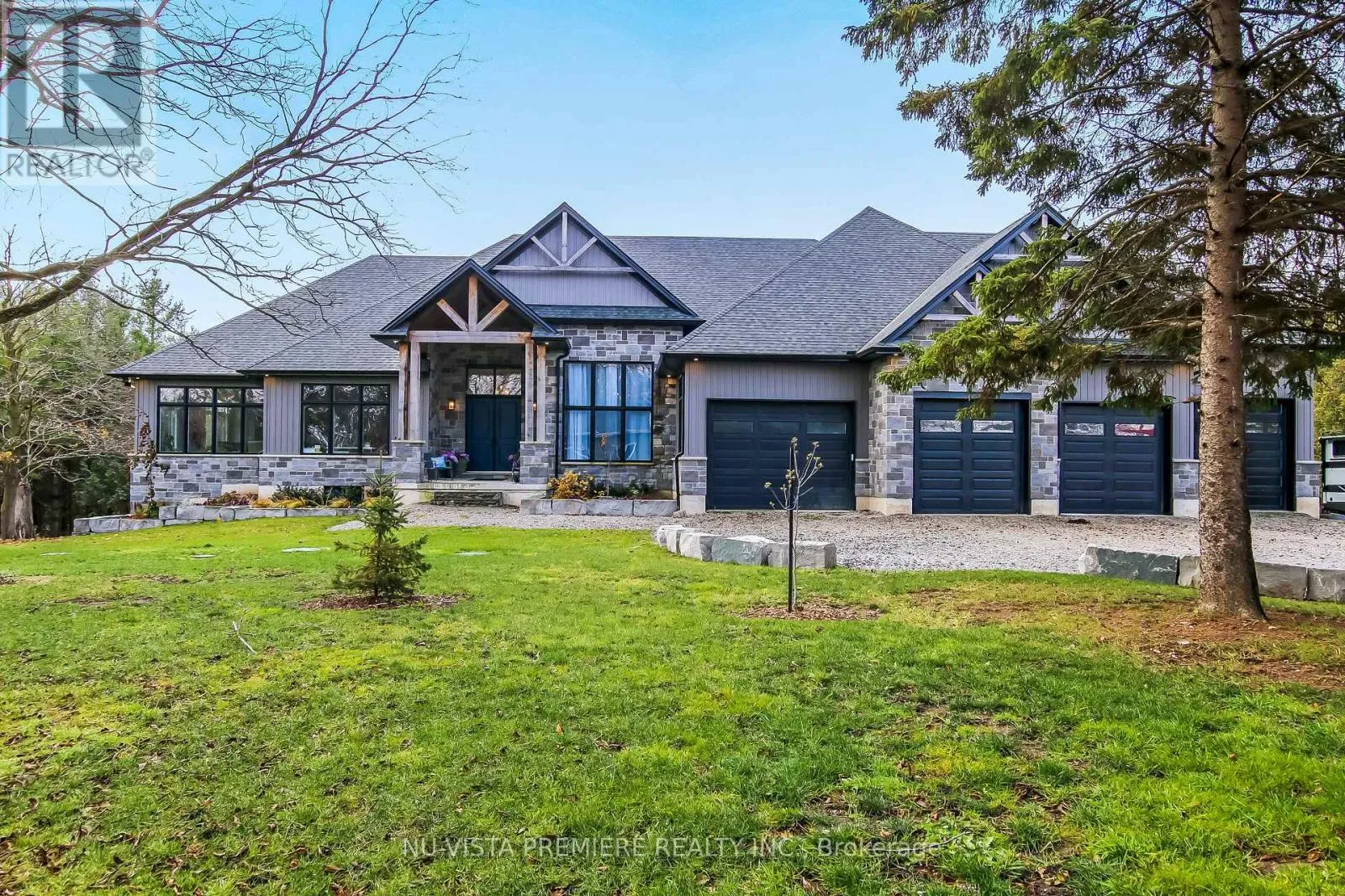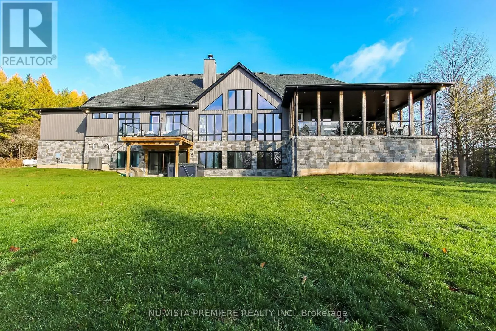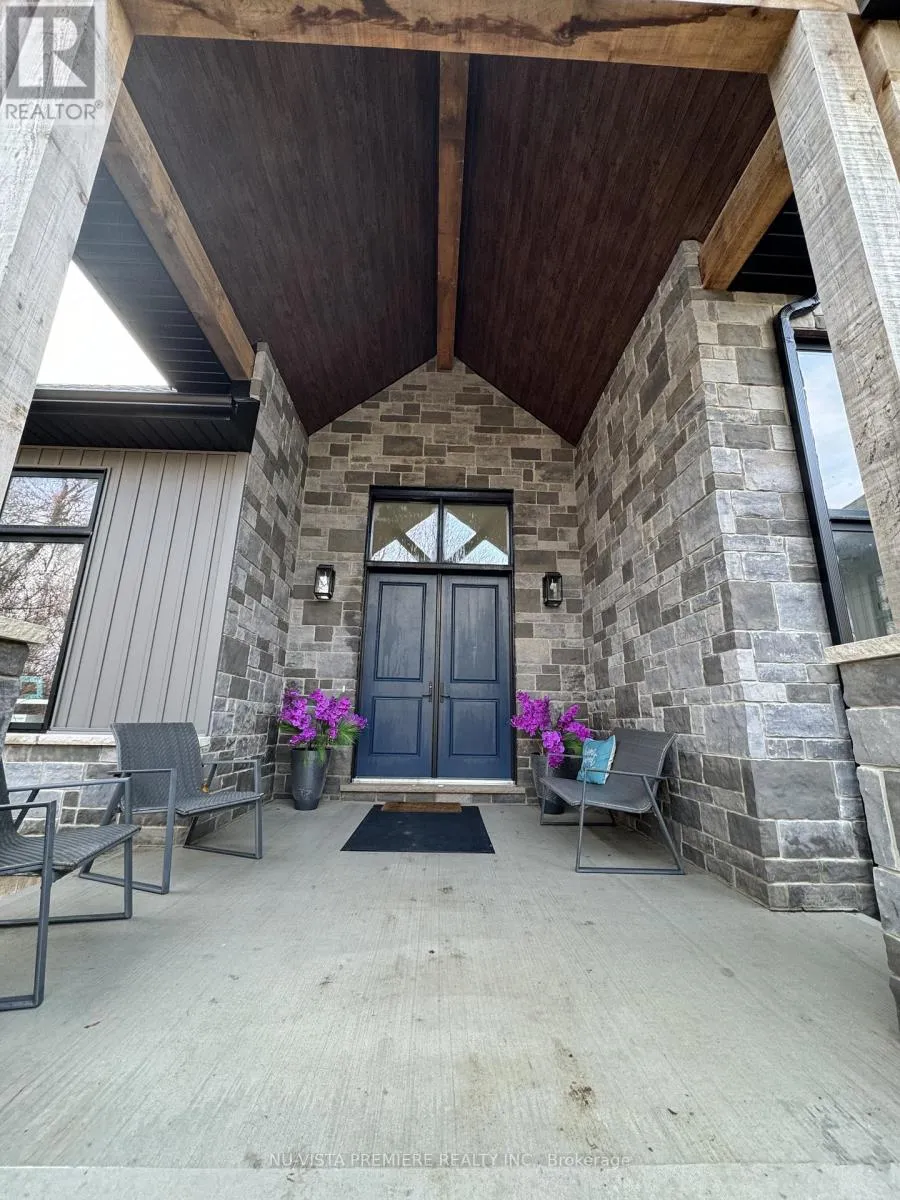 Cross Streets: Granton Line and Line 2. ** Directions: See GPS. Welcome to this remarkable 24.5 acre country estate featuring two homes, complete privacy, and luxury craftsmanship. A 1,000' driveway leads you into a secluded retreat surrounded by mature forest, over 2 km of trails, and your own private riverside park. Built in 2022, the main home offers 6,486 sq ft with stunning views throughout. The grand foyer opens to a spectacular great room with a full wall of windows and a wood-burning stone fireplace accented by a reclaimed 200+ year-old barn beam. The chef's kitchen includes dual 10' islands, six appliances, custom cabinetry, a large walk-in pantry with dishwasher, and a beautiful wine cellar connecting to the massive dining room. Patio doors lead to a covered porch with a gas fireplace.The main level features a front office, guest room, powder room, and an impressive primary suite with balcony, walk-in closet, and dream ensuite. A custom mudroom/laundry connects to the heated 2,393 sq ft 6+ car garage with a upper loft.The walk-out lower level includes a gym, man cave, movie theatre room, bar with electric fireplace, additional living room with electric fireplace, two bedrooms with walk-in closets and a shared 5-piece bath, a 3-piece bath, storage room, and access to a covered patio. In-floor heat runs through the basement and garage. Smart features include Lennox mechanicals, smart integration, built-in speakers, and central vac.The second home offers 1,345 sq ft with two bedrooms, walk-in closet, beautiful bathroom, open concept kitchen,dining, and living room with electric fireplace, mudroom/laundry, a two-car garage, and a large deck. A separate exterior stairway leads to a finished 625 sq ft loft with a two-piece bath.Outdoor features include a powered pavilion, large firepit area, your own park with river running through and trails throughout the property. An unparalleled blend of luxury, nature, and privacy. Too many features to list. Serious buyers only. (id:27476)