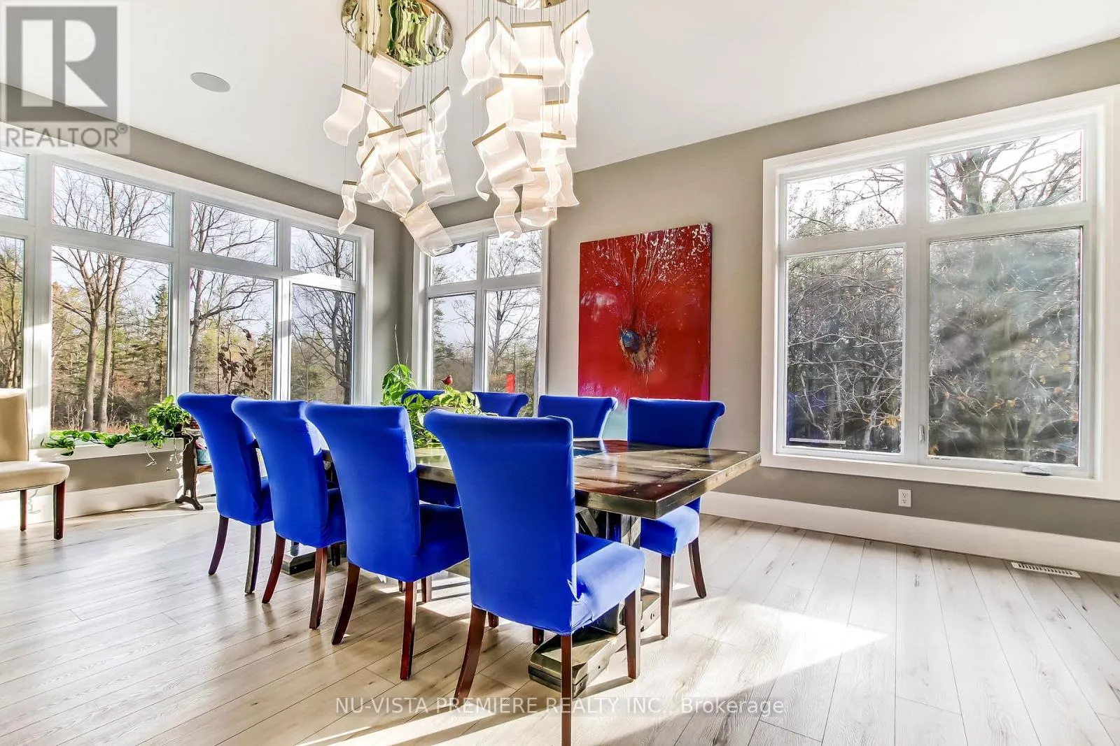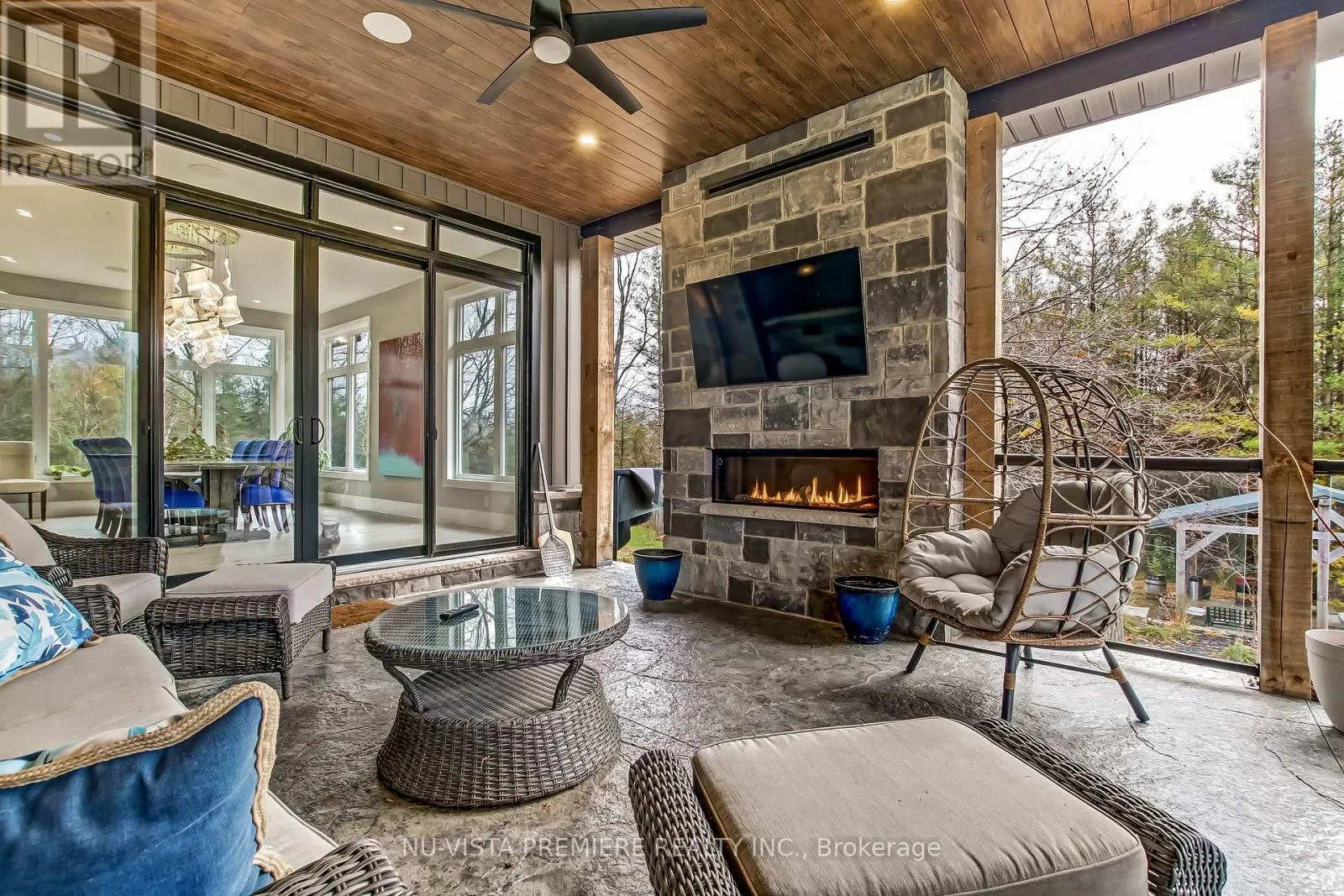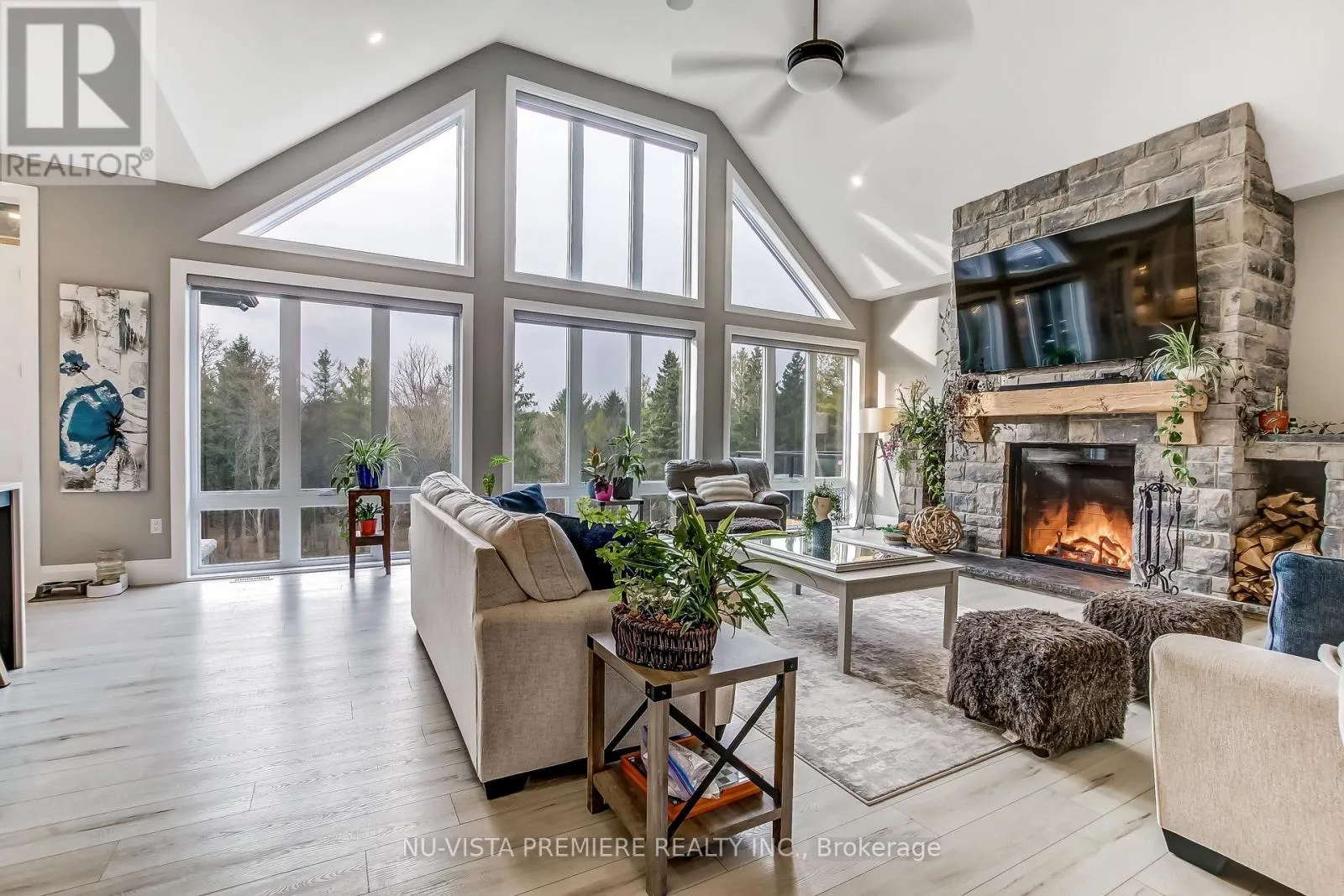 Cross Streets: Granton Line and Line 2. ** Directions: See GPS. Welcome to this remarkable 24.5 acre country estate featuring two homes, complete privacy, and luxury craftsmanship. A 1,000' driveway leads you into a secluded retreat surrounded by mature forest, over 2 km of trails, and your own private riverside park. Built in 2022, the main home offers 6,486 sq ft with stunning views throughout. The grand foyer opens to a spectacular great room with a full wall of windows and a wood-burning stone fireplace accented by a reclaimed 200+ year-old barn beam. The chef's kitchen includes dual 10' islands, six appliances, custom cabinetry, a large walk-in pantry with dishwasher, and a beautiful wine cellar connecting to the massive dining room. Patio doors lead to a covered porch with a gas fireplace.The main level features a front office, guest room, powder room, and an impressive primary suite with balcony, walk-in closet, and dream ensuite. A custom mudroom/laundry connects to the heated 2,393 sq ft 6+ car garage with a upper loft.The walk-out lower level includes a gym, man cave, movie theatre room, bar with electric fireplace, additional living room with electric fireplace, two bedrooms with walk-in closets and a shared 5-piece bath, a 3-piece bath, storage room, and access to a covered patio. In-floor heat runs through the basement and garage. Smart features include Lennox mechanicals, smart integration, built-in speakers, and central vac.The second home offers 1,345 sq ft with two bedrooms, walk-in closet, beautiful bathroom, open concept kitchen,dining, and living room with electric fireplace, mudroom/laundry, a two-car garage, and a large deck. A separate exterior stairway leads to a finished 625 sq ft loft with a two-piece bath.Outdoor features include a powered pavilion, large firepit area, your own park with river running through and trails throughout the property. An unparalleled blend of luxury, nature, and privacy. Too many features to list. Serious buyers only. (id:27476)
