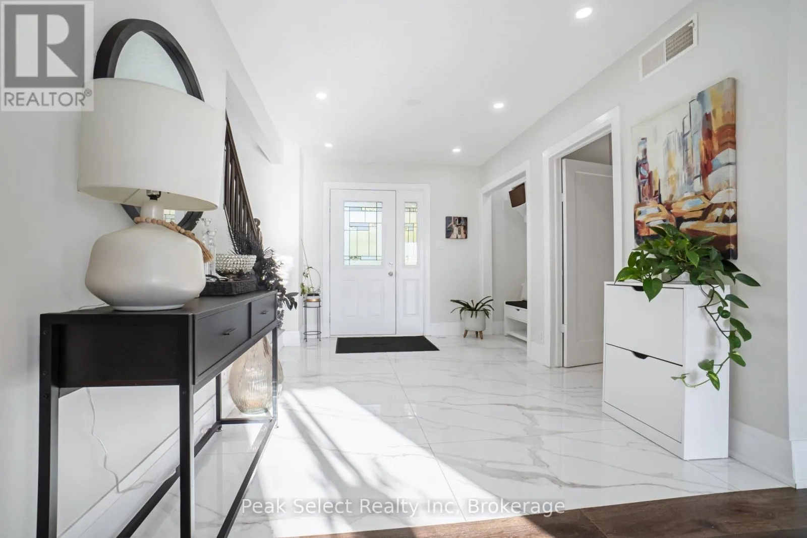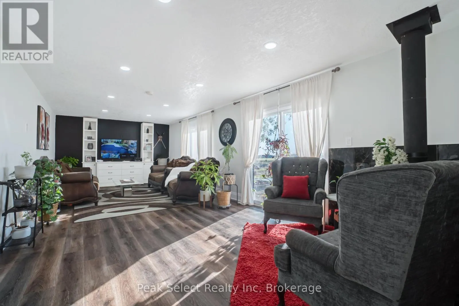 Cross Streets: Perth Line 8. ** Directions: Follow Perth Road #139 West of St. Mary's (2kms), Turn North onto Perth Rd. #163, follow for 2.5 kms. Property is on the West side. 911 # 1982. Looking for land, a serious shop, and a solid country home? This versatile 10+ acre property just minutes northwest of St. Marys delivers the full package.With approximately 8 acres of workable land, this property offers plenty of space for hobby farming, equipment, gardens, or simply enjoying the freedom of rural living. The home is ideally positioned near the center of the property and surrounded by a mature yard with established trees that provide privacy and a beautiful country setting.Inside, the home features a bright open-concept kitchen and dining area that has been recently updated and filled with natural light from a large picture window overlooking the front yard. A practical rear mudroom and laundry area connect to the attached double garage-perfect for country living and busy days outside. Upstairs you'll find four comfortable bedrooms and a recently renovated three-piece bathroom.The finished lower level adds even more usable space with a cozy rec room featuring a freestanding fireplace and wood bar, a personal gym area, and a storage room with direct access to the garage.For those needing serious workspace, the property truly shines with an impressive 40' x 40' heated barn/shop featuring overhead radiant gas heat, high-clearance ceilings, and a large roll-up door. Attached is a 40' x 24' workshop complete with running water, a compost toilet, and a full office space with kitchenette-ideal for a home-based business, tradesperson, woodworking, or vehicle restoration.With open space, functional outbuildings, and peaceful countryside views, this property offers the perfect blend of rural lifestyle and practical infrastructure-an excellent opportunity for anyone looking to put down roots and make the most of country living in Perth County. (id:27476)