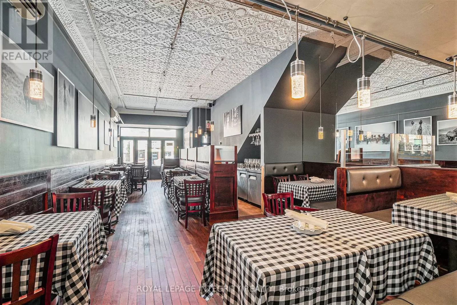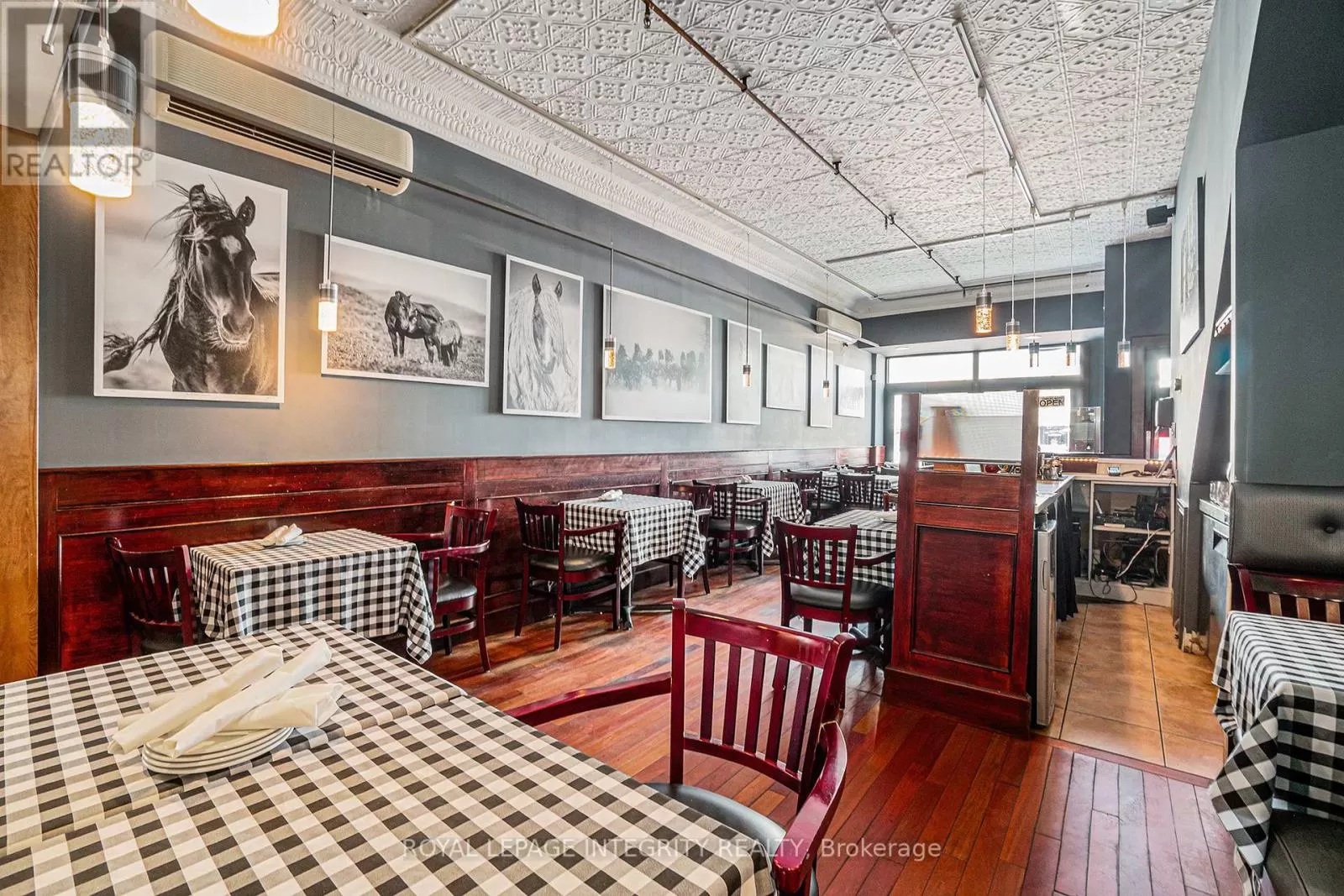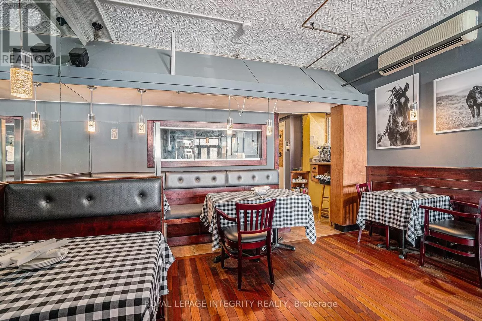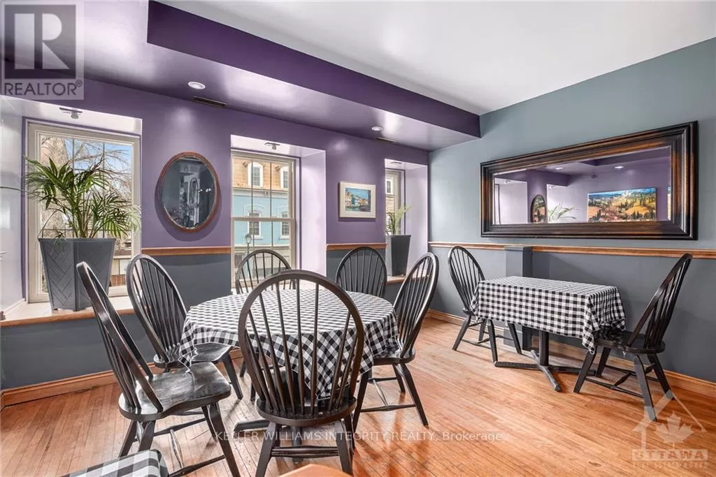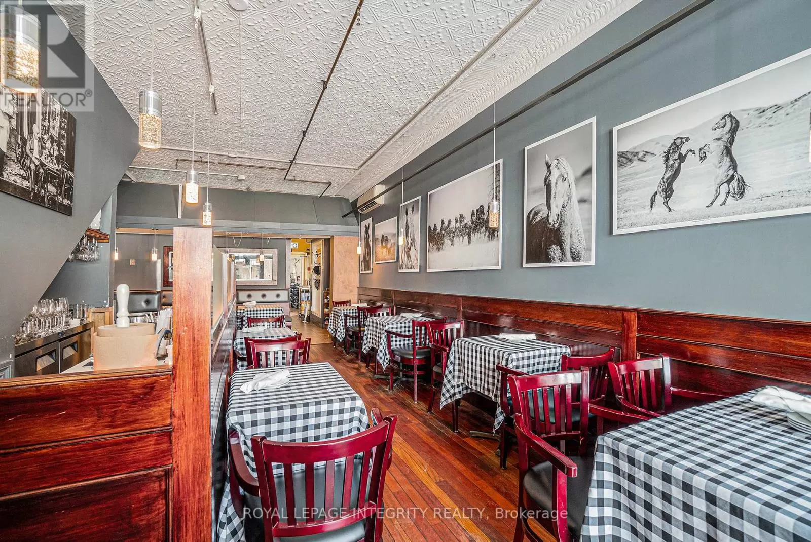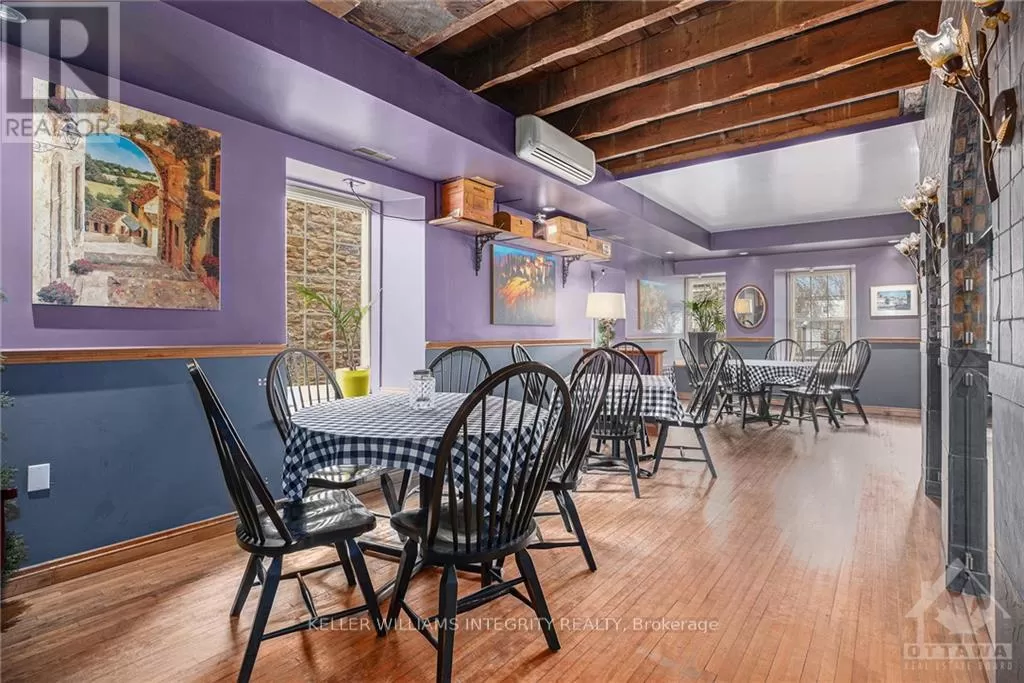 From Hwy 7 take Drummond St., towards downtown and turn right on Foster St., property will be on the left just past Gore St. Or turn onto Wilson St., towards downtown and turn left on Foster and property will be on the right. Welcome to Bistro 54, Perth, Ontario's first & only Italian Restaurant since 2005. Located in one of Canada's oldest & prettiest towns sits this beautiful 3 story stone building, built in 1858 by European masons. What you have with this incredible business & property is a turnkey, well maintained, upgraded, solid & well established business with over 8000 seated guests per year & a proven profitability formula. Three floors of renovated space totaling 2788 sq. ft., semi-finished basement 1050 sq. ft., containing HVAC, fresh pasta production, dry storage & walk in cooler. The main floor boasts old world charm through out the 32 seat dining room, service bar, open kitchen & unisex washroom. The second floor also has a 32 seat dining room, 2 washrooms, bar & rustic exposed rough hewn joists & rafters. The third floor is the onsite 1 bedroom residence. This is your opportunity to take over the reins, showcase your culinary talents to become the next generation. Possible VTB (id:27476)