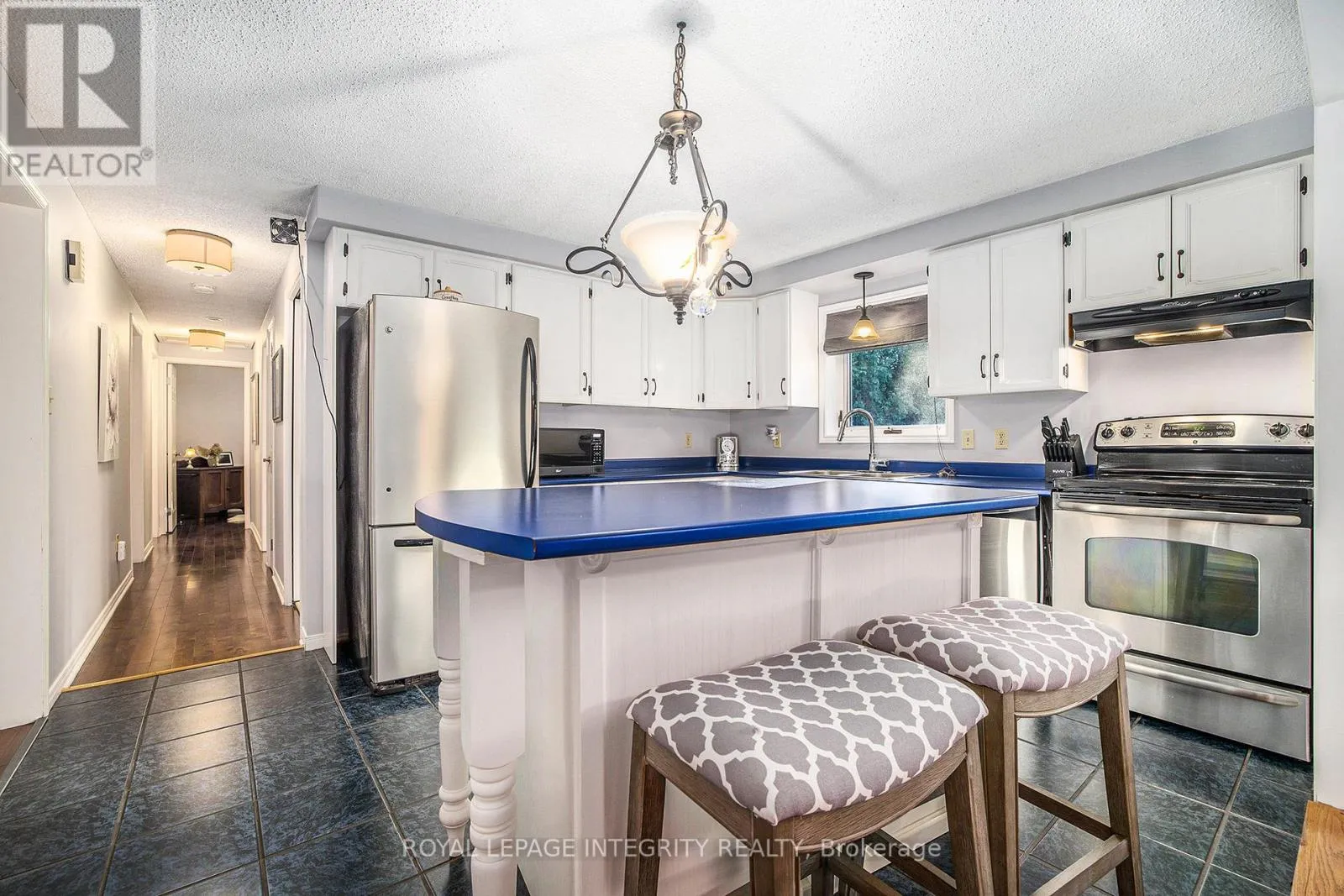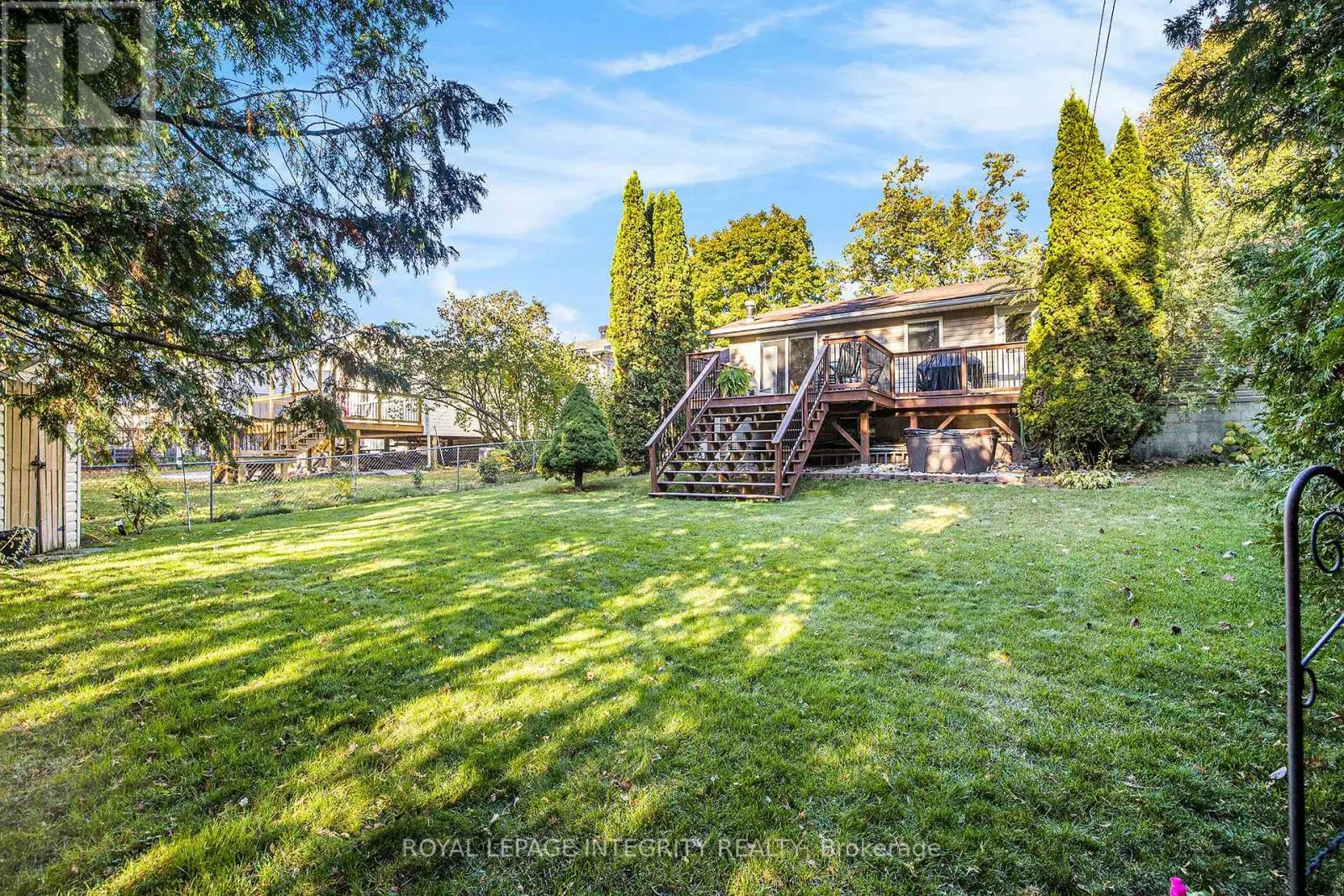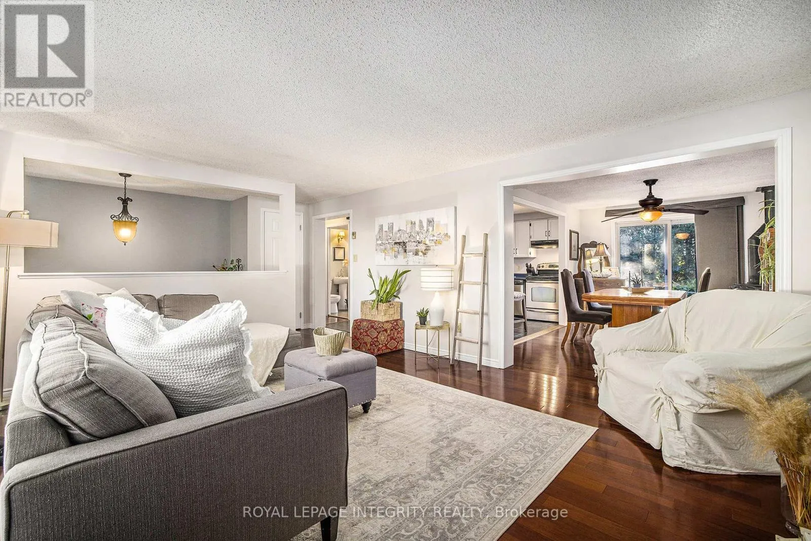 Wilson St W to Mather St This impeccably maintained home shows pride of ownership from the tasteful landscaping in front and back yards to the gleaming engineered hardwood through out most of the main floor. The home is located in a well established family friendly neighbourhood & only minutes to amenities and shopping. As you enter the foyer you have access to both the main level and lower level. Step up to the main level where you are greeted with an inviting living room that overlooks the front yard, next you flow into the dining room with sliding door to the back deck and a cozy corner free standing natural gas stove, move into the adjoining bright and airy kitchen with centre island, just down the hall is the laundry/2 piece bath with access to the back deck. You have a gorgeous 4 pc bath on this level as well as the relaxing master with double closets and 2 additional bedrooms. The lower is home to an oversized family room with a stunning natural gas fireplace, adjacent to the family room is a games area or home gym, just next door is the 4th bedroom, there is an additional room that could be utilized as another bedroom or home office. The back yard is fully fenced and quite private making it perfect for family dinners on the deck or relaxing on the green space and watching the little ones play. It's time for the next generation to raise their family at this wonderful home. With 37 yrs of ownership there have been many updates over the years which include: roof shingles 8 yrs appx, L/L nat. gas fireplace with 60,000 BTU 2 yrs appx., ductless heating/cooling pump 3 yrs appx., auto garage door 5 yrs appx. (id:27476)