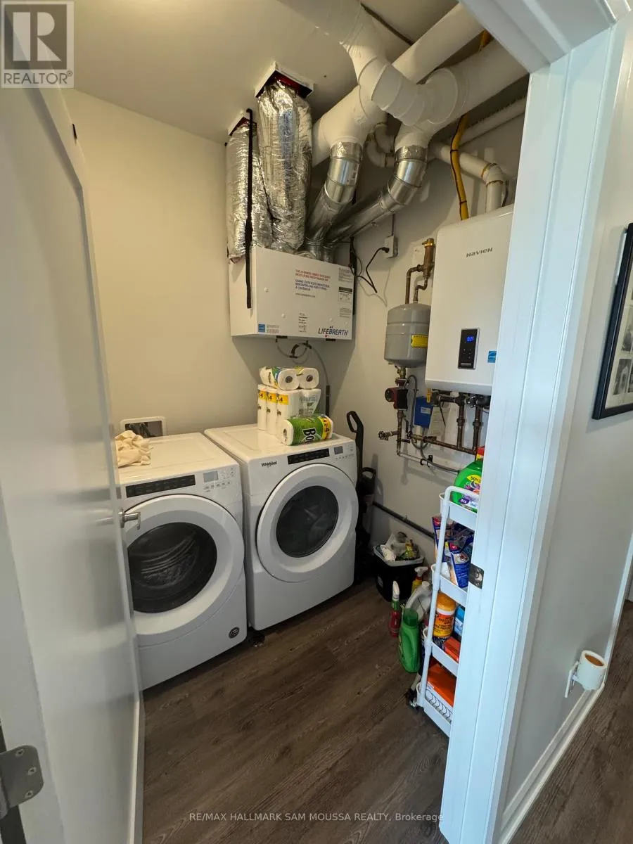 Cross Streets: Isabella and Drummond. ** Directions: Hwy 7 to Drummond, go South until Isabella, turn east on Isabella and follow garden to the end, turn right on Antonio and follow to end building is in front of you. Enjoy the view in this very bright 982 sq ft ground floor unit located in prestigious Perthmore sub-division. This beautiful two bedroom unit is very quiet, filled with natural light from the abundance of side, front and rear windows, front and back doors with rear deck. Features include nine ft ceilings, hot water baseboard heat, AC, high end stainless steel appliances - fridge, stove, dishwasher and full size washer and dryer, quartz counter tops, vinyl flooring, ensuite, walk in closest, second full size bathroom, covered parking for one vehicle. Deposit: 4,400. Plus one rent months rent. (id:27476)