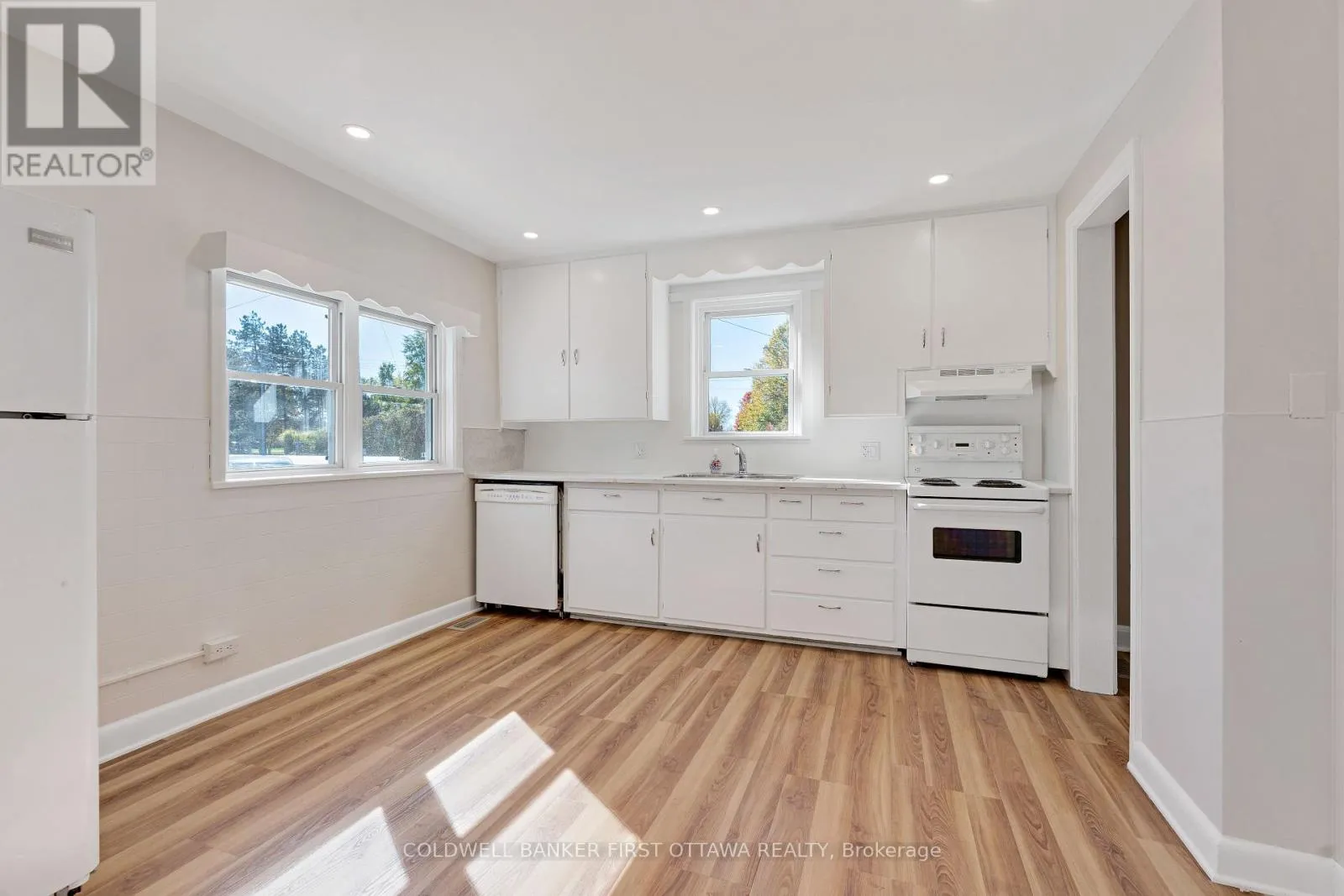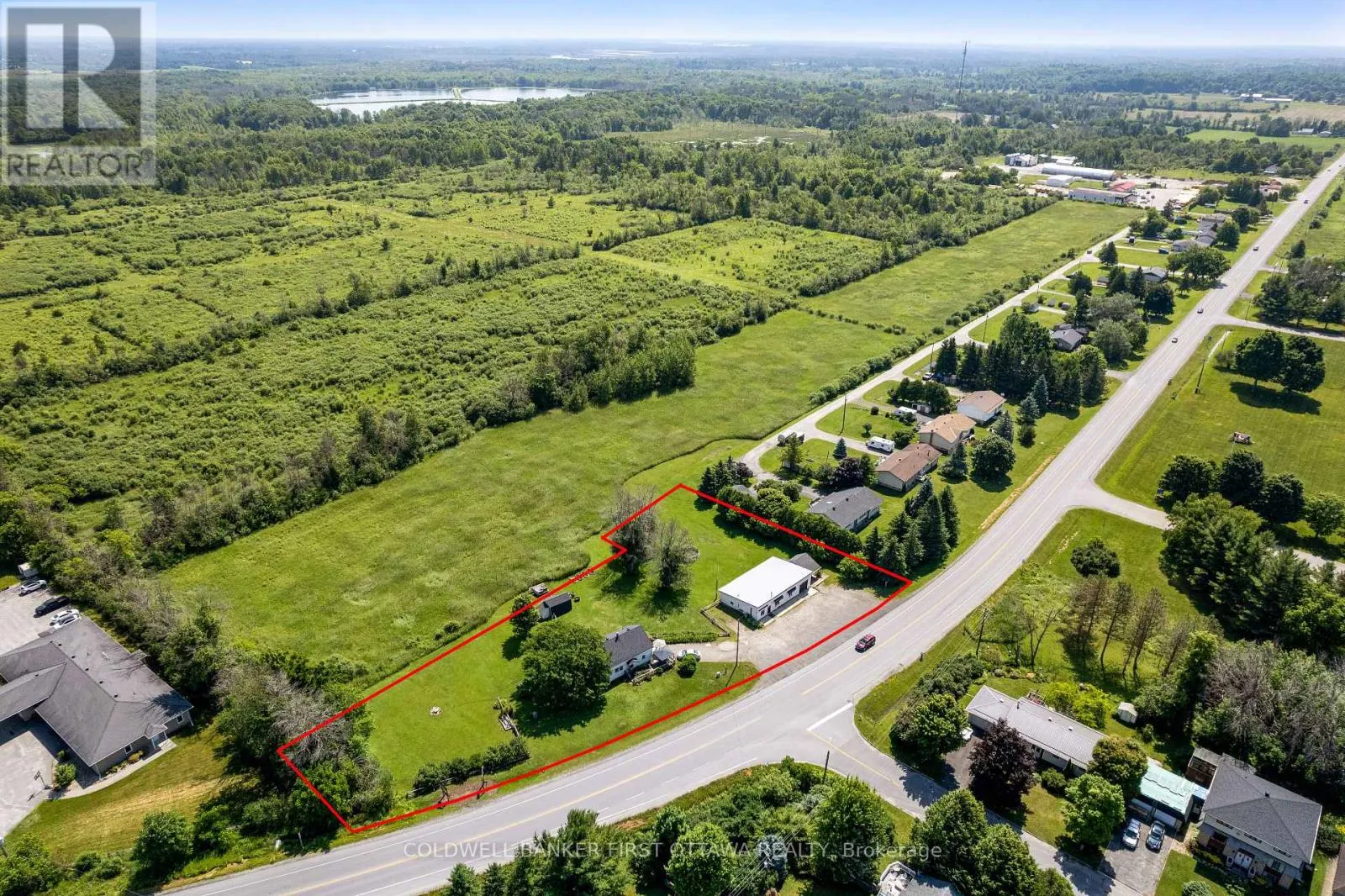 Cross Streets: Rideau Ferry Rd & South St. ** Directions: On Rideau Ferry Rd, across the street from Jessie Dr. Set on a level 1.2-acre lot just beyond the edge of Perth, this thoughtfully renovated 1.5 storey home offers a practical opportunity to live and work in one place. The residence features fresh flooring, new paint, and updated bathrooms throughout. A spacious eat-in kitchen includes an oversized pantry and serves as a central hub, leading into a large living and dining room suitable for daily use or entertaining. The upper level houses three bedrooms and a second full bath, providing distinct separation from the main living areas. A full-height unfinished basement adds generous storage capacity or potential for a workshop. Key updates include reshingling of the house and shed in 2016, along with a new gas furnace and electric hot water tank installed in 2022. Adjacent to the home, the versatile commercial building offers high visibility and includes a steel roof installed in 2021. This heated and powered structure features a single bay door, with the option to reopen a second, allowing for easy conversion into a multi-bay workshop or studio. The deep and wide backyard offers significant space for a vegetable garden, pool, or fencing. Located just outside town limits, the property benefits from lower taxes and flexible zoning while remaining walking distance to town and less than ten minutes to the Rideau Ferry boat launch by car. This is a functional setting for a craftsman or entrepreneur looking to build a business and a home in a single location. (id:27476)