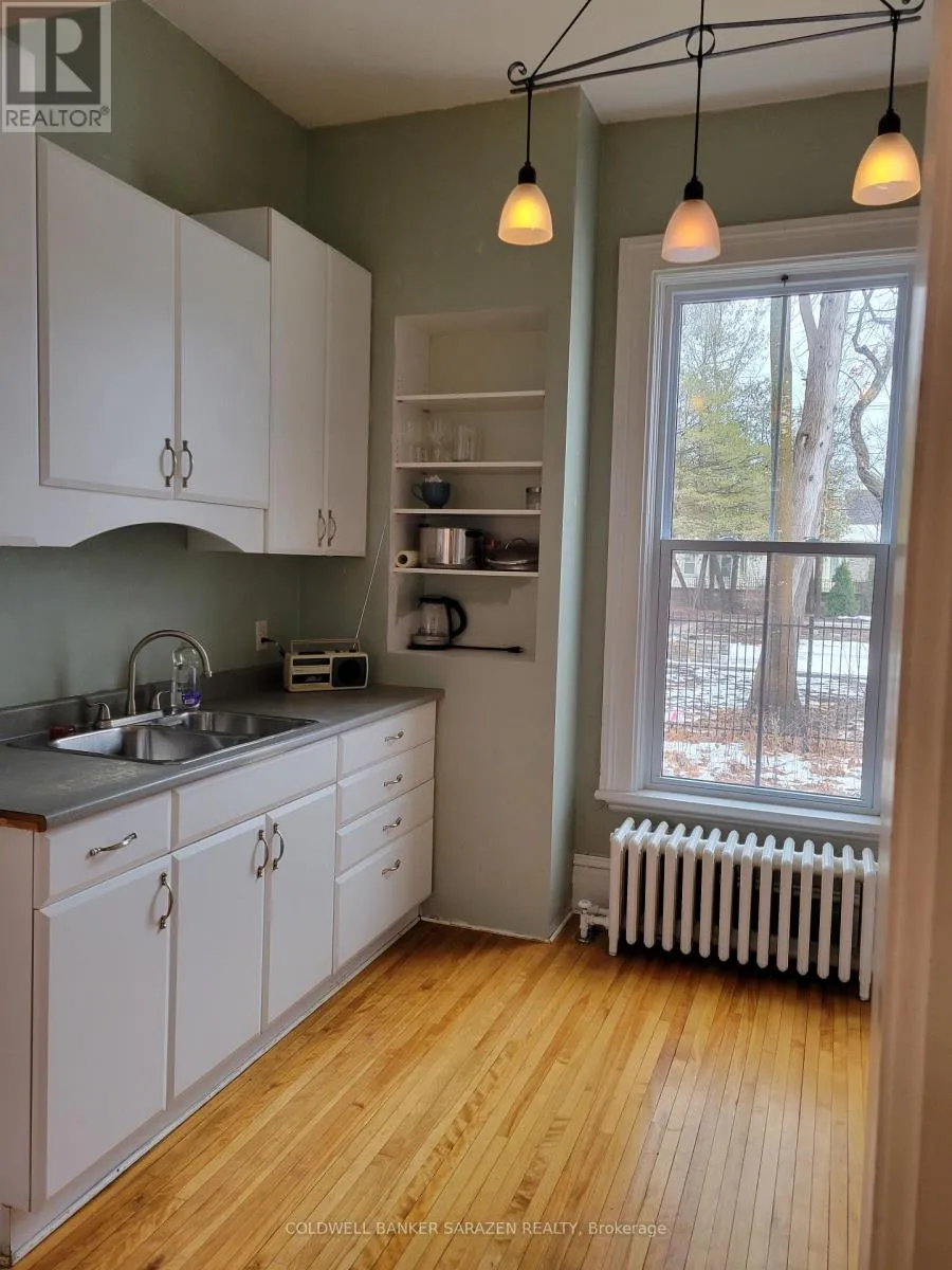 Cross Streets: Drummond / D'Arcy. ** Directions: Drummond St W to D'Arcy St. Welcome to this bright and inviting 1-bedroom, 1-bath apartment located in the front half of a charming 100+ year-old home. This unique two-floor unit offers generously sized rooms with high ceilings and abundant natural light throughout. The dining room features a beautiful bay window, creating a warm and welcoming space ideal for everyday living or entertaining. The layout provides a comfortable separation of living and sleeping areas, adding to the home's functionality and appeal. One off-street parking space is included, along with a washer hookup conveniently located in the basement. A wonderful opportunity to enjoy classic architectural character combined with space, light, and everyday convenience. Heat (gas) split 50/50 with back unit. (id:27476)
