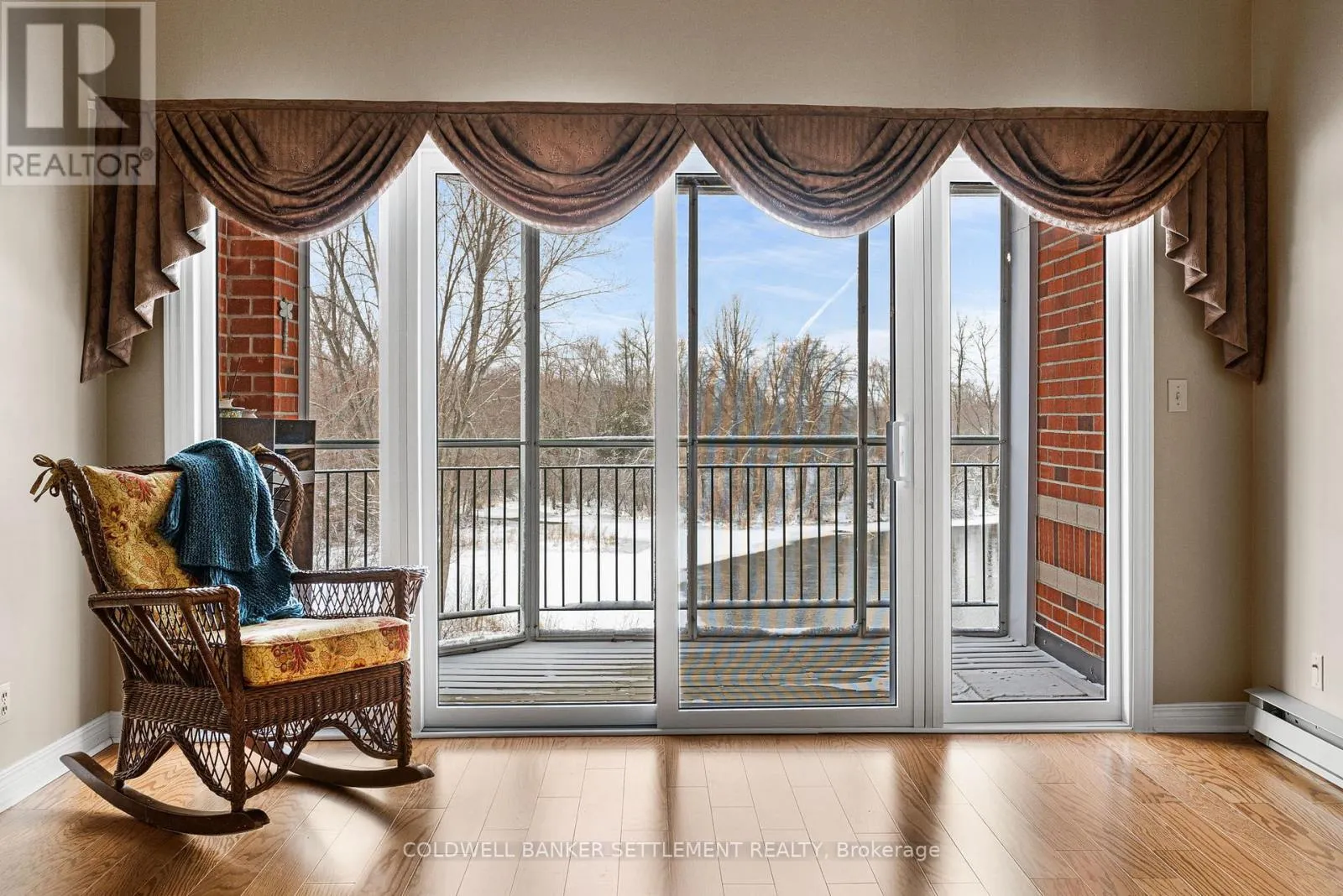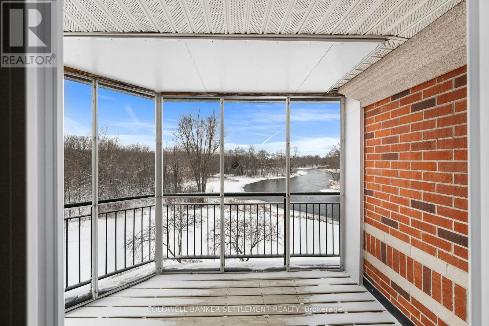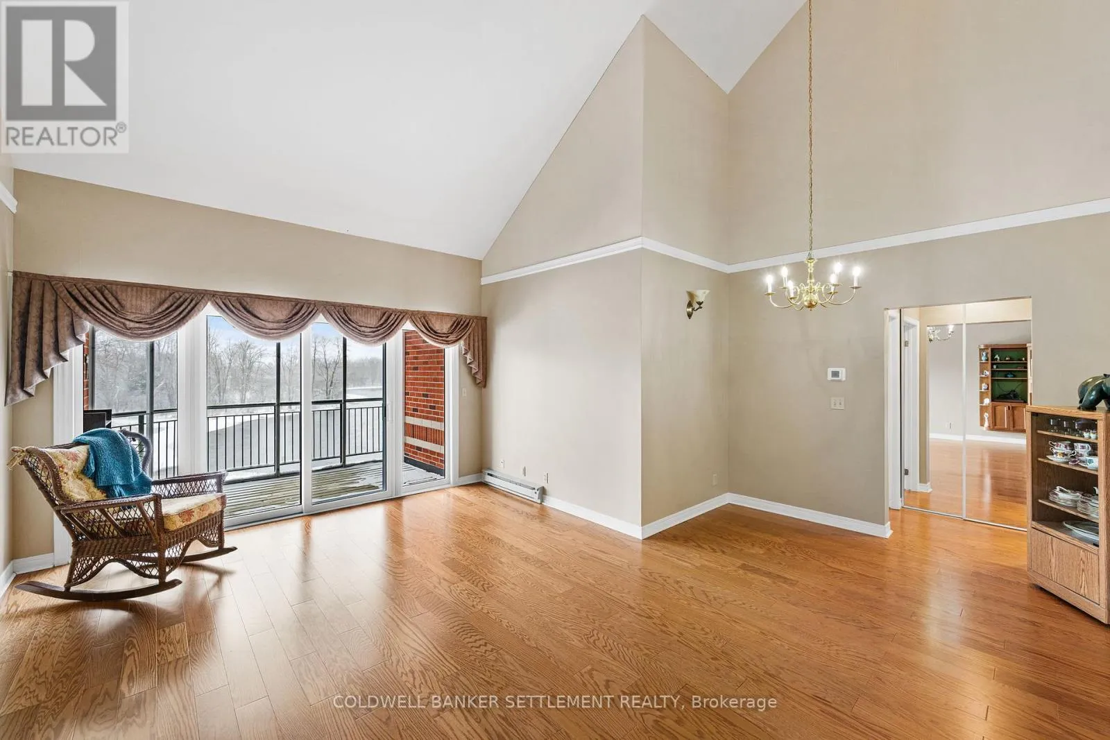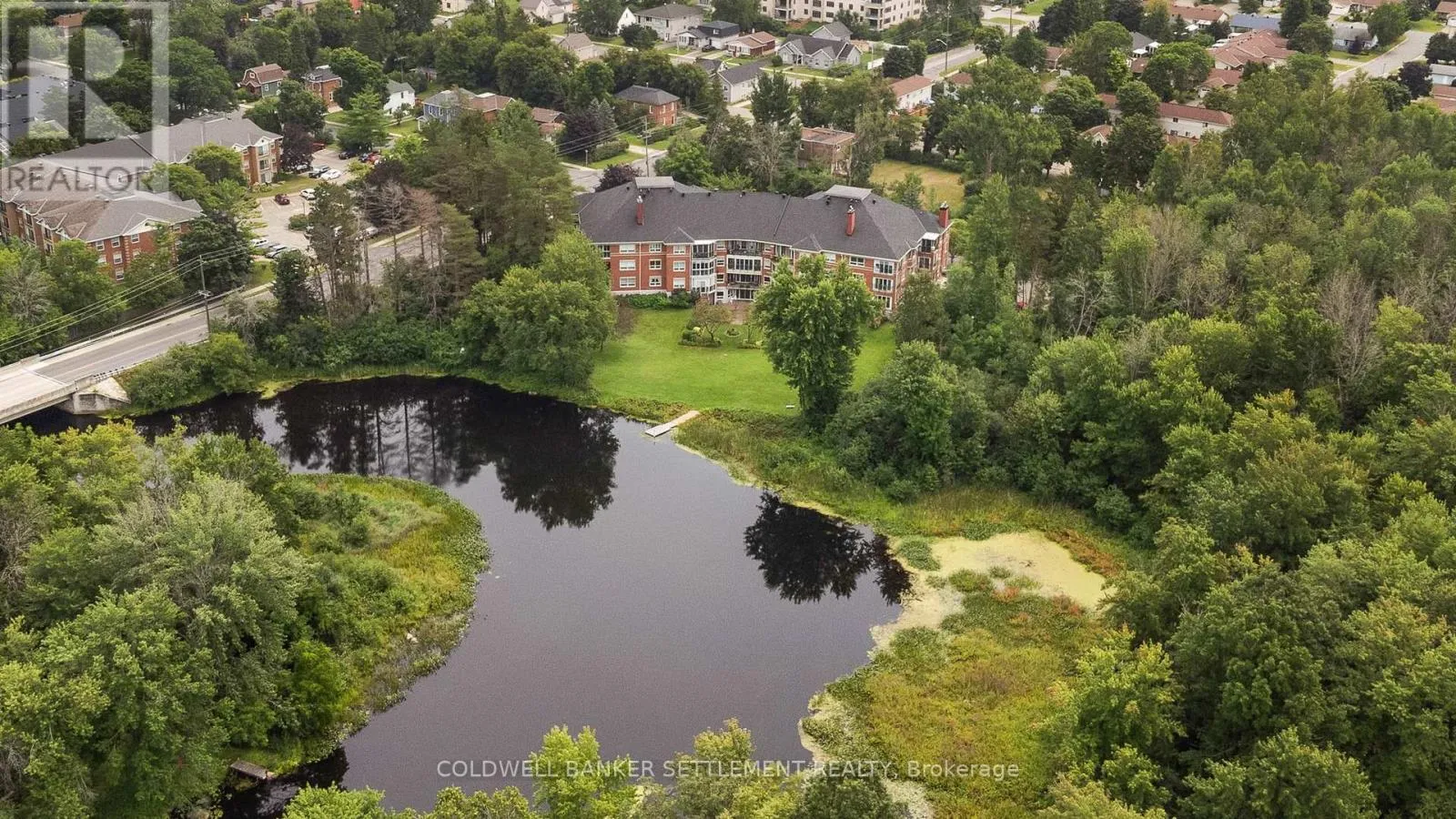 Cross Streets: Rogers Road & Harvey Street. ** Directions: From Hwy. 7, South on Wilson St, right onto Peter St., lefty onto Rogers Rd, #23 on right. Welcome to this well-maintained 1+1 bedroom, two-level condo in Huntingdon Green, one of Heritage Perth's most sought-after communities. The unit features a comfortable main living and entertaining area with excellent views of the Tay River, bringing in natural light and a calm riverside setting. A standout feature is the open second-level loft, which serves as the +1 bedroom and includes its own 2-piece bathroom, offering flexible use as a family room, guest bedroom, or home office. The primary area is complemented by a 3-piece bathroom with a new shower unit. A screened-in balcony provides a great spot to enjoy the outdoors, while engineered hardwood flooring, excellent in-unit storage space, and a dedicated in-unit laundry room add everyday convenience. Residents benefit from extensive common areas, including a grand foyer, library, workshop, exercise room, pool table, and a large riverside meeting/party room with its own kitchen and public bathroom, as well as easy access to the river for kayaking or canoeing or just enjoy the beautiful views. Located within walking distance to downtown, this condo also includes one outdoor parking space and visitor parking. (id:27476)