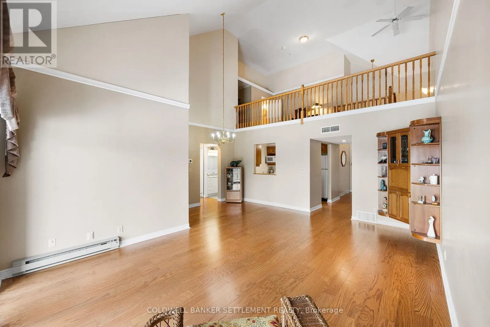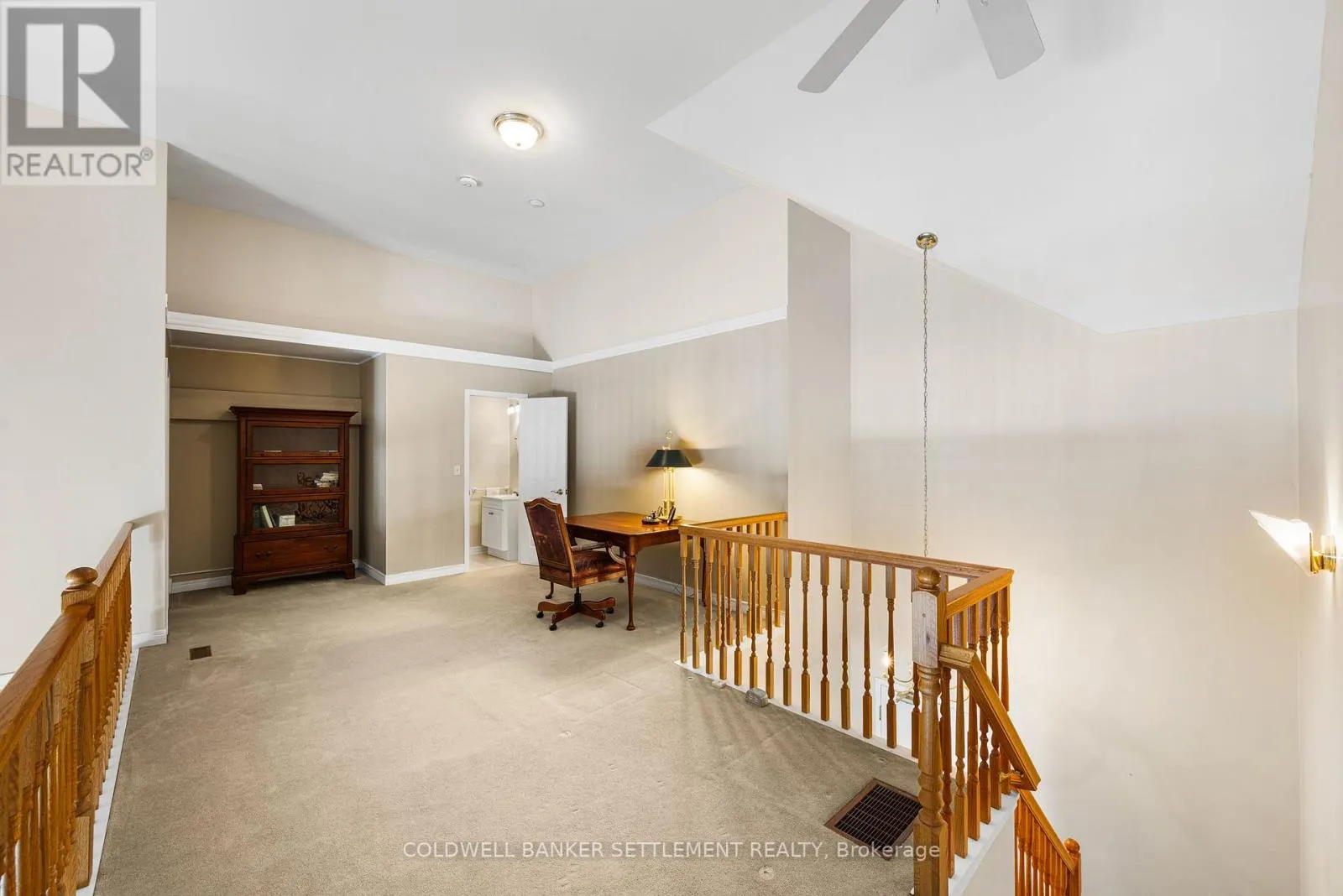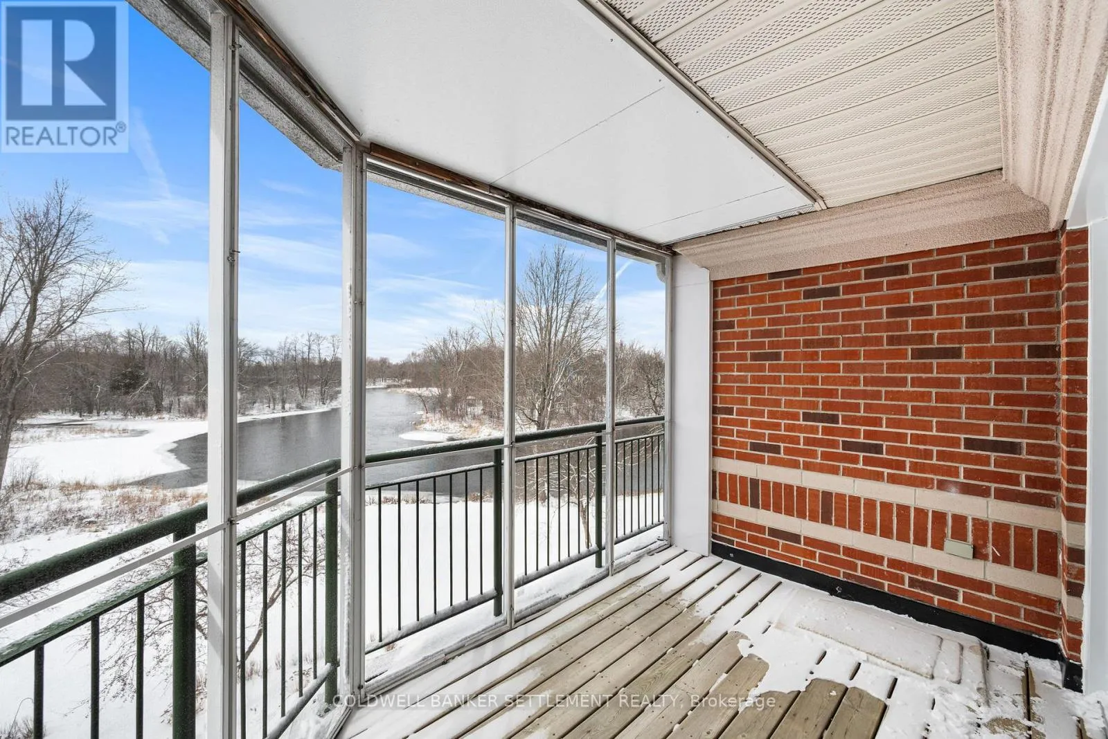 Cross Streets: Rogers Road & Harvey Street. ** Directions: From Hwy. 7, South on Wilson St, right onto Peter St., lefty onto Rogers Rd, #23 on right. Welcome to this well-maintained 1+1 bedroom, two-level condo in Huntingdon Green, one of Heritage Perth's most sought-after communities. The unit features a comfortable main living and entertaining area with excellent views of the Tay River, bringing in natural light and a calm riverside setting. A standout feature is the open second-level loft, which serves as the +1 bedroom and includes its own 2-piece bathroom, offering flexible use as a family room, guest bedroom, or home office. The primary area is complemented by a 3-piece bathroom with a new shower unit. A screened-in balcony provides a great spot to enjoy the outdoors, while engineered hardwood flooring, excellent in-unit storage space, and a dedicated in-unit laundry room add everyday convenience. Residents benefit from extensive common areas, including a grand foyer, library, workshop, exercise room, pool table, and a large riverside meeting/party room with its own kitchen and public bathroom, as well as easy access to the river for kayaking or canoeing or just enjoy the beautiful views. Located within walking distance to downtown, this condo also includes one outdoor parking space and visitor parking. (id:27476)