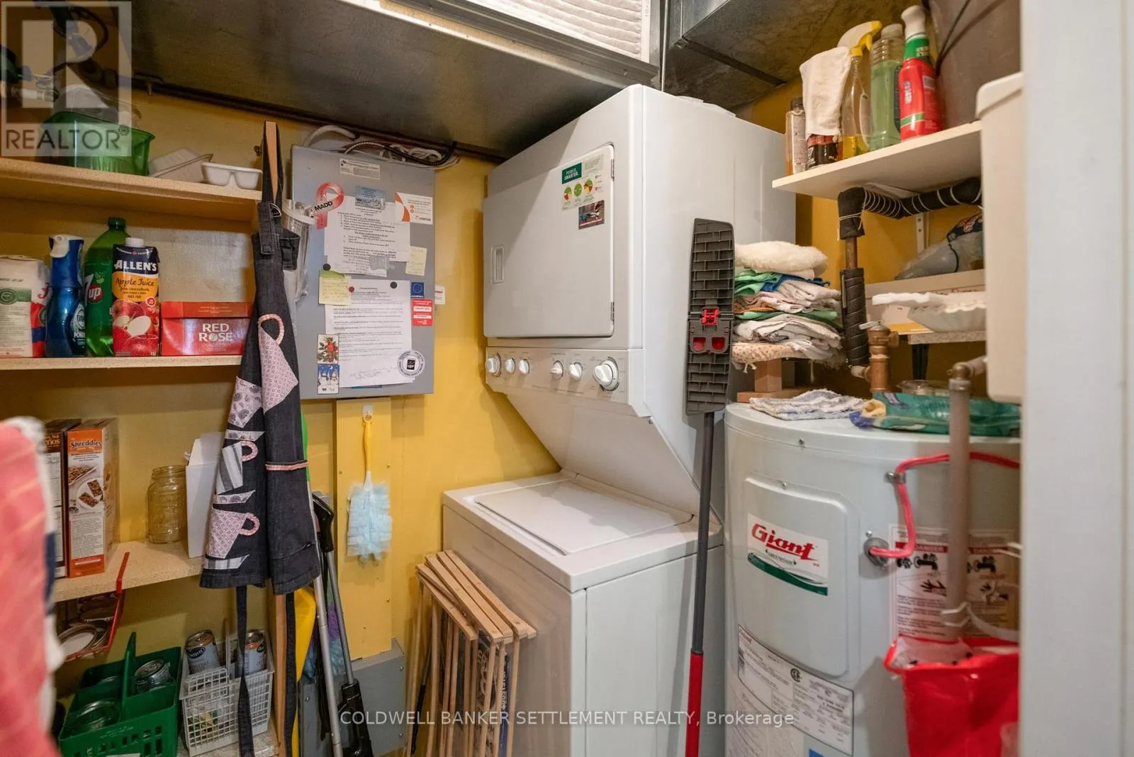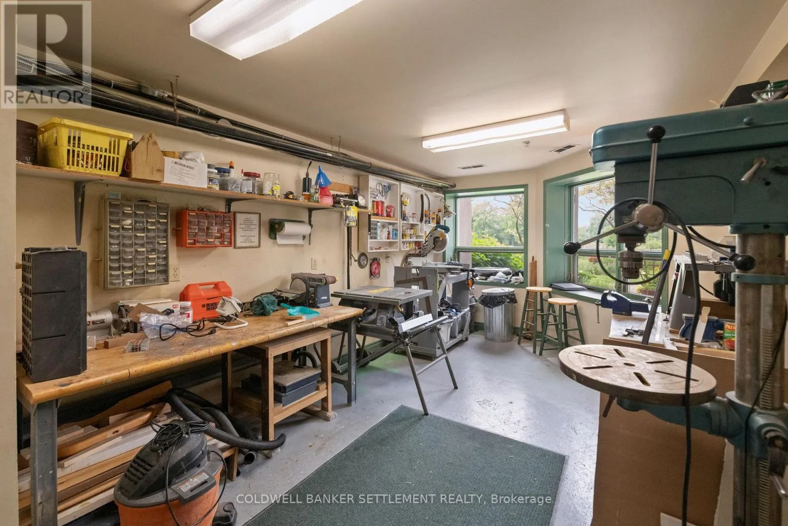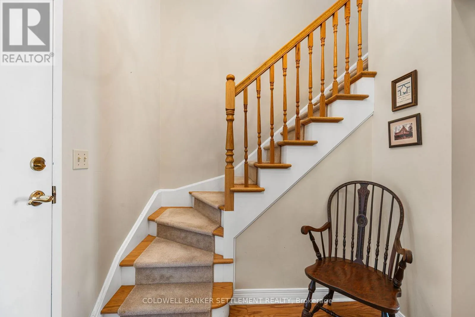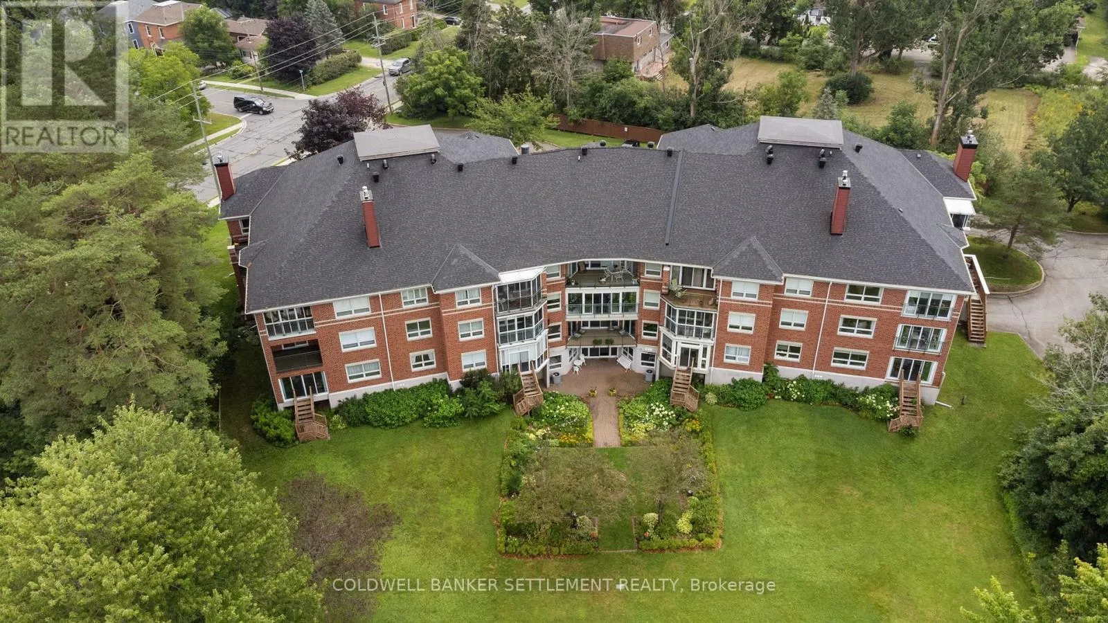 Cross Streets: Rogers Road & Harvey Street. ** Directions: From Hwy. 7, South on Wilson St, right onto Peter St., lefty onto Rogers Rd, #23 on right. Welcome to this well-maintained 1+1 bedroom, two-level condo in Huntingdon Green, one of Heritage Perth's most sought-after communities. The unit features a comfortable main living and entertaining area with excellent views of the Tay River, bringing in natural light and a calm riverside setting. A standout feature is the open second-level loft, which serves as the +1 bedroom and includes its own 2-piece bathroom, offering flexible use as a family room, guest bedroom, or home office. The primary area is complemented by a 3-piece bathroom with a new shower unit. A screened-in balcony provides a great spot to enjoy the outdoors, while engineered hardwood flooring, excellent in-unit storage space, and a dedicated in-unit laundry room add everyday convenience. Residents benefit from extensive common areas, including a grand foyer, library, workshop, exercise room, pool table, and a large riverside meeting/party room with its own kitchen and public bathroom, as well as easy access to the river for kayaking or canoeing or just enjoy the beautiful views. Located within walking distance to downtown, this condo also includes one outdoor parking space and visitor parking. (id:27476)