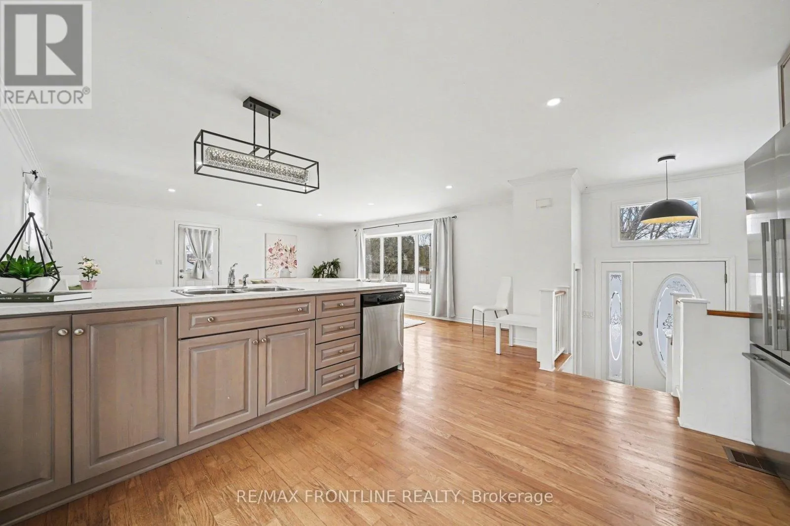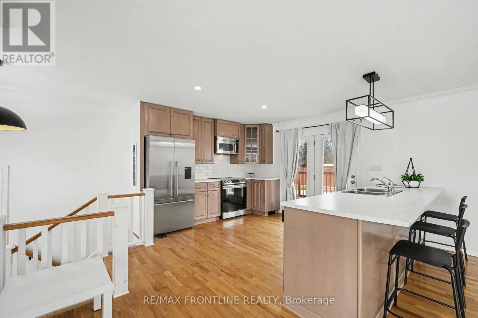 Cross Streets: Drummond St W & Railway St. ** Directions: From Ottawa take Hwy 7 west to Perth, LT at Drummond St W, Driveway located on Railway St. (3rd block on the right). Welcome to this cheerful brick-faced side-split nestled in the heart of beautiful heritage Perth - a perfect blend of comfort, character, and convenience. Bright and airy, this inviting home is perfect for first-time buyers, retirees or anyone seeking small-town charm and modern-day accessibility. At the heart of the home is a gorgeous new kitchen, featuring an expansive breakfast bar open to light-filled living/dining areas, making it ideal for effortless entertaining and everyday living. Convenient garden doors lead to a spacious new deck, perfect for BBQs, outdoor dining, and relaxing with family and friends.The classic side-split layout offers both flow and functionality. Just a few steps down from the main living area, you'll find a versatile flex space-ideal for a home office or study-along with a convenient laundry area with stacked washer/dryer. This level also includes 2 generously sized bedrooms boasting high ceilings - your spacious primary suite flows to a 4-piece ensuite, while the second bedroom & 4-piece bathroom are designated for family or guests. Set on an oversized 100 x 100 ft corner lot, enjoy a nearly fully fenced yard with plenty of room for kids, pets or projects - why not add a pool or play-structure for the kids/grandkids... or perhaps a large garden or landscaping design to make it your own! Located within walking distance to downtown Perth, you'll love the charming shops, cafés, restaurants, parks, and nearby amenities, including the hospital, grocery stores, and Perth Mews Mall-everything you need close to home. 24 hours irrevocable on all offer as per form 244. (id:27476)