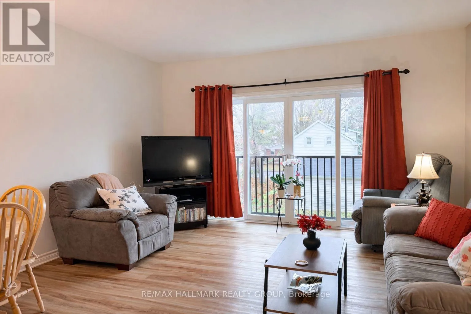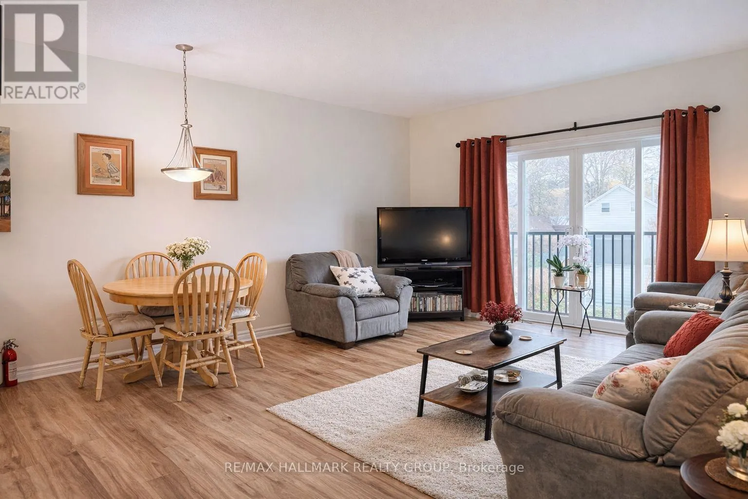 Cross Streets: Drummond St & Welland St. ** Directions: From Highway 7 in Perth, head South on Drummond Street and turn right onto Welland St. Condo building will be situated on your left #22. \"The Tweedsmuir\". Welcome to easy, low-maintenance living in the heart of Perth! This bright and inviting 2-bedroom condo offers exceptional natural light and a functional open-concept layout, perfect for comfortable everyday living.The kitchen features beautiful custom maple cabinetry, ample counter space, and great storage, seamlessly flowing into a spacious living area-ideal for both relaxing and entertaining. You'll find two nicely sized bedrooms, a large 4-piece bathroom, and the added bonus of in-unit laundry. The utility room is thoughtfully designed with spacious built-in storage, offering the perfect solution for bulk purchases and additional household organization.This well-maintained unit is truly move-in ready, with thoughtful updates including vinyl flooring in the living room and hallway (January 2025), a furnace (2022) and owned hot water tank (2022).Located in a reputable building known for its welcoming and friendly community, the common areas have been recently refreshed with new flooring and fresh paint. Residents enjoy access to a party room, outdoor patio with BBQ, elevator, landscaped gardens, and outdoor parking.Ideally situated just steps to Perth Mews Mall, Shoppers Drug Mart, restaurants, banking, and everyday essentials-everything you need is within easy reach. A wonderful opportunity to enjoy a connected, carefree lifestyle in beautiful Perth. (id:27476)