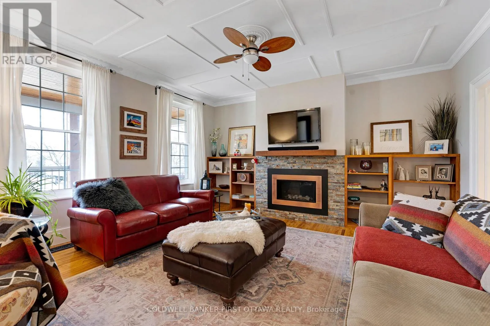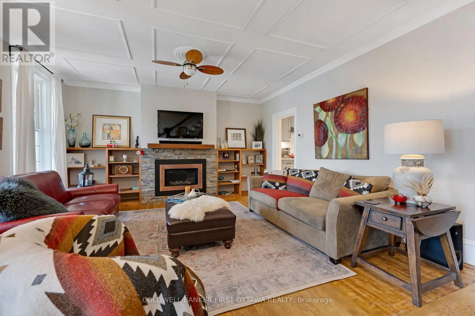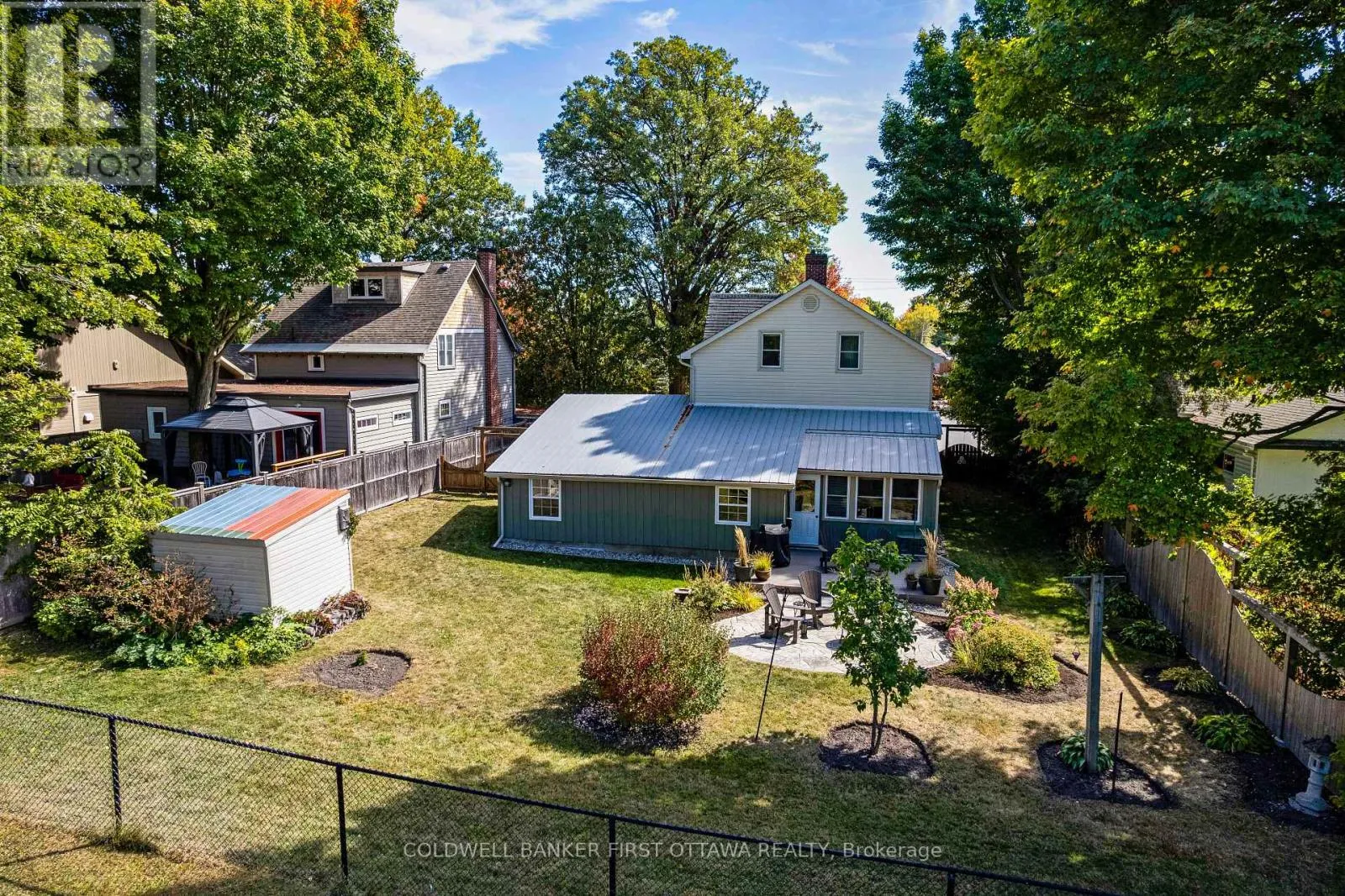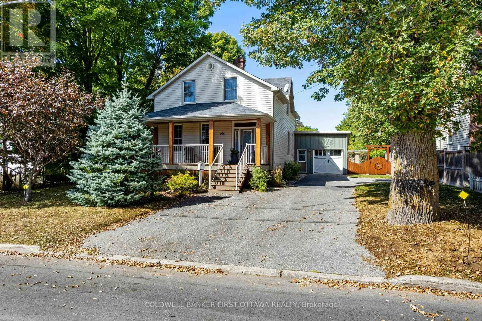Cross Streets: Wilson St West, in Perth. ** Directions: Hwy 7 to Perth. South on Wilson St West. Right on Leslie Street. A minute's walk down the street from this home in Perth, is the Tay River. Besides location, the home itself is a happy delight with solid character. From classic veranda to large fenced yard, you have country charm - in town. The big covered veranda has welcoming front door with wide etched glass side panels and transom. Inside, the three bedroom home is all renovated with care and quality. Oak hardwood floors flow thru-out, featuring scratch-resistant finish. Living room coffered ceiling with lovely centre medallion; built-in shelves frame handsome Ledger stone fireplace with efficient gas insert. Dining room also has fireplace, with woodstove insert. Updated with style, the 2023 kitchen offers custom cabinetry, granite countertop with leather finish; textured subway tile backsplash; under counter light; two-door refrigerator & 5-burner stove. Powder room combined with laundry centre with more custom cabinetry. Wonderful three-season sunroom exposed post & beams and wrap-about windows with built-in blinds. Mudroom improves family organization with built-in shelves, and two closets. The staircase is a showpiece of tradition, fine woodworking and decorative accents. Upstairs are three bedrooms, including primary with three closets. The 4-pc bathroom has ceramic plank tile floor, marble vanity, soaker tub/shower and linen closet. Basement is utility area with 6' high ceiling and insulated walls that are drywalled. New plumbing in basement part of the new sewer line to street. Home's numerous upgrades include new 2025 natural gas furnace with humidifier, new 2020 central air conditioner and all new 2017 windows. Attached single garage has inside entry, tongue&groove walls, concrete floor and yard door. The backyard retreat includes composite deck and flagstone patio.Yard all fenced and landscaped with trees & gardens. Beyond the yard is huge green playground that further back, adjoins the public school. You can also walk to all amenities, downtown shops & restaurants. (id:27476)