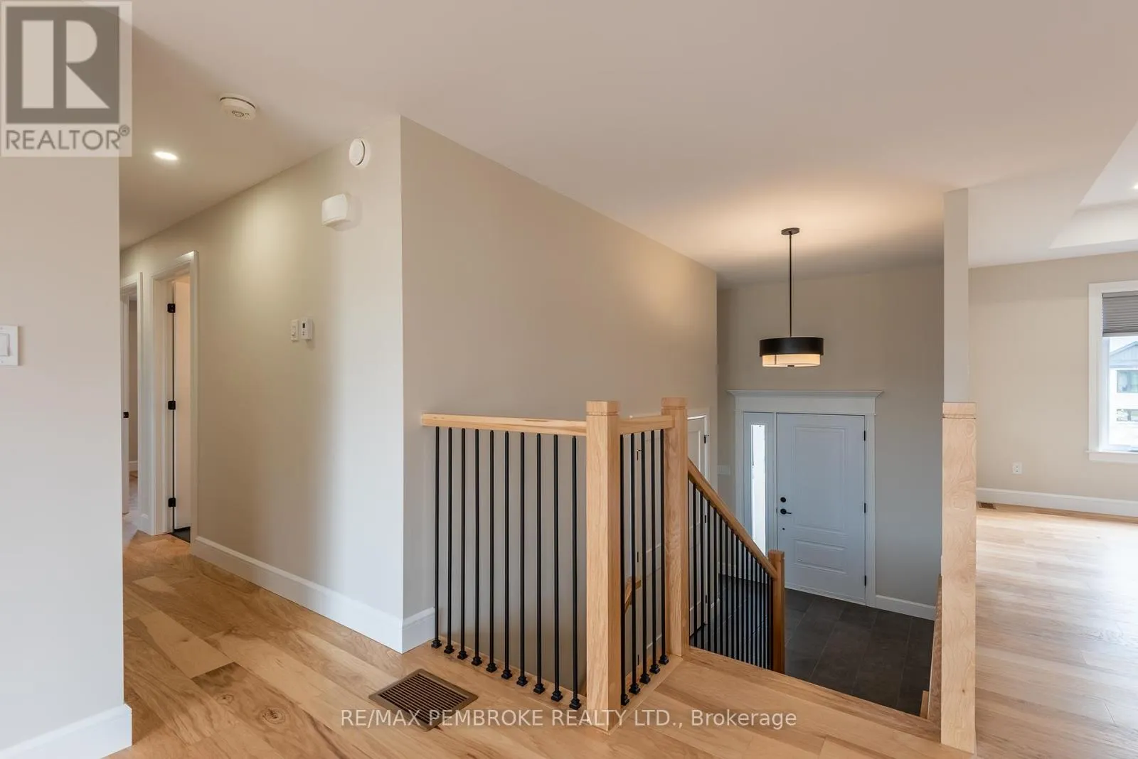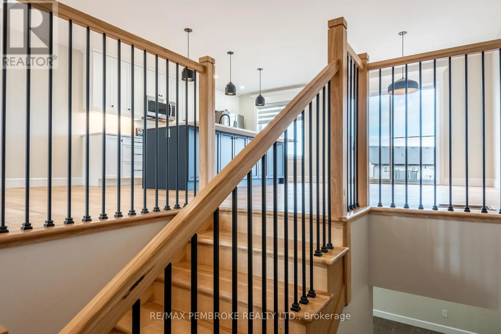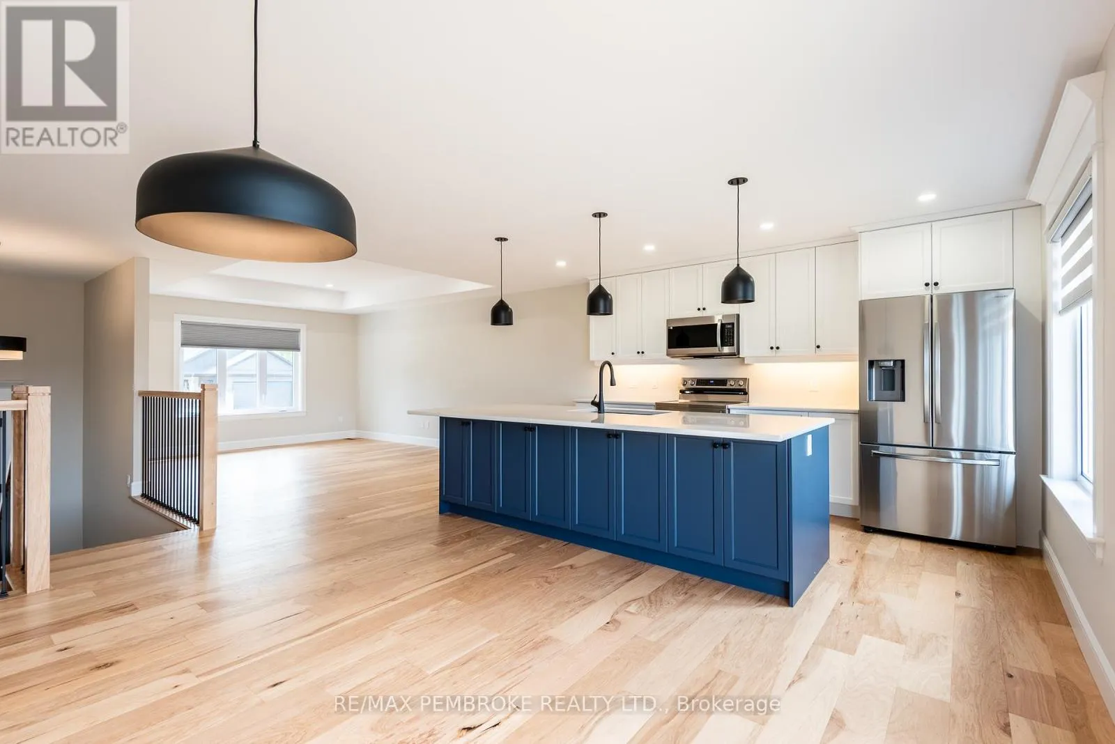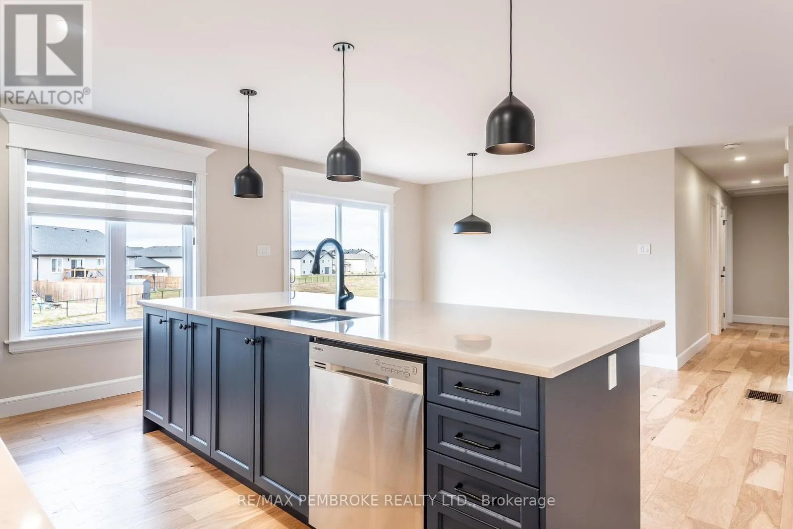 Cross Streets: Zachary and Bedard. ** Directions: Murphy rd, to Bedard to Zachary then right onto Chad. The stylish Huntington model by Legacy Homes is located in the popular Laurentian Highlands subdivision and is ready for immediate occupancy. The spacious and welcoming foyer gives access to the double attached garage. The main floor is a lovely open concept with custom kitchen cabinetry with quartz counters and ample space for meal prep and entertaining, contrasting spacious kitchen island providing plenty of storage and additional seating. Enjoy the modern lighting and fresh neutral paint throughout, along with natural hickory engineered hardwood floors on the main floor including bedrooms, with tile in bathrooms. The primary bedroom has custom 3pc ensuite with tile shower and glass door. The newly finished lower level offers a third full bathroom, expansive fourth bedroom, games room with french doors, which could make a fantastic home office or gym, a bright family room, a finished laundry room and utility/storage area. This home backs onto a green-space and has no direct back neighbours. 24 hour irrevocable by the Buyer on any written Offer. (id:27476)
