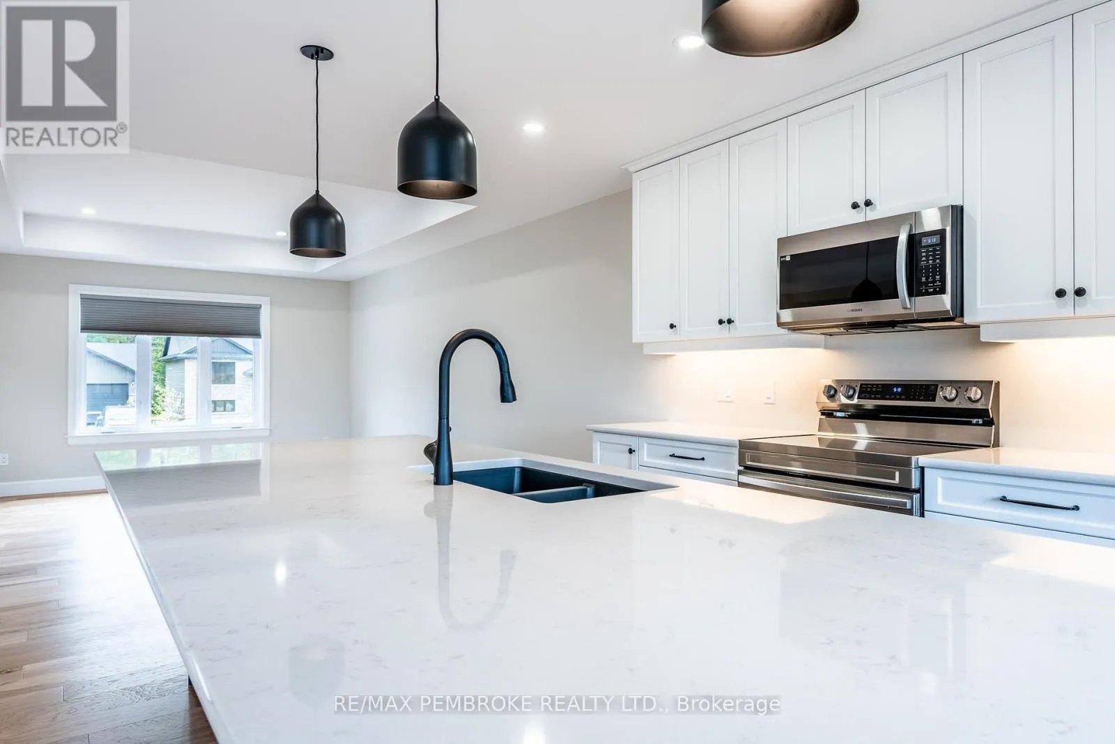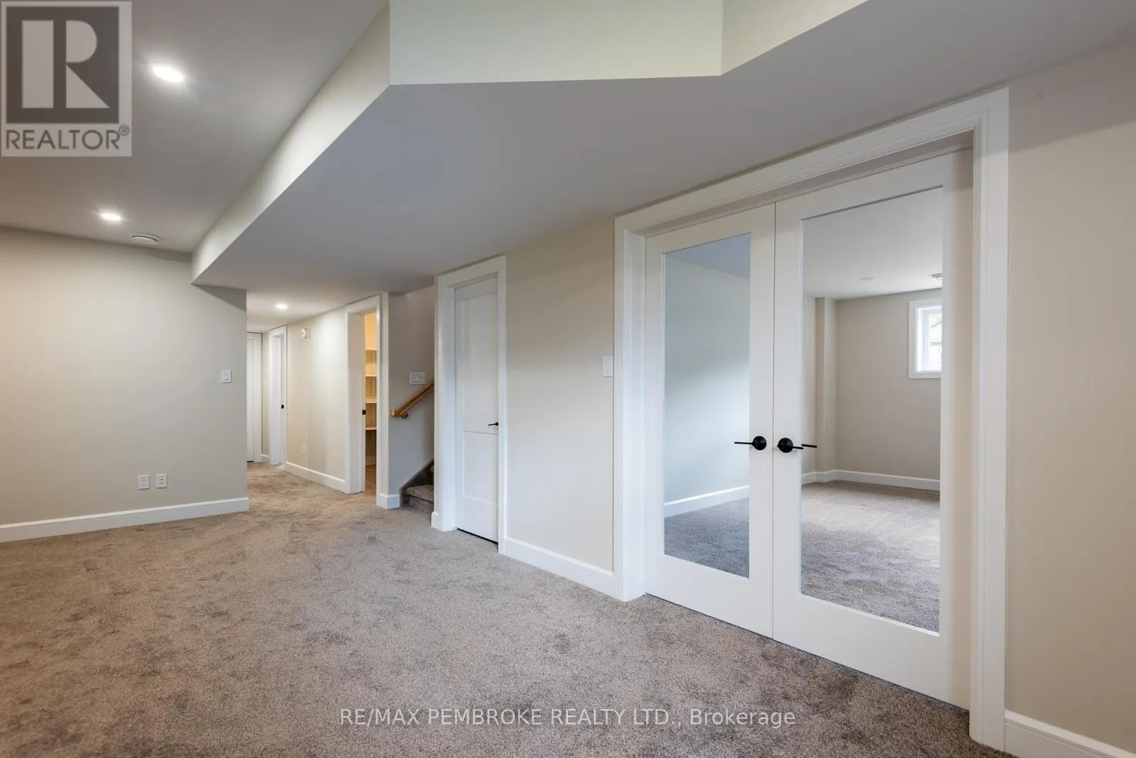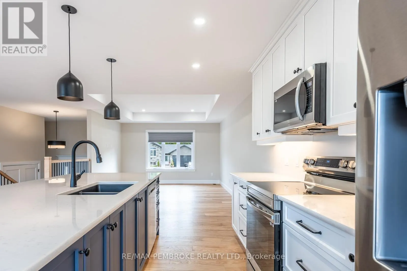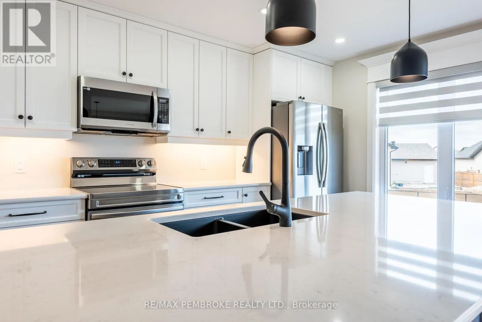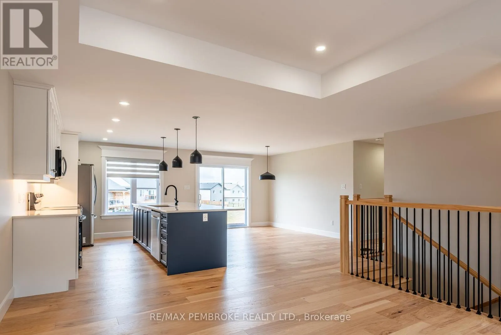 Cross Streets: Zachary and Bedard. ** Directions: Murphy rd, to Bedard to Zachary then right onto Chad. The stylish Huntington model by Legacy Homes is located in the popular Laurentian Highlands subdivision and is ready for immediate occupancy. The spacious and welcoming foyer gives access to the double attached garage. The main floor is a lovely open concept with custom kitchen cabinetry with quartz counters and ample space for meal prep and entertaining, contrasting spacious kitchen island providing plenty of storage and additional seating. Enjoy the modern lighting and fresh neutral paint throughout, along with natural hickory engineered hardwood floors on the main floor including bedrooms, with tile in bathrooms. The primary bedroom has custom 3pc ensuite with tile shower and glass door. The newly finished lower level offers a third full bathroom, expansive fourth bedroom, games room with french doors, which could make a fantastic home office or gym, a bright family room, a finished laundry room and utility/storage area. This home backs onto a green-space and has no direct back neighbours. 24 hour irrevocable by the Buyer on any written Offer. (id:27476)