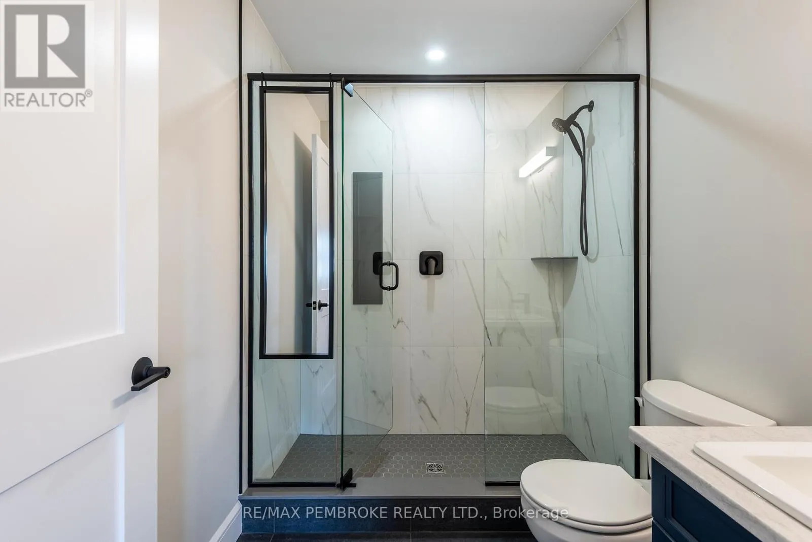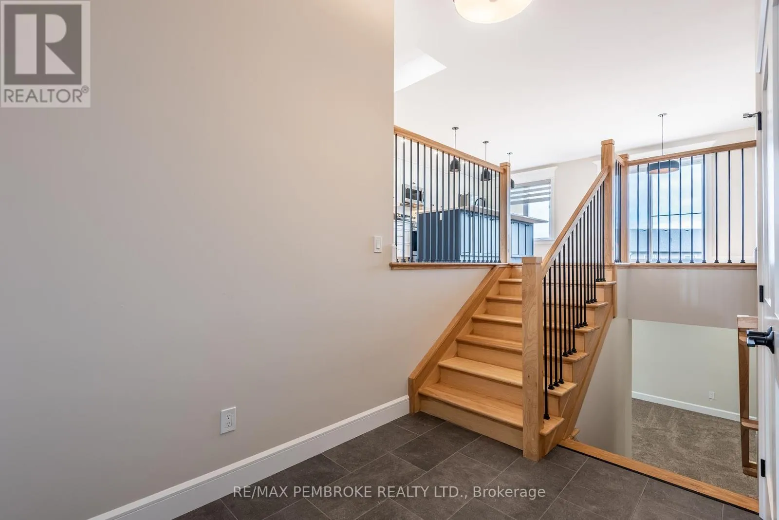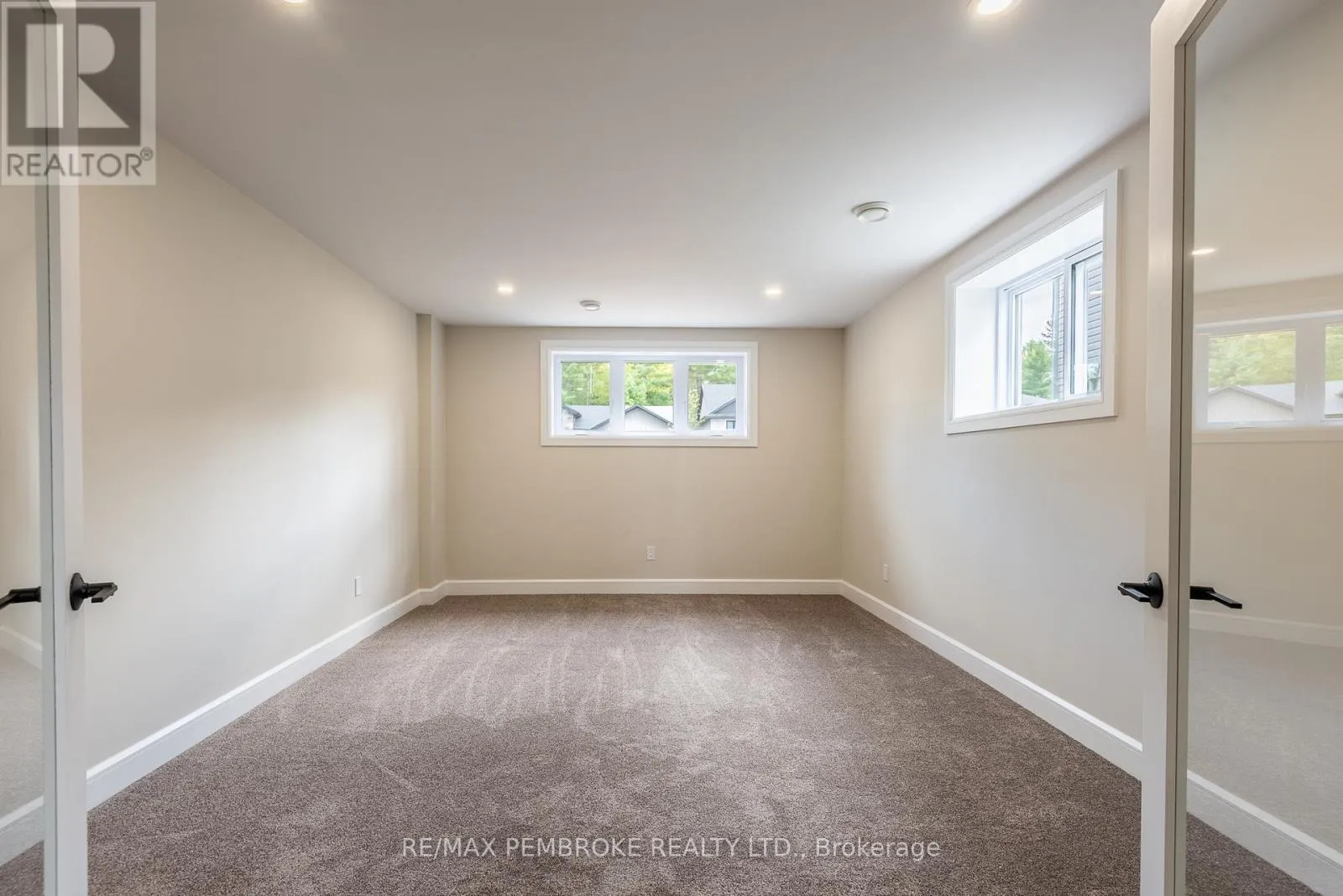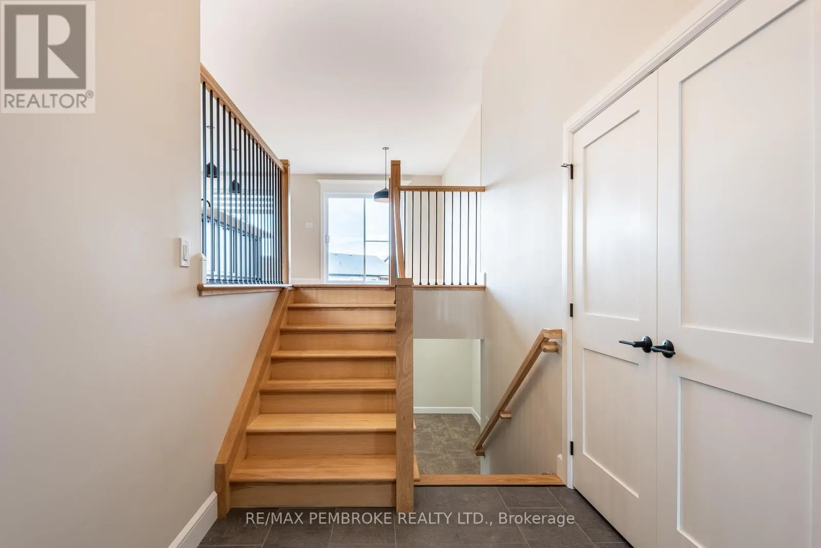 Cross Streets: Zachary and Bedard. ** Directions: Murphy rd, to Bedard to Zachary then right onto Chad. The stylish Huntington model by Legacy Homes is located in the popular Laurentian Highlands subdivision and is ready for immediate occupancy. The spacious and welcoming foyer gives access to the double attached garage. The main floor is a lovely open concept with custom kitchen cabinetry with quartz counters and ample space for meal prep and entertaining, contrasting spacious kitchen island providing plenty of storage and additional seating. Enjoy the modern lighting and fresh neutral paint throughout, along with natural hickory engineered hardwood floors on the main floor including bedrooms, with tile in bathrooms. The primary bedroom has custom 3pc ensuite with tile shower and glass door. The newly finished lower level offers a third full bathroom, expansive fourth bedroom, games room with french doors, which could make a fantastic home office or gym, a bright family room, a finished laundry room and utility/storage area. This home backs onto a green-space and has no direct back neighbours. 24 hour irrevocable by the Buyer on any written Offer. (id:27476)