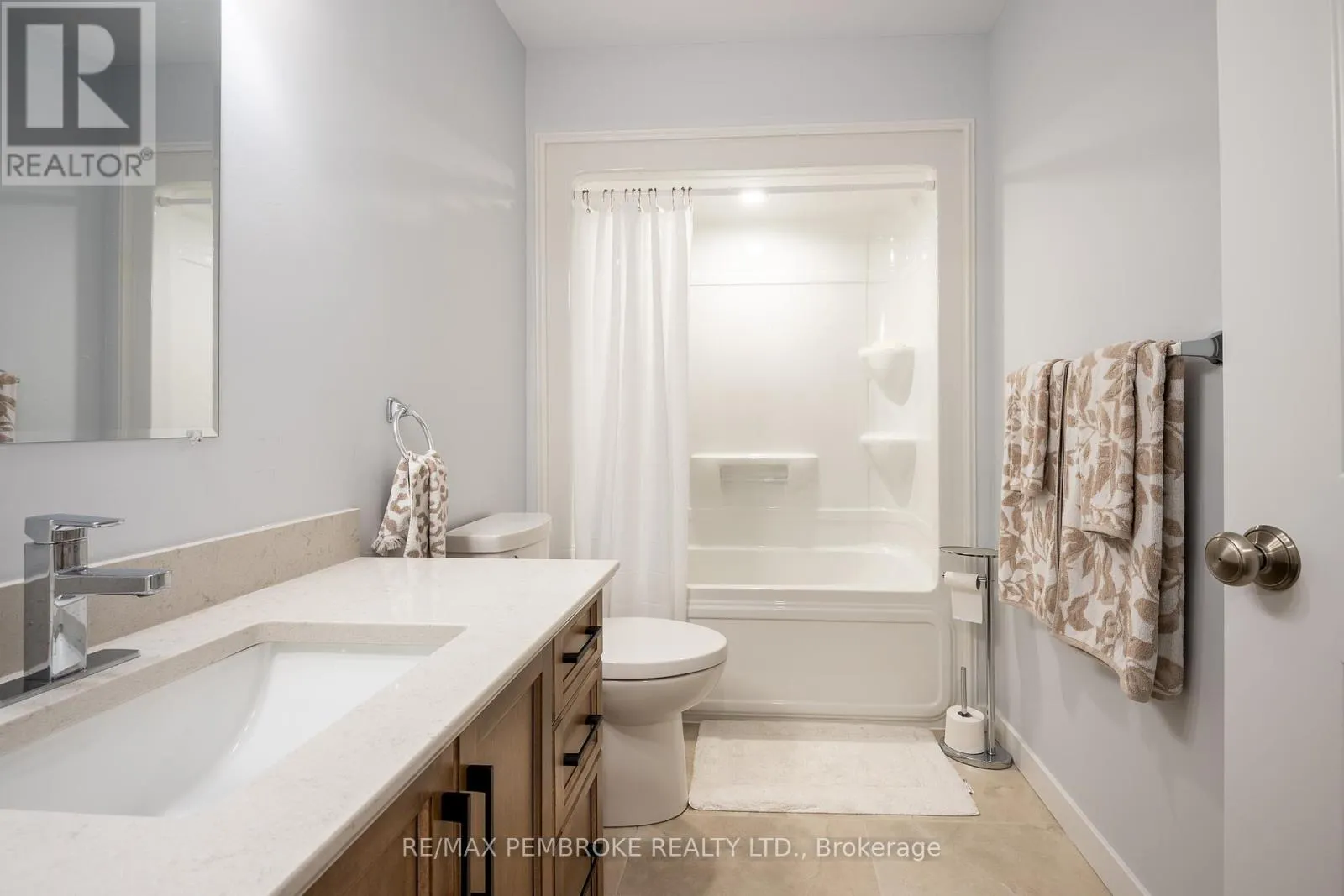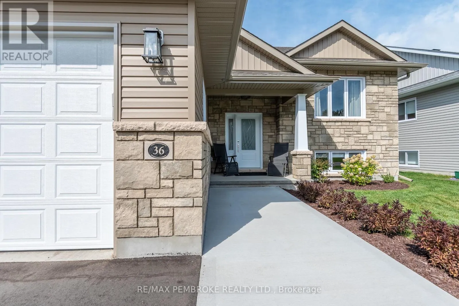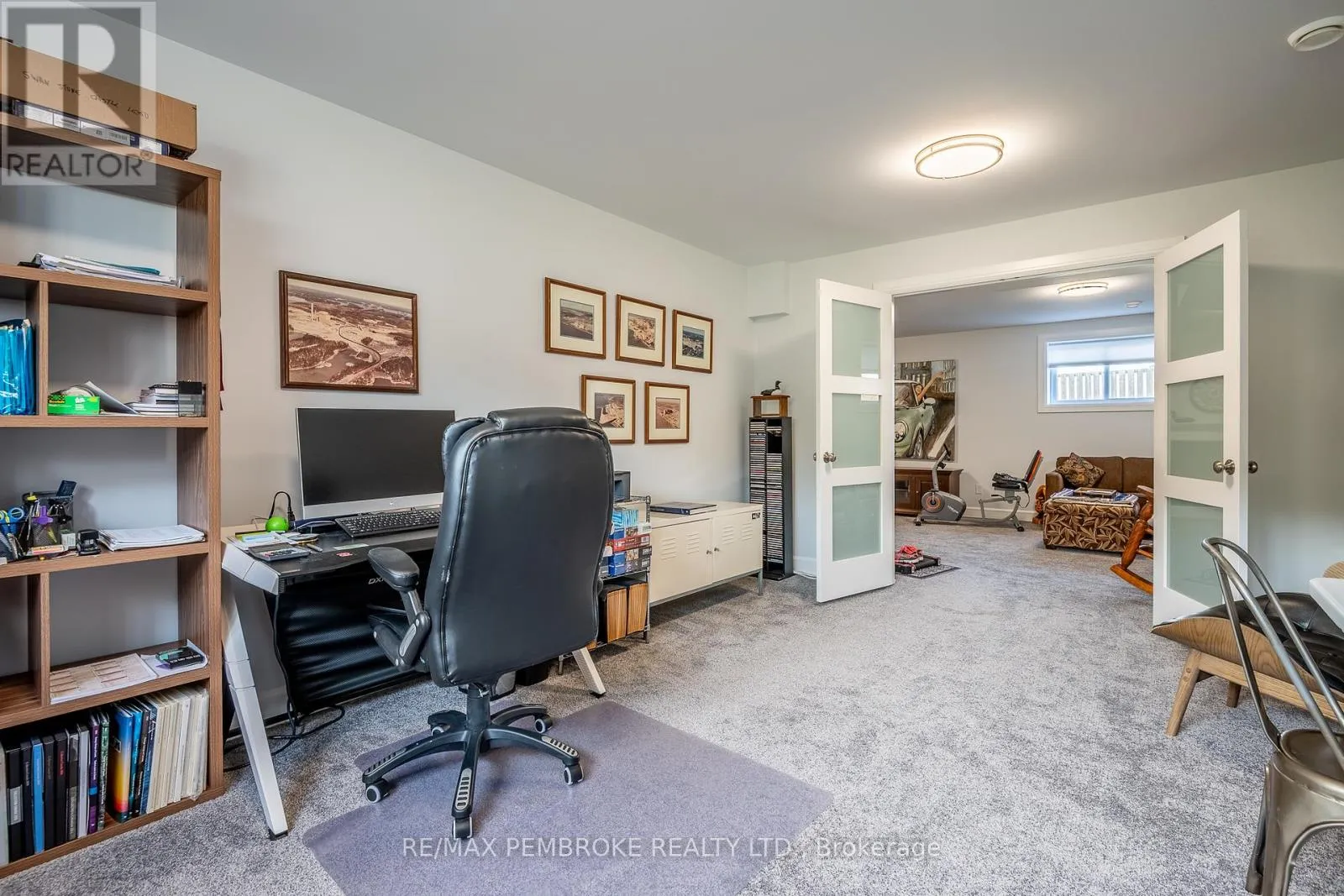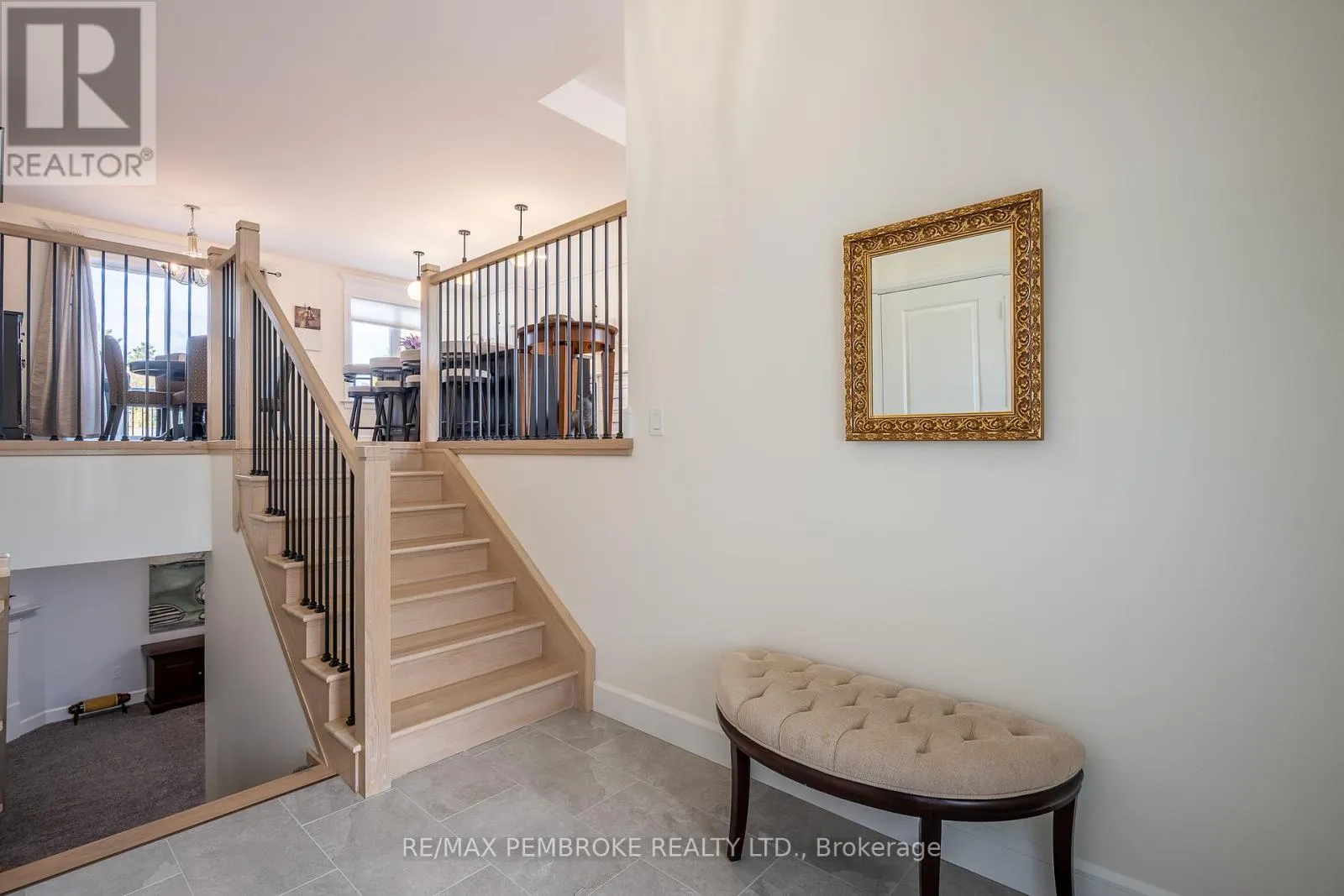 Cross Streets: Bedard & Zachary. ** Directions: Take HWY 17 or Petawawa Blvd to Murphy Rd, then Bedard onto Zachary. Welcome to this meticulously maintained, like-new home offering approximately 1,360 sq ft of beautifully designed living space plus a spacious 25 x 23 attached garage, perfect for extra storage, hobbies, and vehicles. Built in 2024, this property stands out with its unique layout, upscale finishes, and move-in ready condition. Step inside to discover an open-concept main level featuring warm french vanilla engineered hardwood flooring throughout the living spaces and bedrooms. The heart of the home is the chef-inspired kitchen with KitchenAid appliances, where ceiling-height cabinetry, quartz countertops, soft-close drawers, and an additional pantry tower offer both style and function. A large island with built-in trash/recycling drawer, additional storage, and seating for four makes this the perfect space for entertaining or casual meals.The spacious primary suite is a true retreat, complete with a 3-piece ensuite showcasing a custom tile shower with a built-in bench and niche, plus an exceptionally rare 14ft x 9ft connected dressing room/laundry room with French doors; an elegant and highly functional touch you will not find in most homes. Downstairs, plush carpeting leads you to a cozy family room with a natural gas fireplace, a third full bathroom, and two additional spacious bedrooms, one with frosted glass French doors which is currently used as a home office. You will also find both finished and unfinished storage areas to meet all your needs. Step outside to enjoy a fully fenced yard with a two-tier deck right off of the dining room, complete with natural gas hookup for a grill and an in-ground irrigation system to keep your lawn lush.This home combines high-end finishes with thoughtful functionality, offering a lifestyle of comfort, convenience, and quiet luxury. This is your chance to own a standout property in a desirable neighbourhood. 24 hour irrevocable required on any written offer. (id:27476)