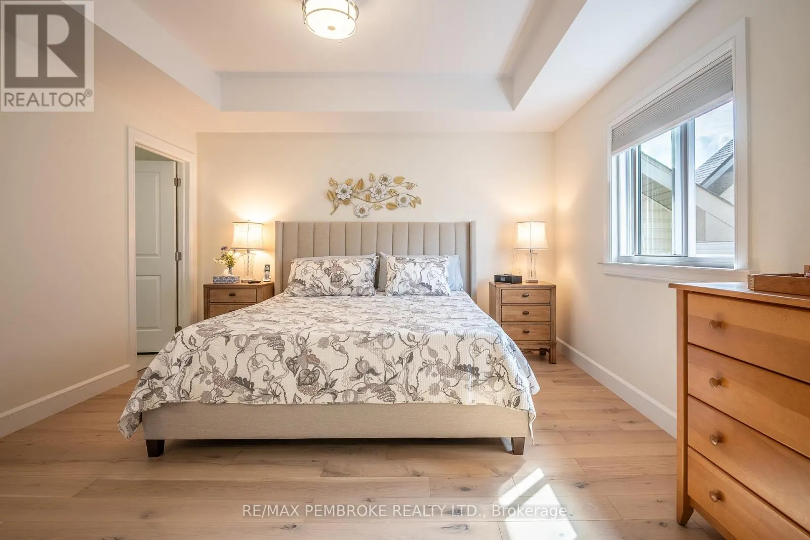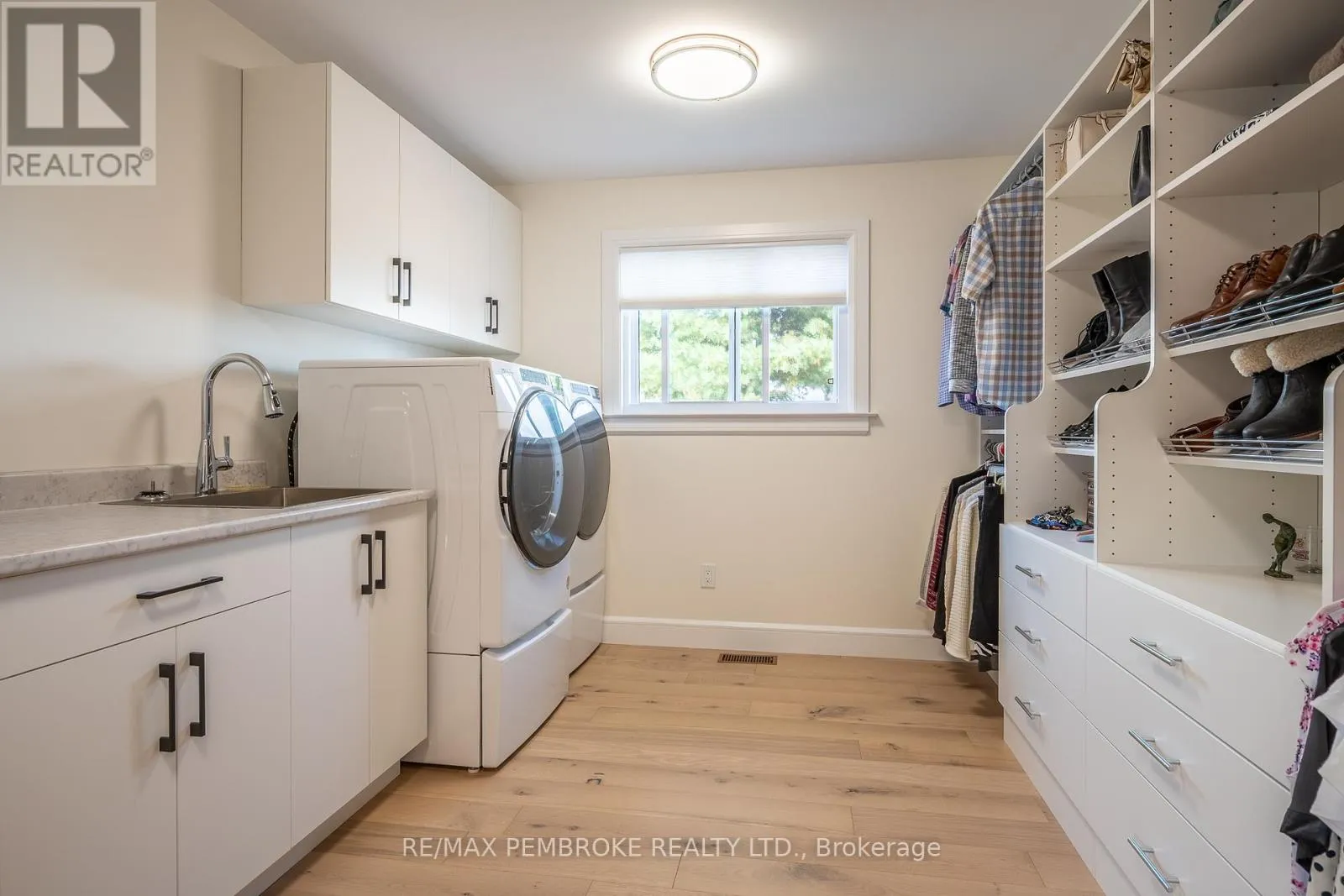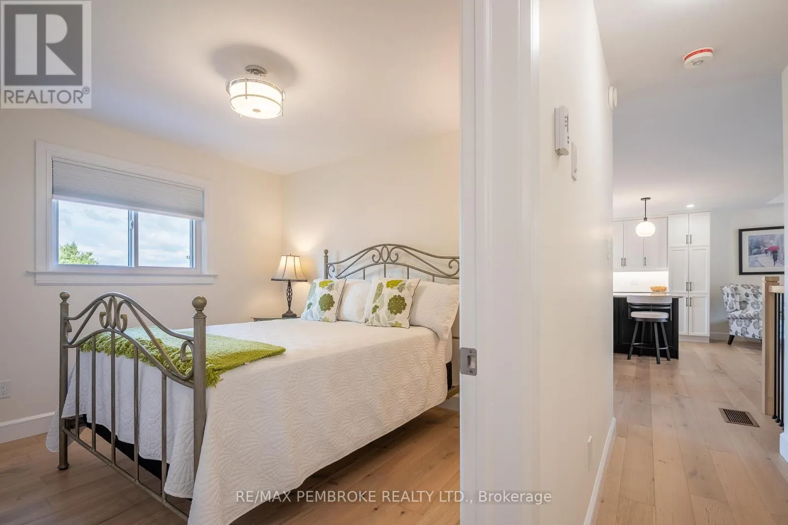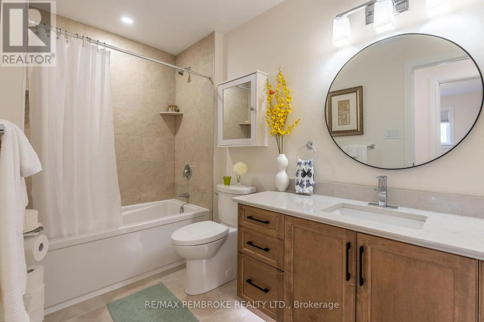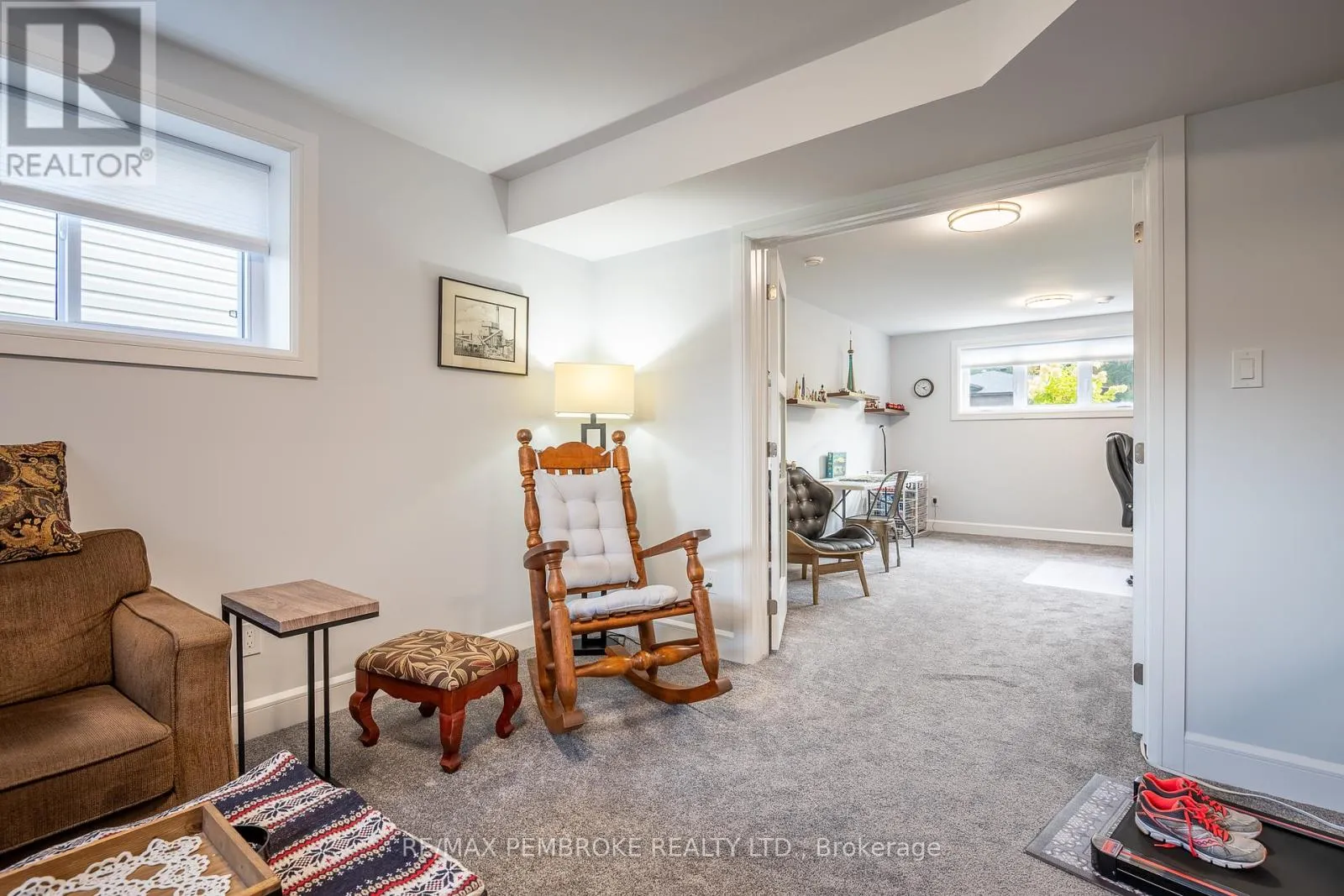 Cross Streets: Bedard & Zachary. ** Directions: Take HWY 17 or Petawawa Blvd to Murphy Rd, then Bedard onto Zachary. Welcome to this meticulously maintained, like-new home offering approximately 1,360 sq ft of beautifully designed living space plus a spacious 25 x 23 attached garage, perfect for extra storage, hobbies, and vehicles. Built in 2024, this property stands out with its unique layout, upscale finishes, and move-in ready condition. Step inside to discover an open-concept main level featuring warm french vanilla engineered hardwood flooring throughout the living spaces and bedrooms. The heart of the home is the chef-inspired kitchen with KitchenAid appliances, where ceiling-height cabinetry, quartz countertops, soft-close drawers, and an additional pantry tower offer both style and function. A large island with built-in trash/recycling drawer, additional storage, and seating for four makes this the perfect space for entertaining or casual meals.The spacious primary suite is a true retreat, complete with a 3-piece ensuite showcasing a custom tile shower with a built-in bench and niche, plus an exceptionally rare 14ft x 9ft connected dressing room/laundry room with French doors; an elegant and highly functional touch you will not find in most homes. Downstairs, plush carpeting leads you to a cozy family room with a natural gas fireplace, a third full bathroom, and two additional spacious bedrooms, one with frosted glass French doors which is currently used as a home office. You will also find both finished and unfinished storage areas to meet all your needs. Step outside to enjoy a fully fenced yard with a two-tier deck right off of the dining room, complete with natural gas hookup for a grill and an in-ground irrigation system to keep your lawn lush.This home combines high-end finishes with thoughtful functionality, offering a lifestyle of comfort, convenience, and quiet luxury. This is your chance to own a standout property in a desirable neighbourhood. 24 hour irrevocable required on any written offer. (id:27476)