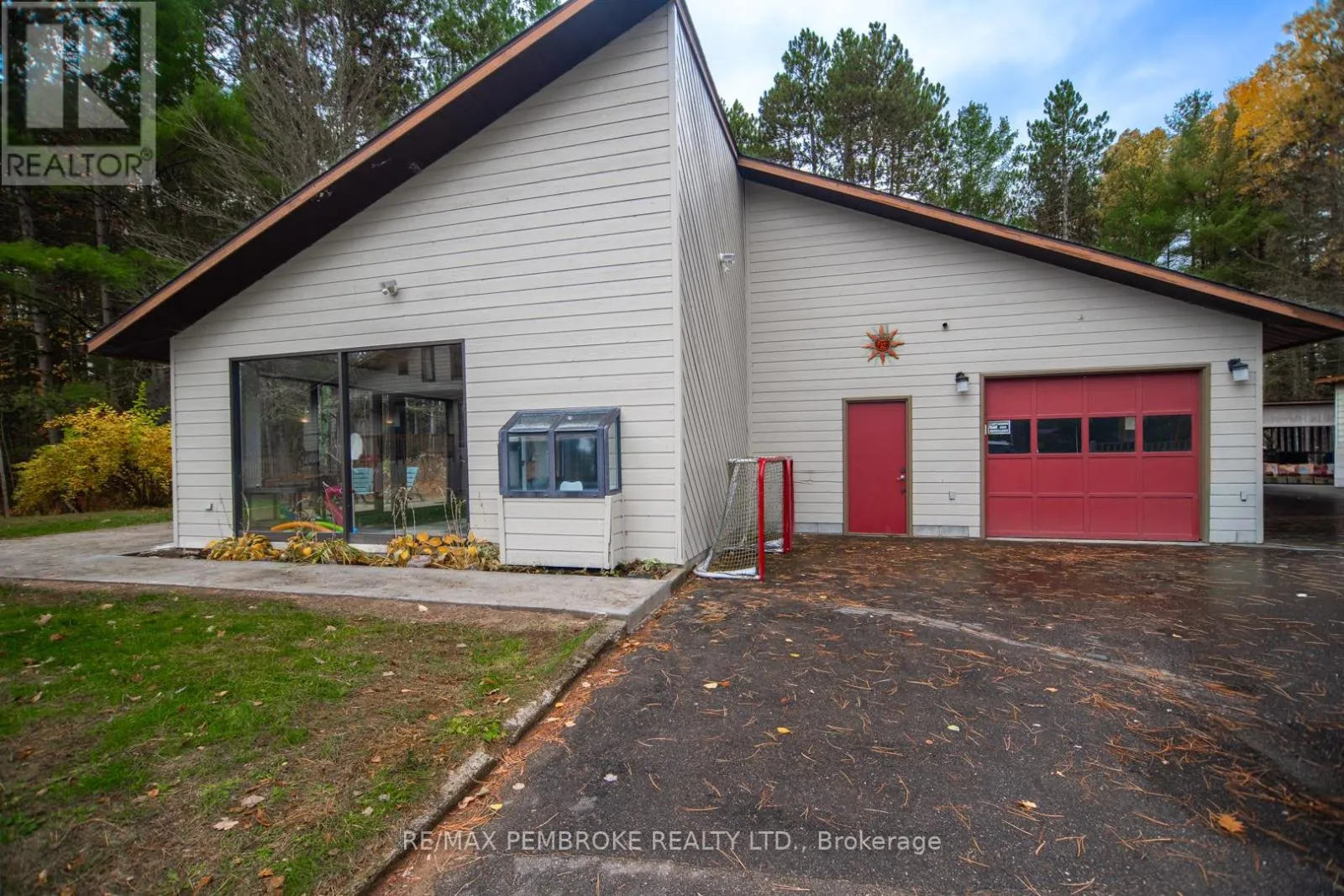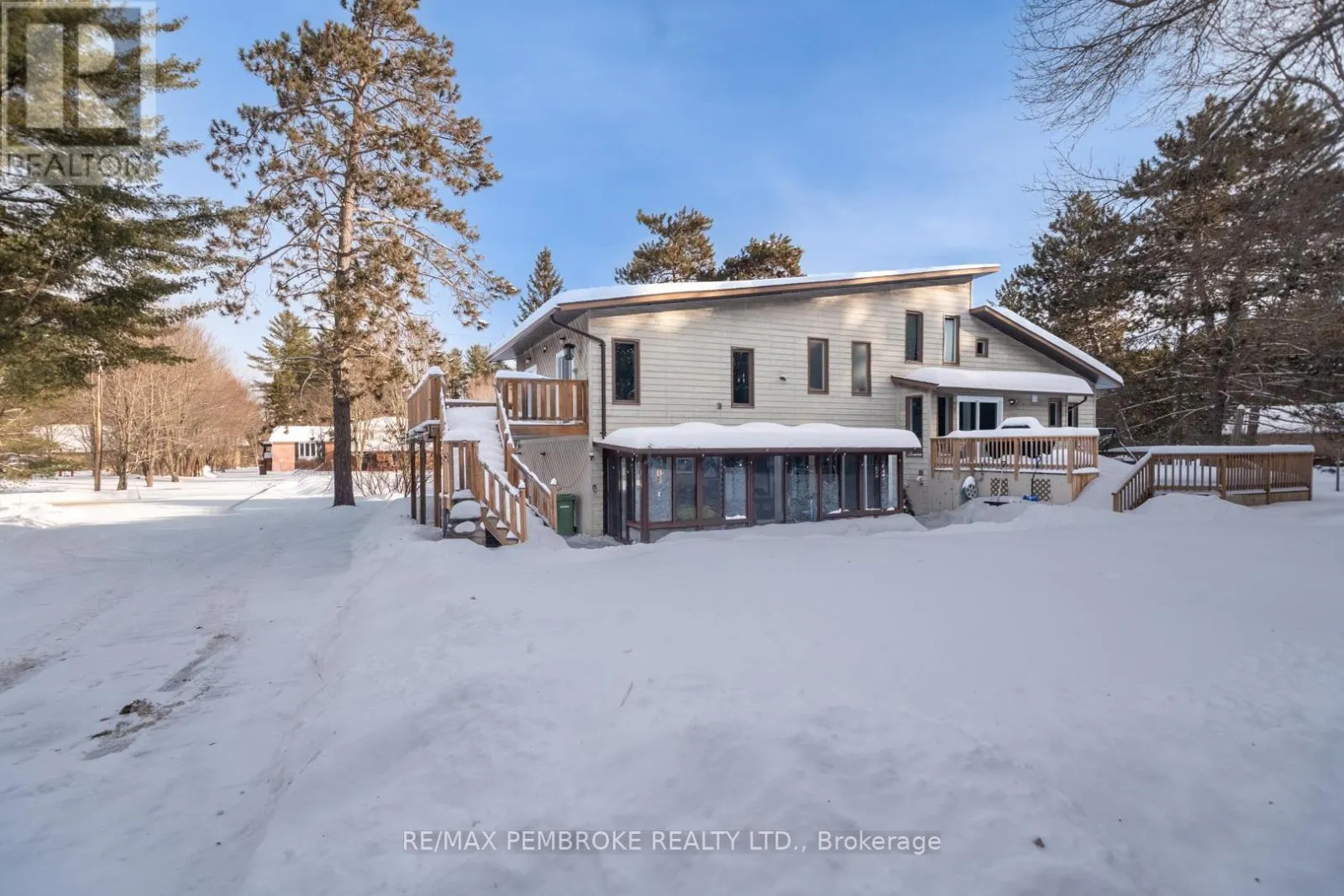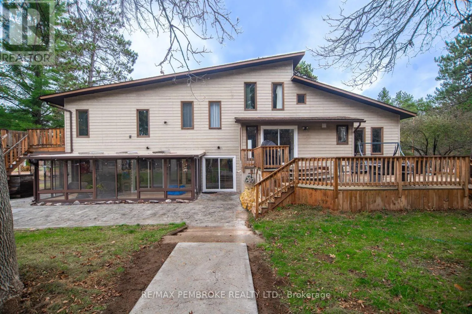 Cross Streets: Sylvan Drive and Airport Road. ** Directions: Highway 17 to Doran Road, left onto Airport Road to Sylvan Drive or Petawawa Boulevard to Airport Road to Sylvan. Welcome to your own slice of paradise! Nestled on a sprawling 1.65-acre lot with no rear neighbours, this impressive 2,500+ sq ft executive family home seamlessly blends luxury, comfort, and outdoor fun. The heart of the home boasts a stunning custom kitchen that will delight any chef. With it's expansive stone island and ample seating, you can whip up gourmet meals while engaging with family and friends. The breakfast nook offers a serene view, while the formal dining area is perfect for hosting dinner parties. The good sized living room features gorgeous cedar cathedral ceilings and a wood fireplace for those winter nights. On the third floor unwind in the spacious primary bedroom with a newly renovated modern en-suite. Step out onto the second-story balcony for a morning coffee. A large second bedroom and modern four piece washroom complete the third floor. Further up you will find an office that overlooks the living room and a third bedroom with a play area perfect for a kids room. The lower-level, which could be made into an in-law suite, features a spacious rec room with gas fireplace, a large fourth bedroom, modern bathroom and tons of storage. This property is an outdoor enthusiast's dream, featuring a basketball/tennis court and numerous outbuildings. Dive into a massive 53' x 22' pool house featuring a heated 40' in-ground pool that allows for year-round swimming complete with a 10-person hot tub. The spacious yard has new faux-slate concrete patios and walkways and is just a short bike ride to Turtle Park and Goltz Lake for the kids. With lush gardens and fruit trees, the underground sprinklers make it easy to maintain. This home has been lovingly maintained and upgraded, including new windows and a modern master bathroom. The memories created here are endless - from hosting jam nights in the music room to enjoying game nights with ping-pong and puzzles in the games room. If entertaining and family gatherings are your passion, this property is a must see! (id:27476)